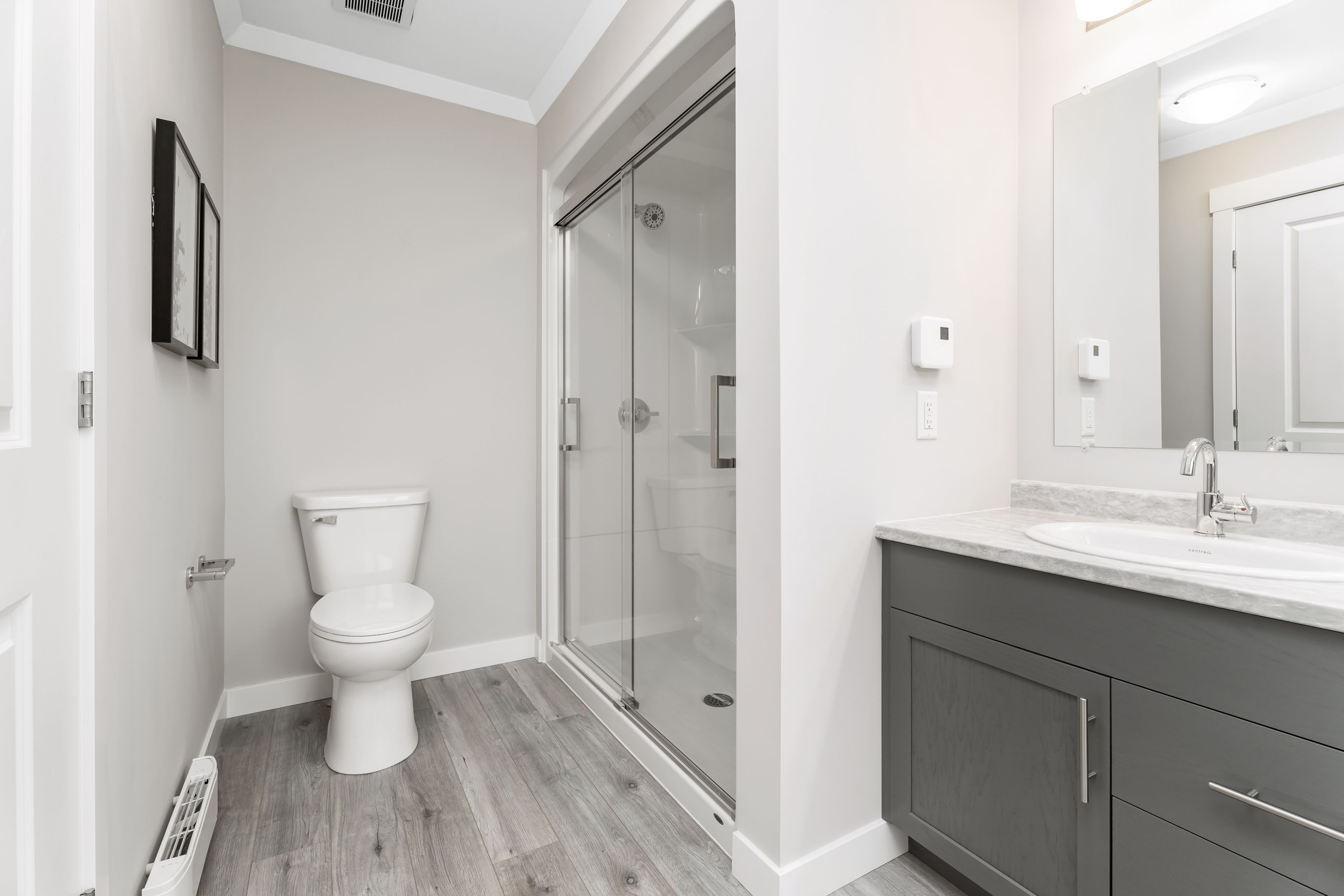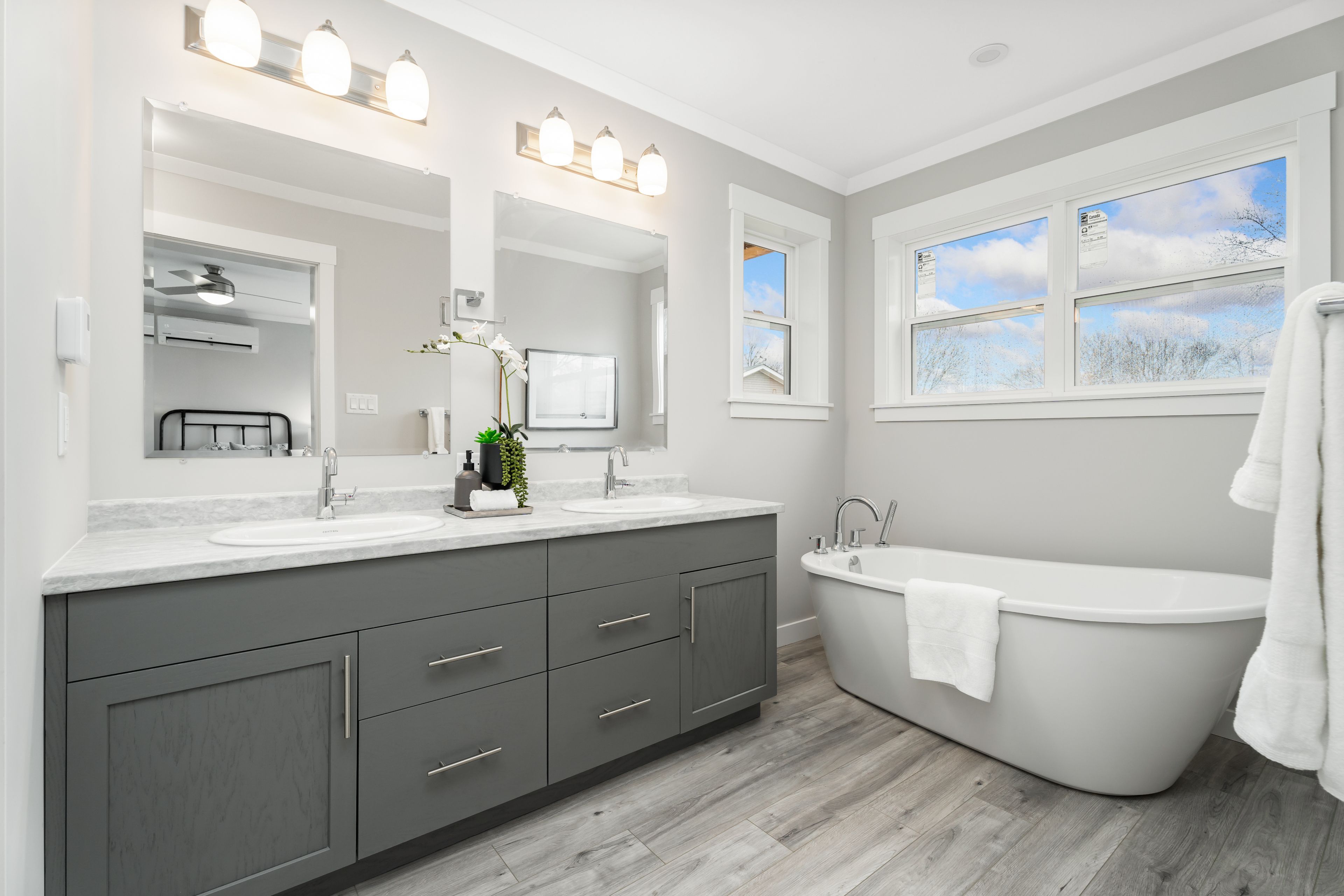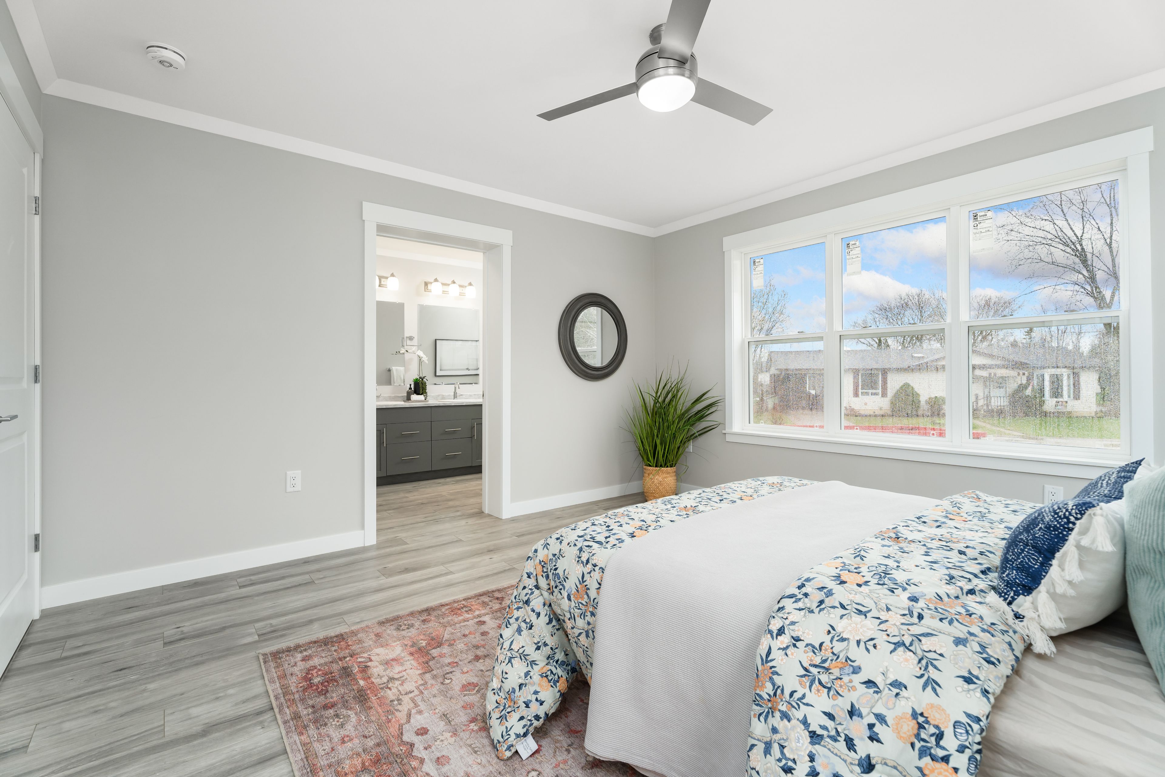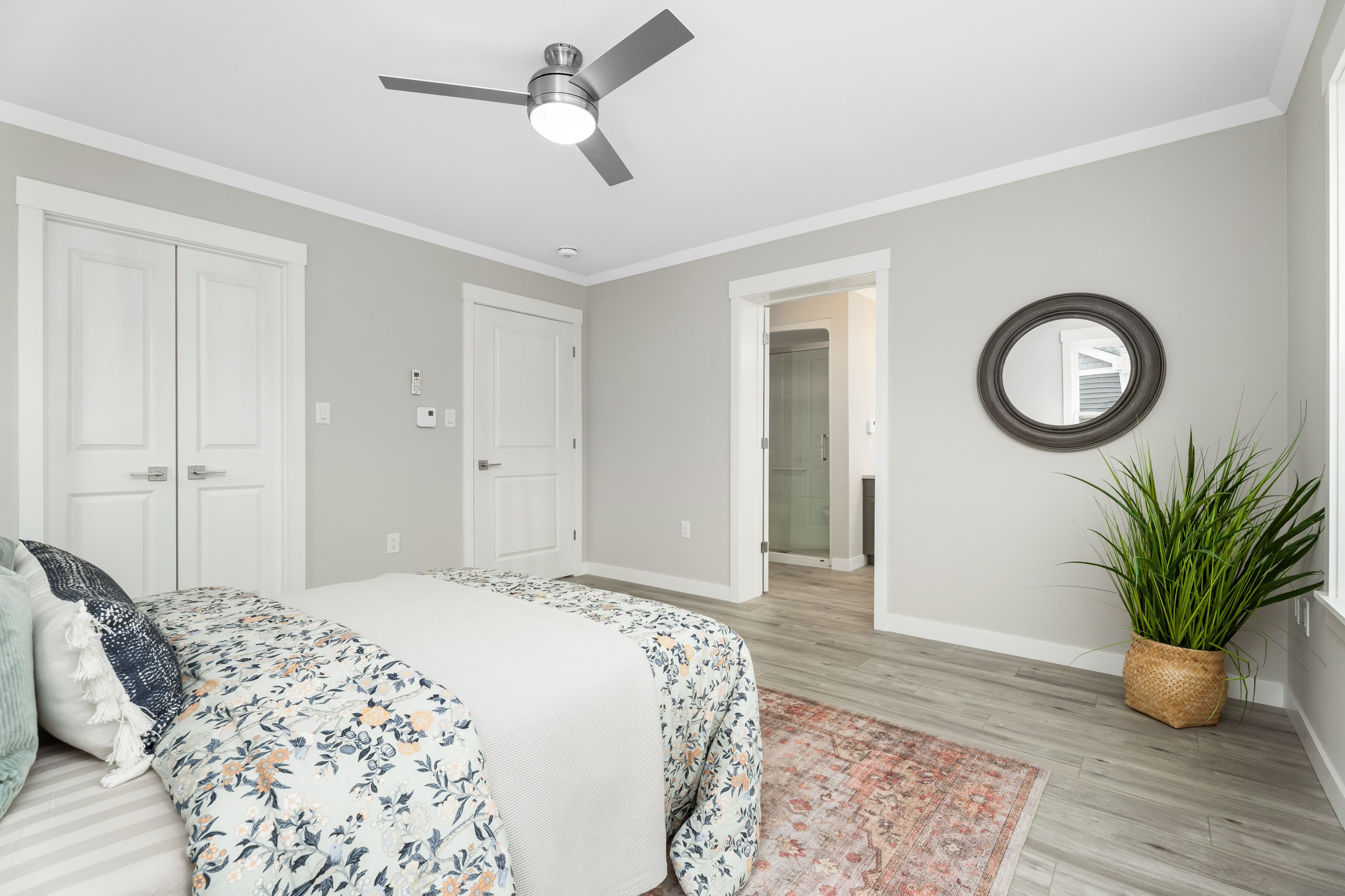 • Primary bedroom features a large walk-in closet and ensuite bathroom.