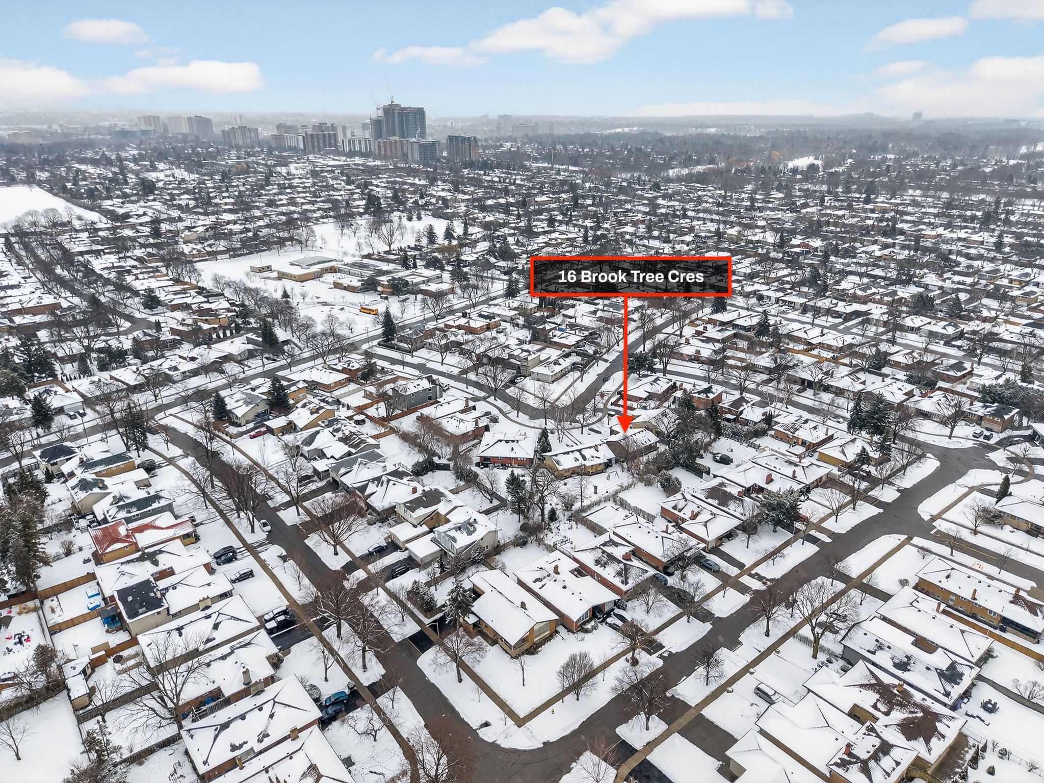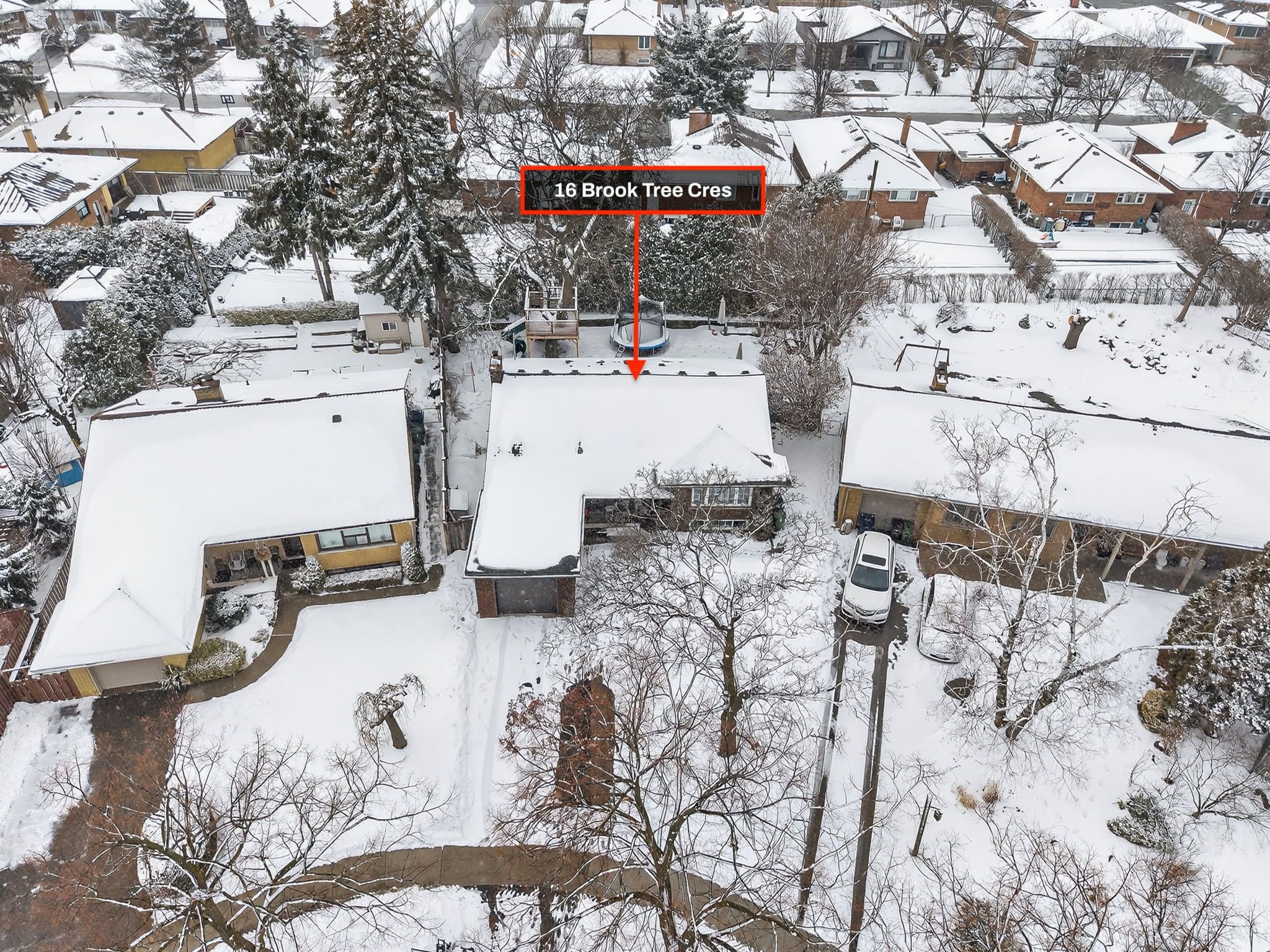 Welcome to 16 brook tree crescent! Completely renovated from top to bottom, features 3 + 1 bedrooms and rare 3 full bathrooms. Everything is updated: renovated kitchen, bathrooms (including steam shower), all appliances, flooring, front entrance, newer windows, furnace (2024) & water heater (2022), roof (2025), eavestroughs/downspouts/siding (2022), electric panel (2020), window covers (2019), pot lights, garage epoxy floor (2025), waterproofing and new sump pump (2019), new paint, and the list goes on. Highly sought-after location: pie-shaped lot on a quiet, family-friendly crescent; with easy access to major highways 401, 427, 400, qew, and eglinton lrt; close to highly rated schools, parks, and many local amenities. The large private backyard is ready to entertain children and grown-ups. Just move in & enjoy!