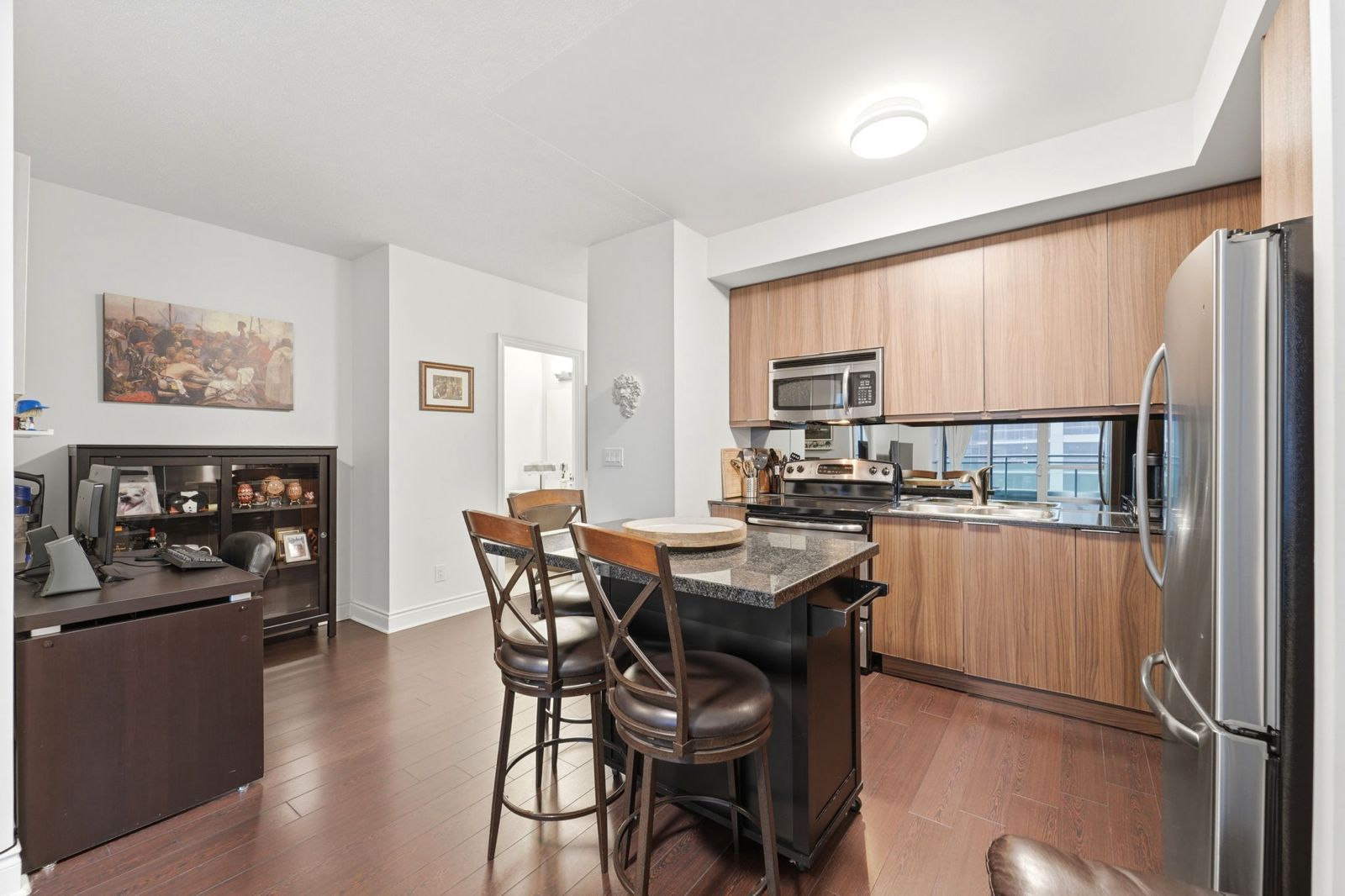 Welcome to this well-designed 1+den suite offering a functional layout andcomfortable living in one of humber bay's most sought-after waterfront communities. The open-concept living and dining area provides a versatile space for both everydayliving and entertaining, while the kitchen offers ample storage and workspace. The den is perfect for those working from home or in need of a dedicated flex spacefor a home office, reading nook, or additional storage. The spacious bedroomfeatures generous closet space. Enjoy all the benefits of lakeside living just steps from your door. Humber bayshores offers the perfect balance of urban convenience and natural beauty, withscenic waterfront trails, parks, and green space nearby. Walk to local shops, restaurants, cafes, metro, lcbo, and more at westlake village, or visit the iconicsan remo bakery just minutes away. Commuting is effortless with quick access to the gardiner expressway and ttc at your door step, connecting you to downtown toronto in minutes. A fantastic opportunity for first-time buyers, investors, or anyone looking to get into this vibrant lakeside community.