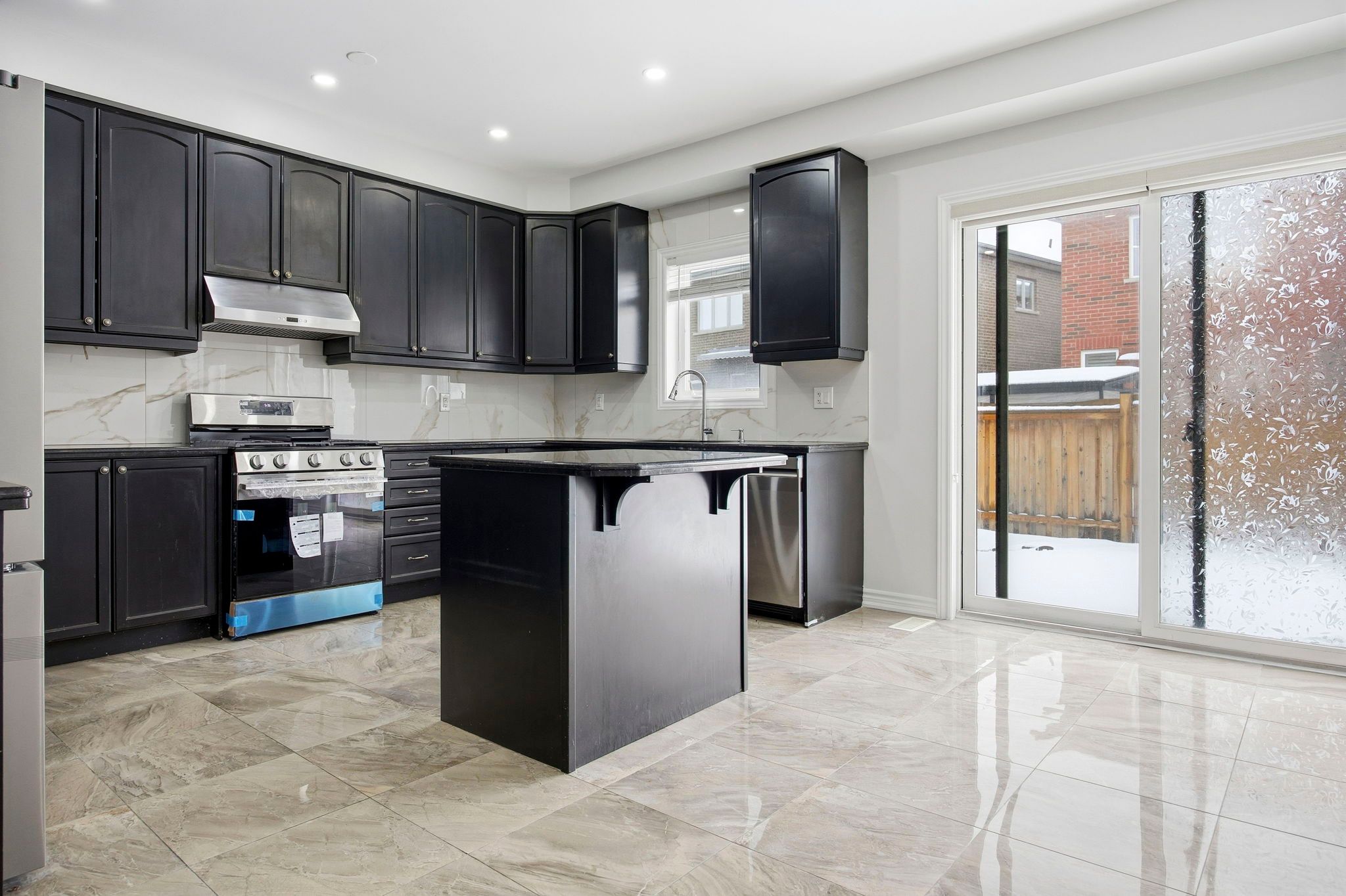 • Modern kitchen with new stainless steel appliances and granite counters.