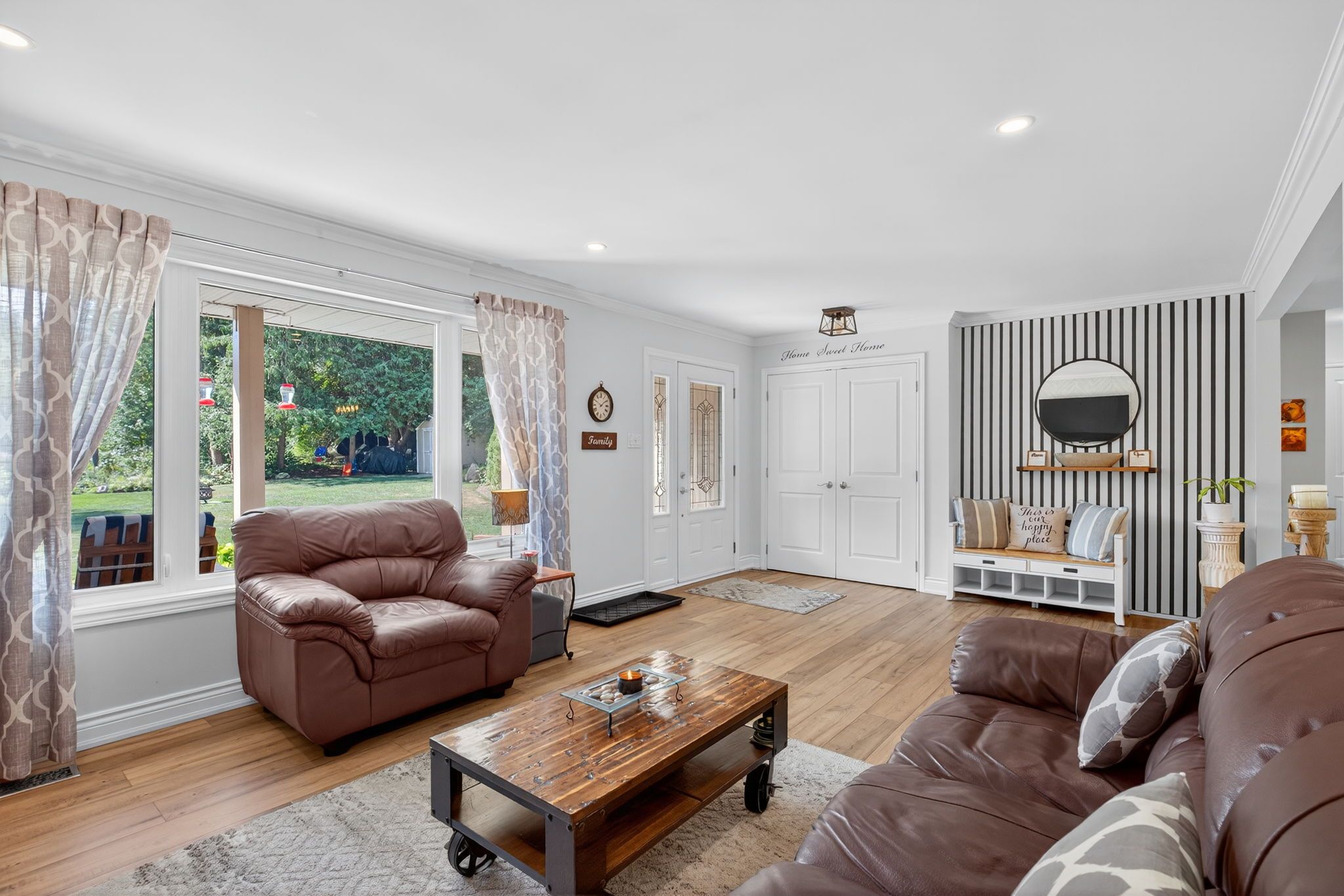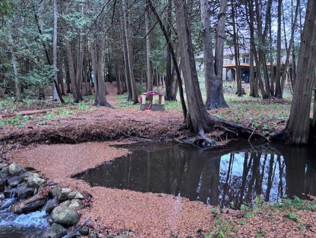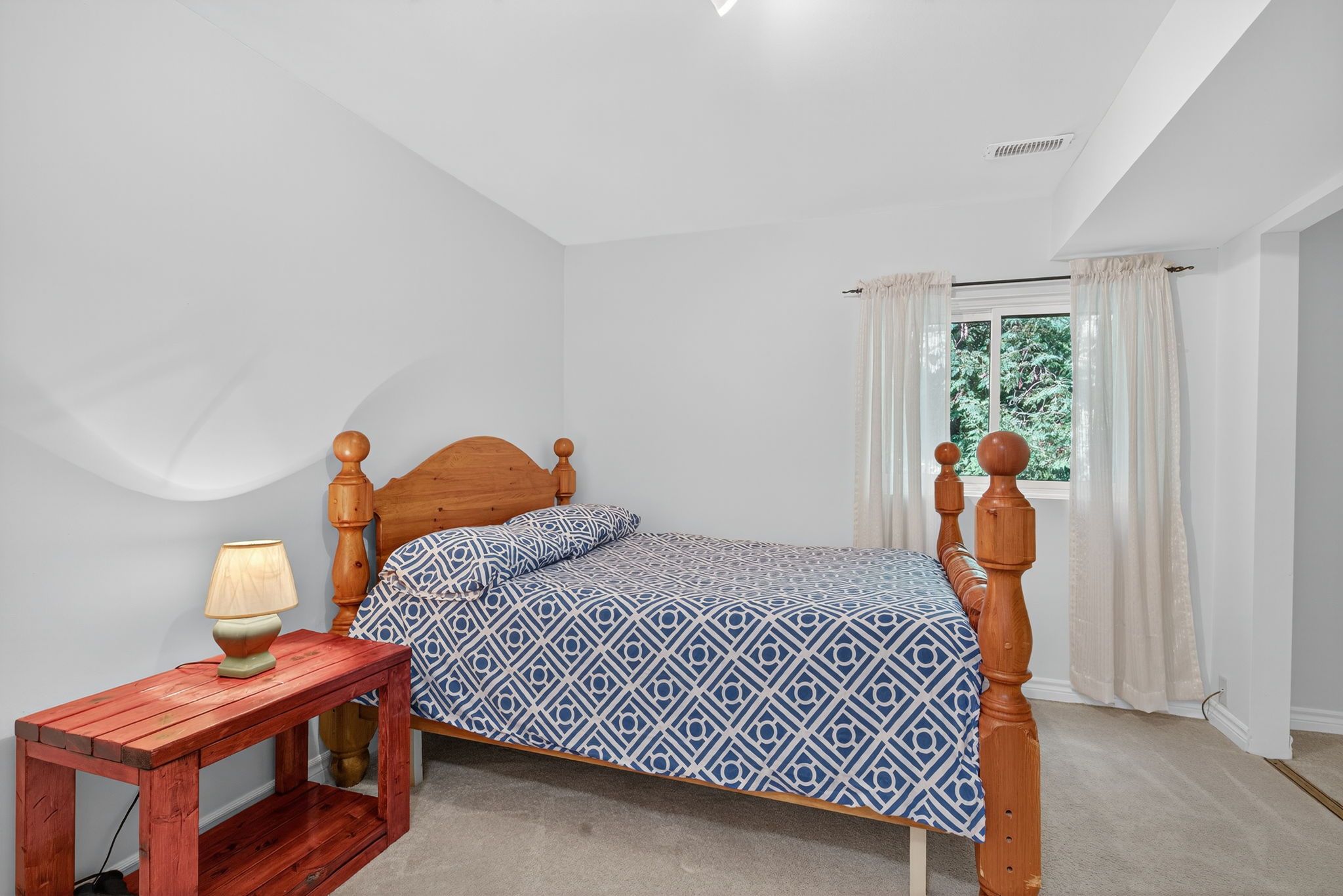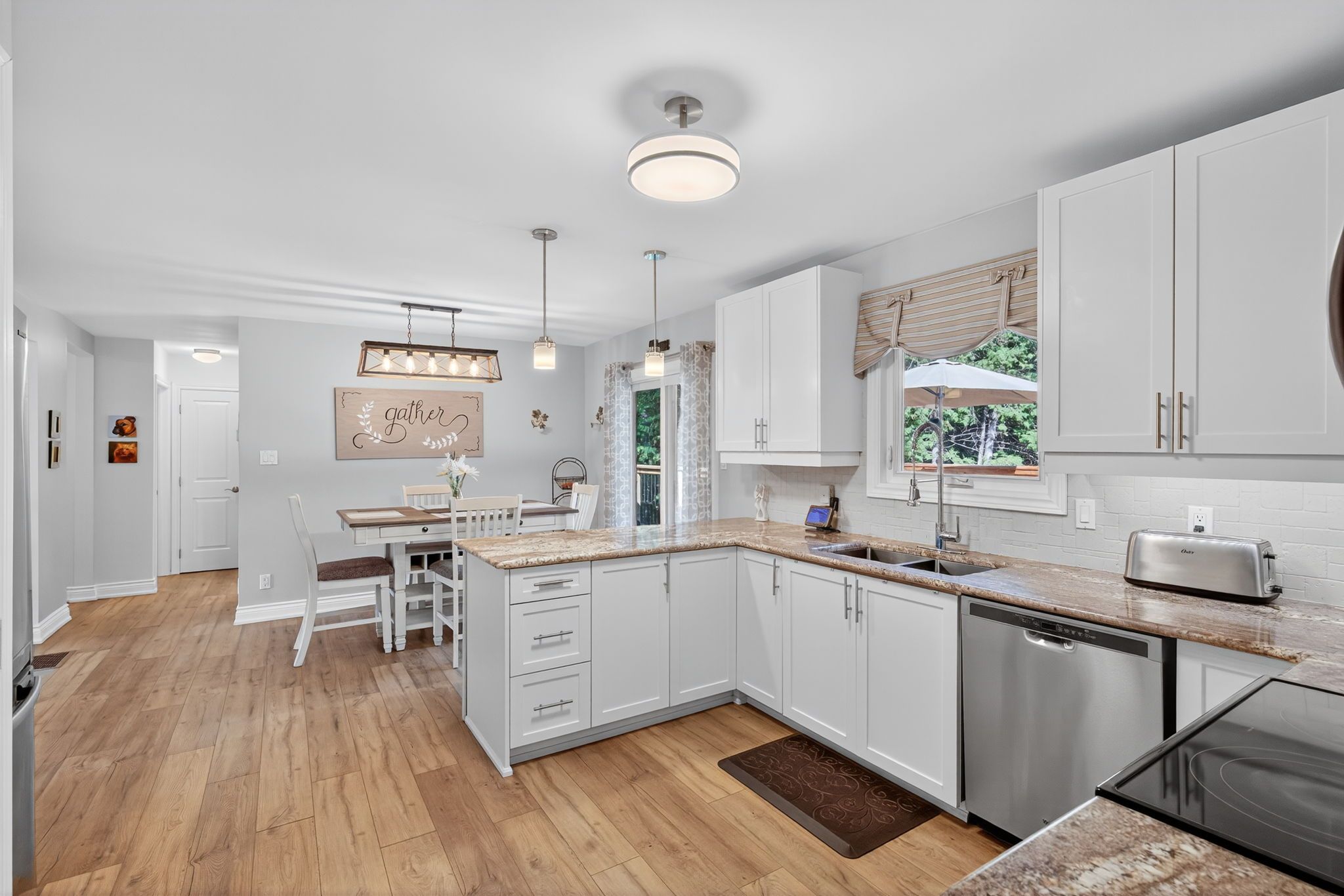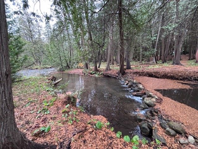 Discover this stunning bungalow nestled on a quiet dead-end country road, set on a breathtaking 1. 2 acre lot with serene views and the peaceful sound of sheldon creek running behind the property. The main floor offers a spacious living room, formal dining room and an updated kitchen featuring granite countertops and a walk-in pantry. Enjoy meals in the bright eat-in area, or step outside to the large 2022 built deck perfect for relaxing and entertaining. The home features 3 generously sized bedrooms, with the primary suite boasting a private 3-piece ensuite. Luxury vinyl flooring runs throughout the main level for a modern, low maintenance finish. The lower level is ideal for both relaxing and entertaining, with a large recreation room, a walk=out to the patio and hot tub area (hot tub included as is) plus abundant storage. There is also a roughed in sauna ready for your personal touch. Recent updates & features: roof(2019)windows(2010)furnace & a/c(2015)water softener(2019)ultra violet system (2015)hot water tank (owned)gas stove & bbq line (2020)new well pump(2021)whether you're looking to raise a family, downsize , or enjoy a peaceful retirement, this property offers the perfect blend of country charm and modern comfort. Enjoy evening walks on the quiet dead end country rd. Enjoy breakfast on an elevated deck surrounded by a canopy of trees and relax to the sound of the creek. Finished walk out basement has in-law potential. Side entrance from den to partially fenced back yard!