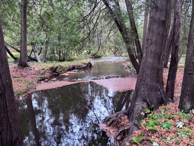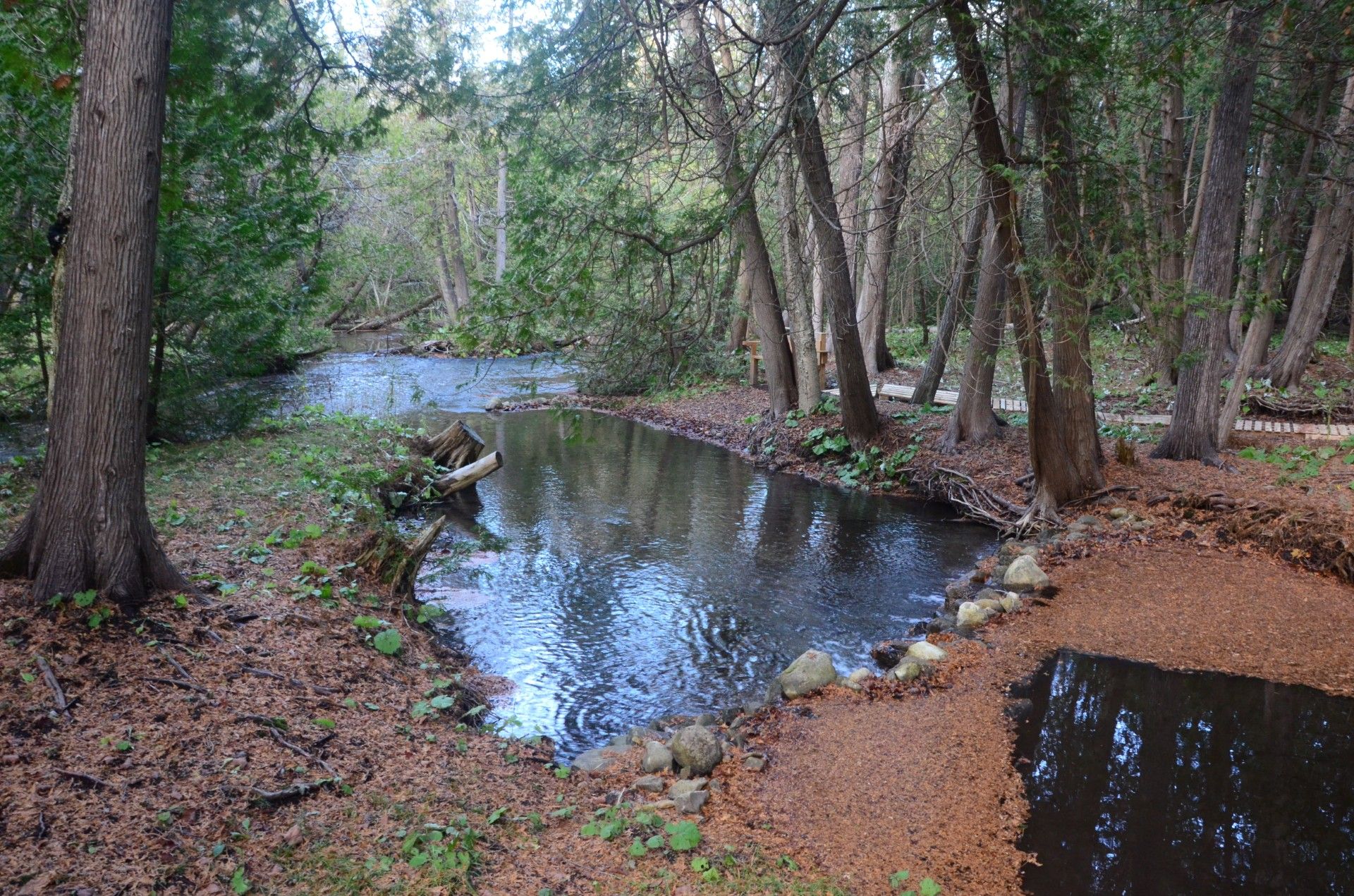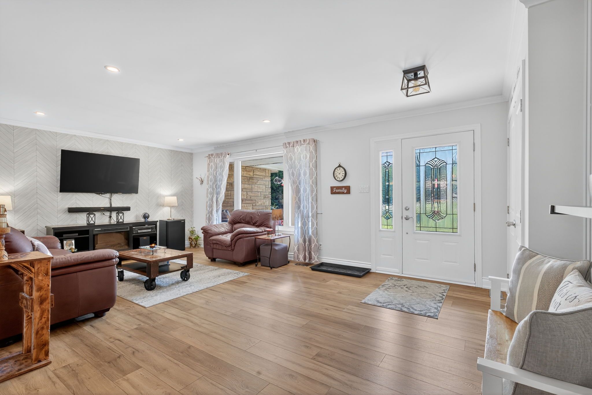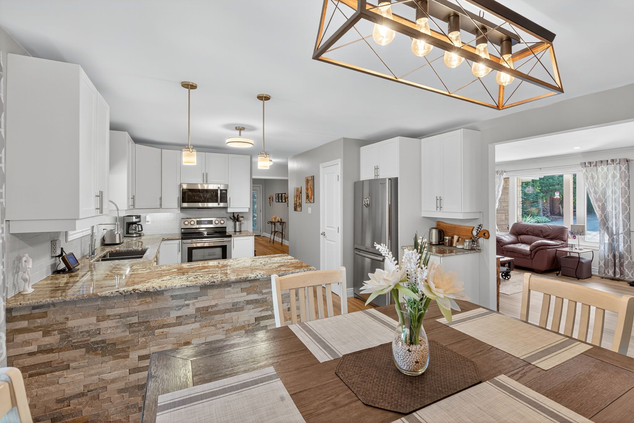 Discover this stunning bungalow nestled on a quiet dead-end country road, set on a breathtaking 1. 2 acre lot with serene views and the peaceful sound of sheldon creek running behind the property. The main floor offers a spacious living room, formal dining room and an updated kitchen featuring granite countertops and a walk-in pantry. Enjoy meals in the bright eat-in area, or step outside to the large 2022 built deck perfect for relaxing and entertaining. The home features 3 generously sized bedrooms, with the primary suite boasting a private 3-piece ensuite. Luxury vinyl flooring runs throughout the main level for a modern, low maintenance finish. The lower level is ideal for both relaxing and entertaining, with a large recreation room, a walk=out to the patio and hot tub area (hot tub included as is) plus abundant storage. There is also a roughed in sauna ready for your personal touch. Recent updates & features: roof(2019)windows(2010)furnace & a/c(2015)water softener(2019)ultra violet system (2015)hot water tank (owned)gas stove & bbq line (2020)new well pump(2021)whether you're looking to raise a family, downsize , or enjoy a peaceful retirement, this property offers the perfect blend of country charm and modern comfort. Enjoy evening walks on the quiet dead end country rd. Enjoy breakfast on an elevated deck surrounded by a canopy of trees and relax to the sound of the creek. Finished walk out basement has in-law potential. Side entrance from den to partially fenced back yard!