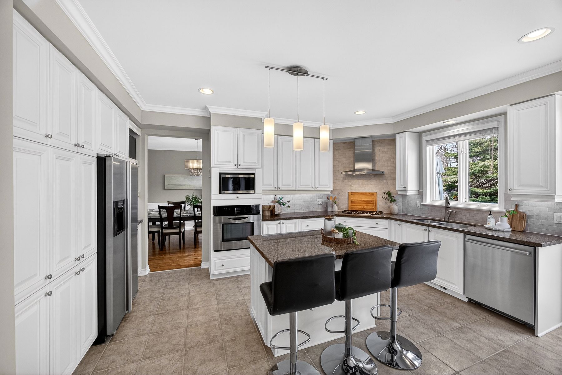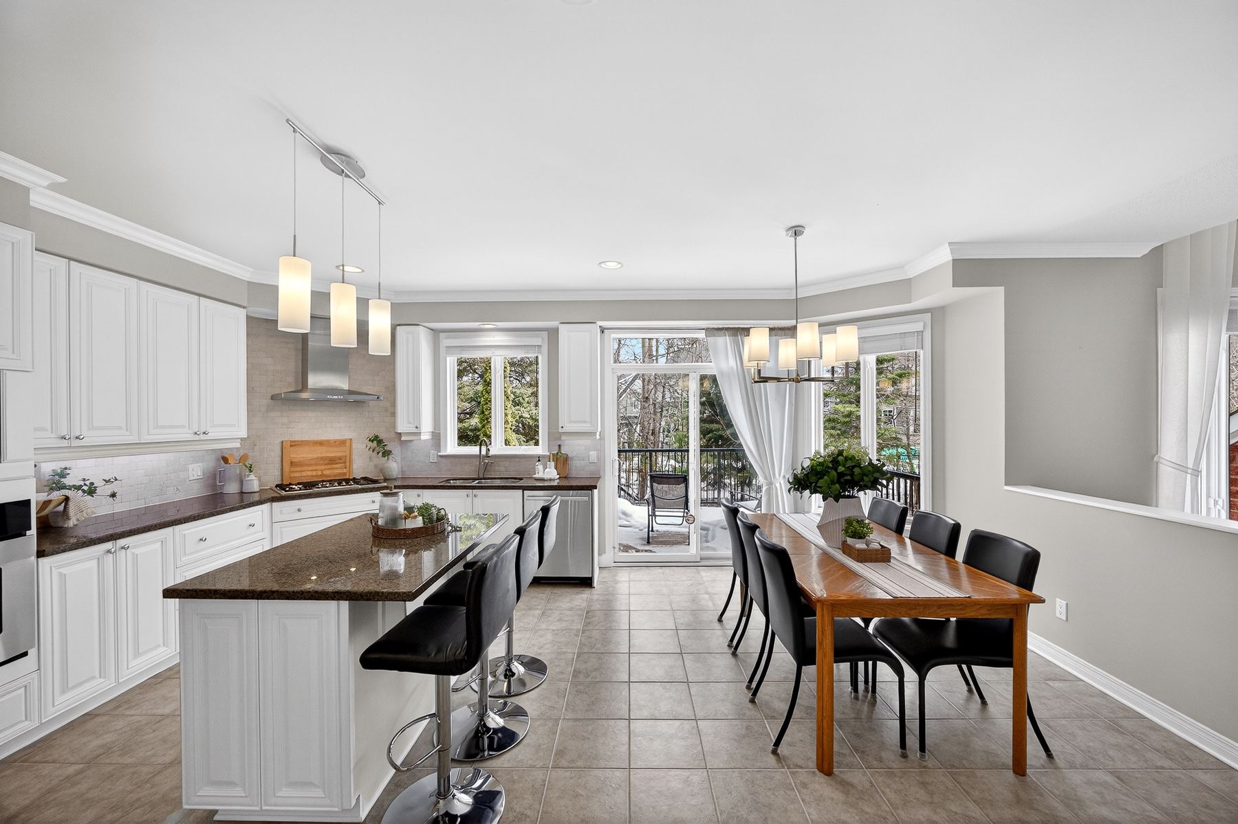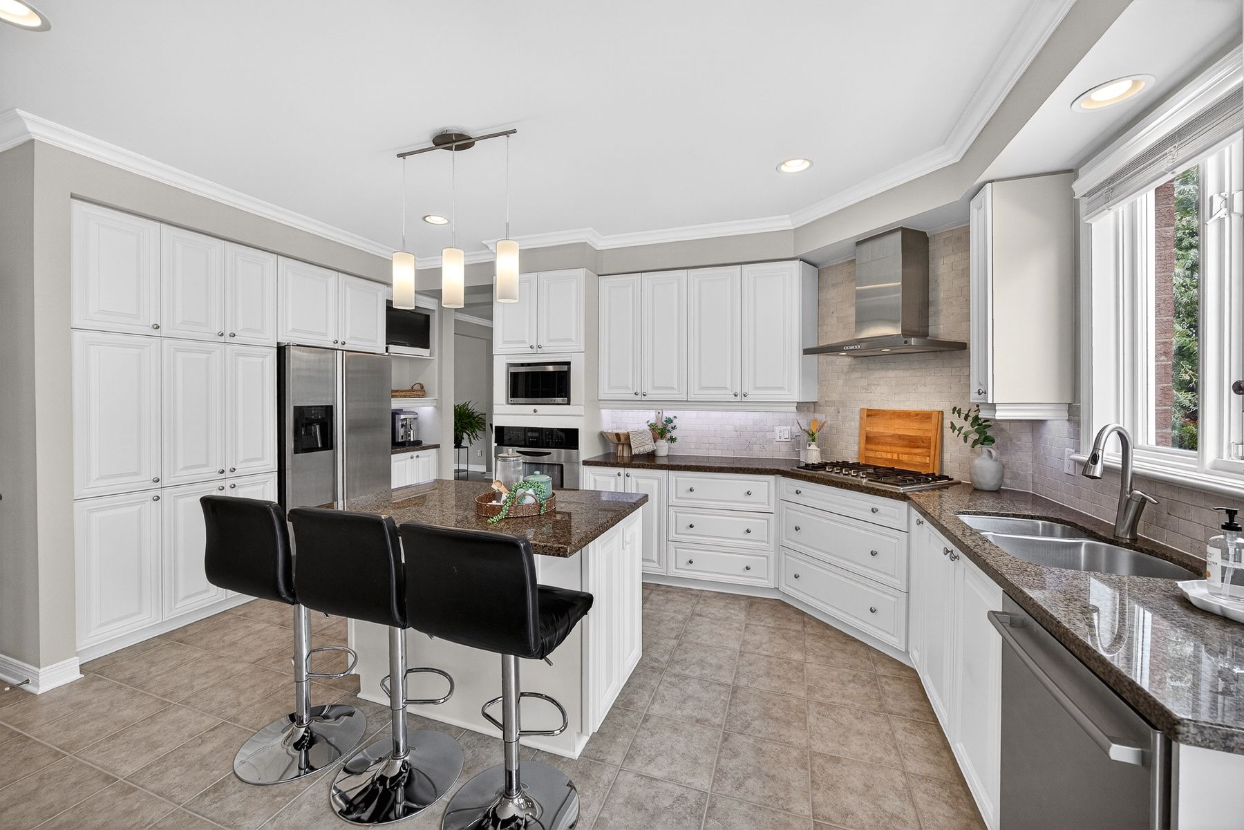 • Spacious chef's kitchen with granite counters and an island for cooking enthusiasts.
