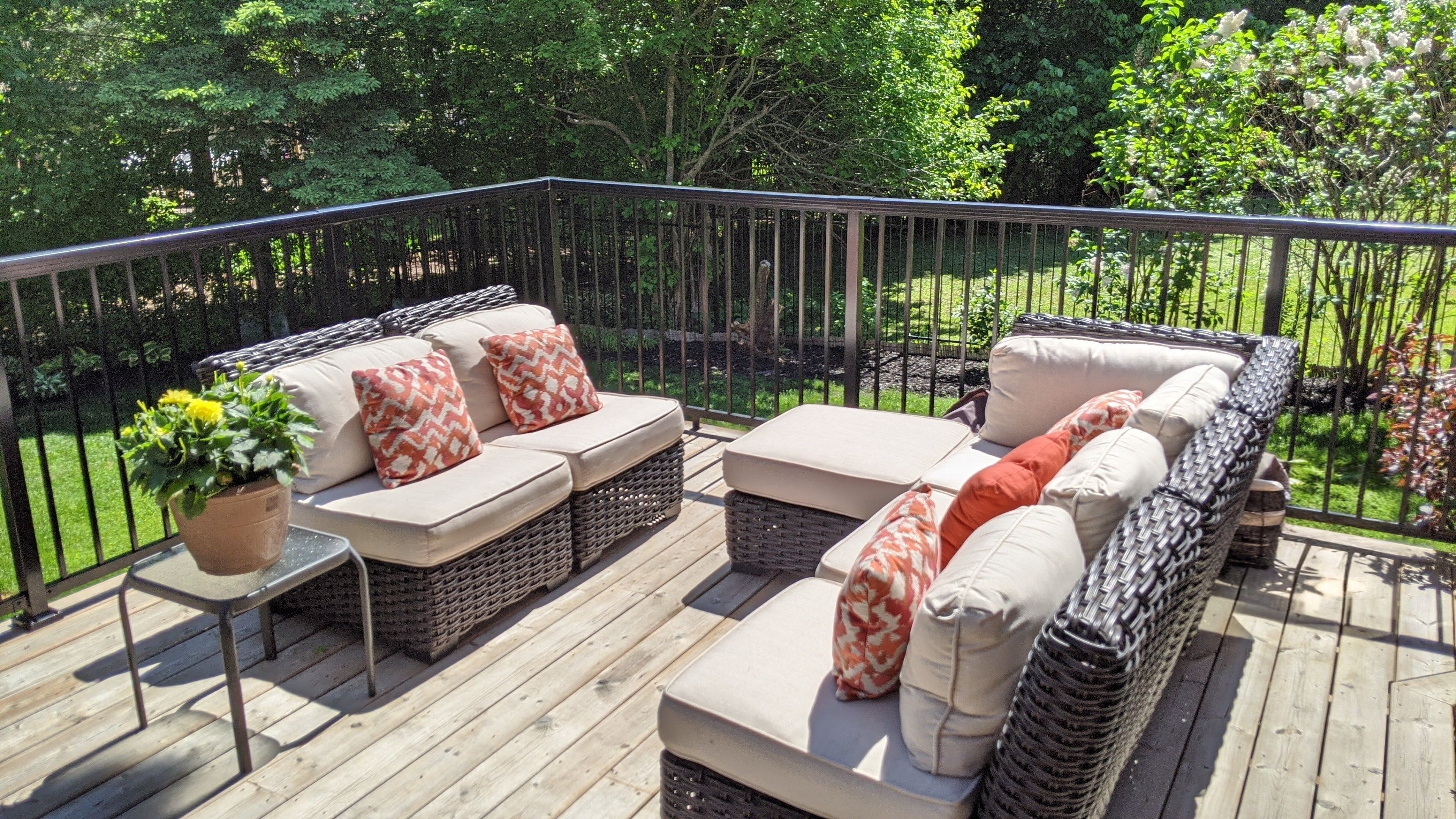 • Massive private backyard oasis with a deck, great for entertaining or relaxing.