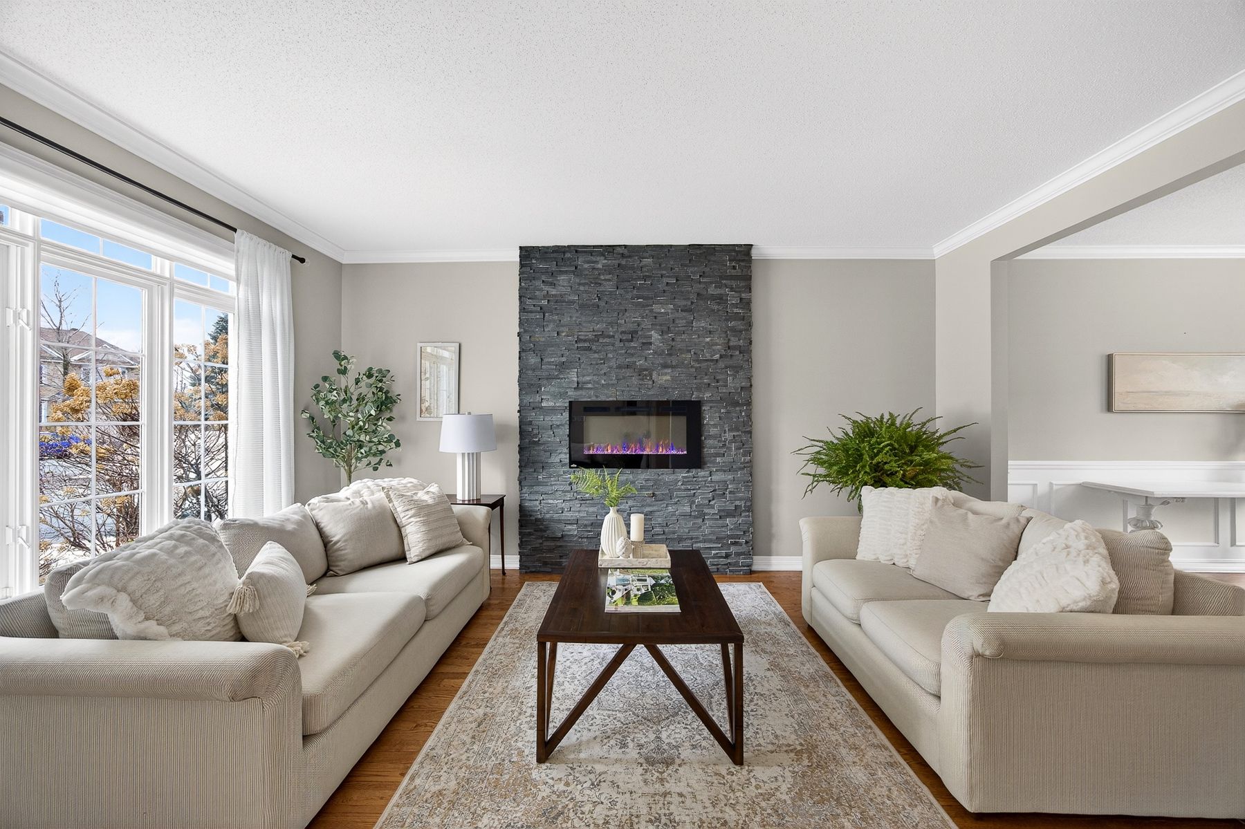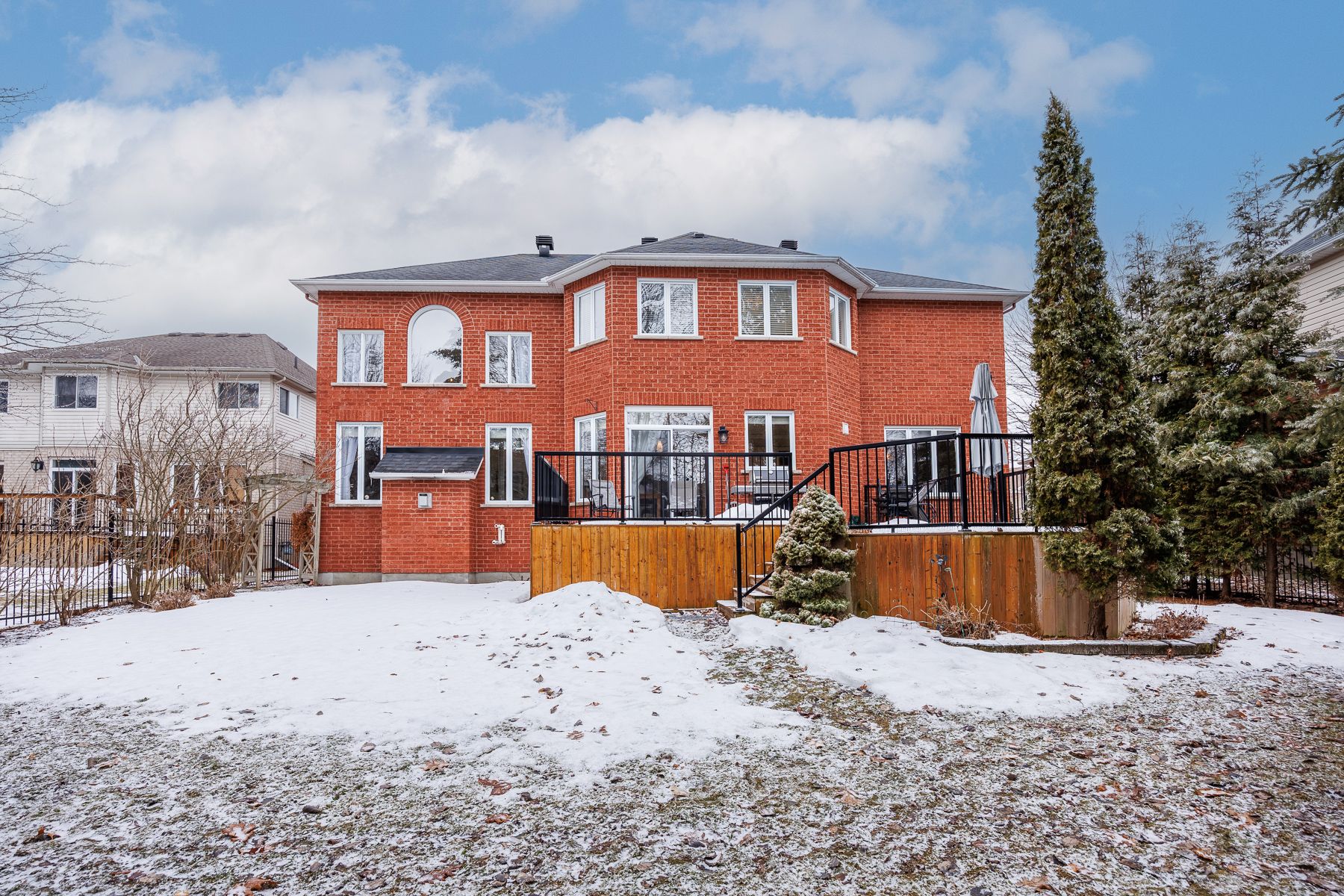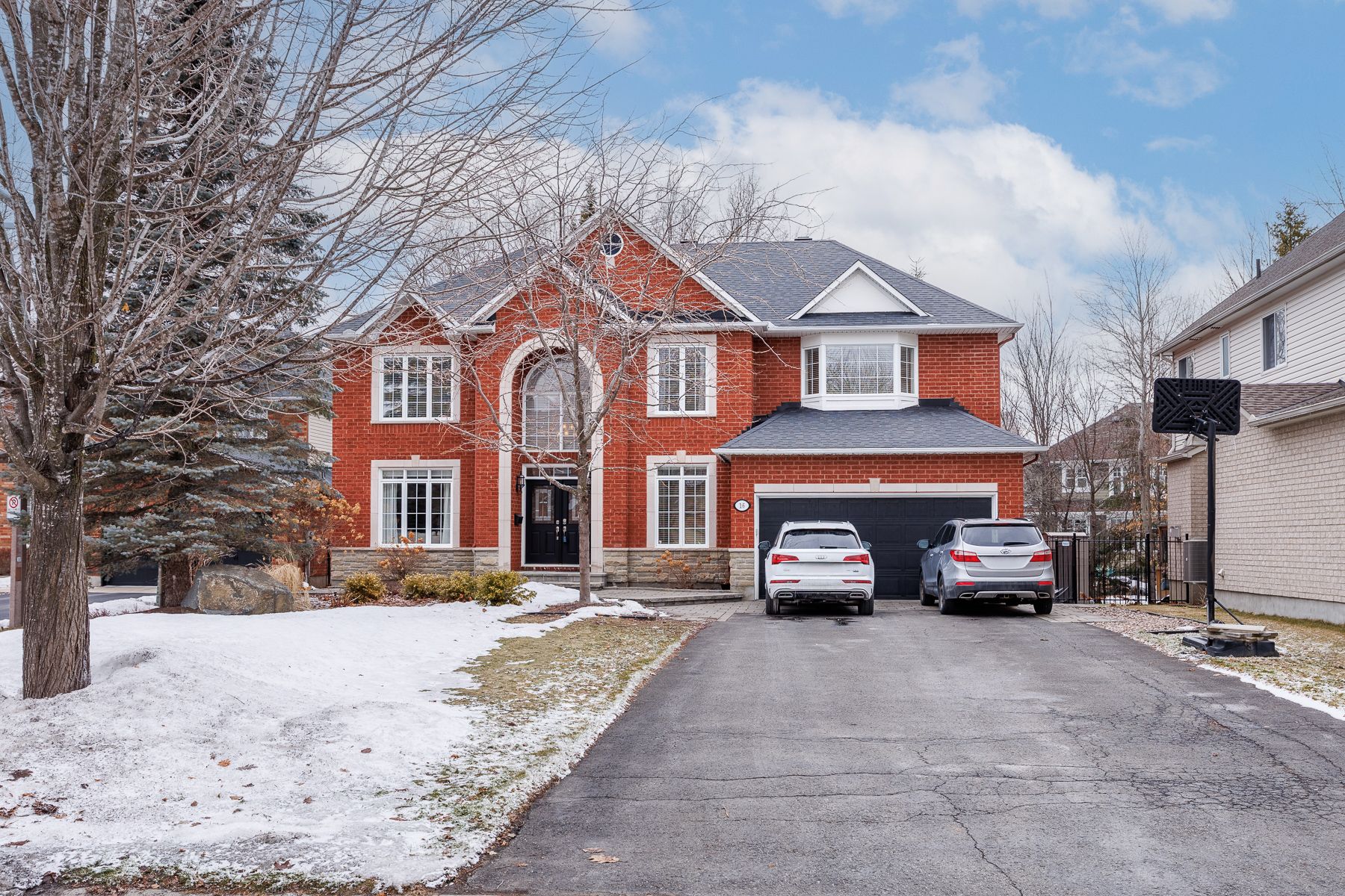 Backing onto the beaver pond trails, this stately family home sits on a mature, oversized lot in the heart of kanata lakes. The "wow" factor begins at the curb, where a long, sweeping driveway leads to a masterfully designed exterior featuring professional landscaping and elegant hardscaping. Experience immediate grandeur from the moment you enter the sun-drenched two-story foyer. Architecturally enhanced with a unique 3-foot extension, the main level features an expanded chef's kitchen with granite counters, gas cooktop, and a movable island. The open-concept living/dining area boasts designer millwork and a modern stone fireplace. Relax in the dramatic sunken family room with soaring ceilings or work from the private main-floor den. Retreat to a massive primary suite featuring a gas fireplace, custom walk-in closet, and an enlarged 5-piece ensuite,(another welcome plus from that 3 ft extension!). Three additional spacious bedrooms (one with private ensuite) complete the upper level. The finished lower level currently offers a media room, family room, gym, and guest suite with full bath-but with two potential conforming bedrooms, multi-generational living is easily possible! Step outside to your private backyard oasis, an expansive retreat that feels worlds away. The massive private lot features a sprawling deck with various entertaining areas, perfect for bbq's or a quiet evening for 2 (or 20 if you prefer), with plenty of lush green space for play or a future pool, all while offering direct access to nature trails. Walk to top-rated schools across multiple boards, and access restaurants, music schools, parks, and shopping within minutes!
