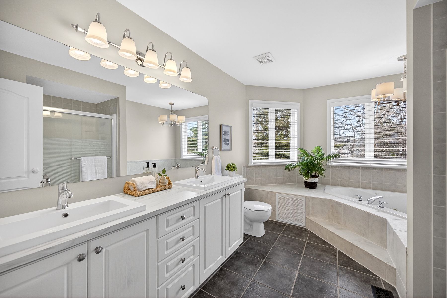• Grand entrance with a sun-drenched two-story foyer sets a welcoming tone.