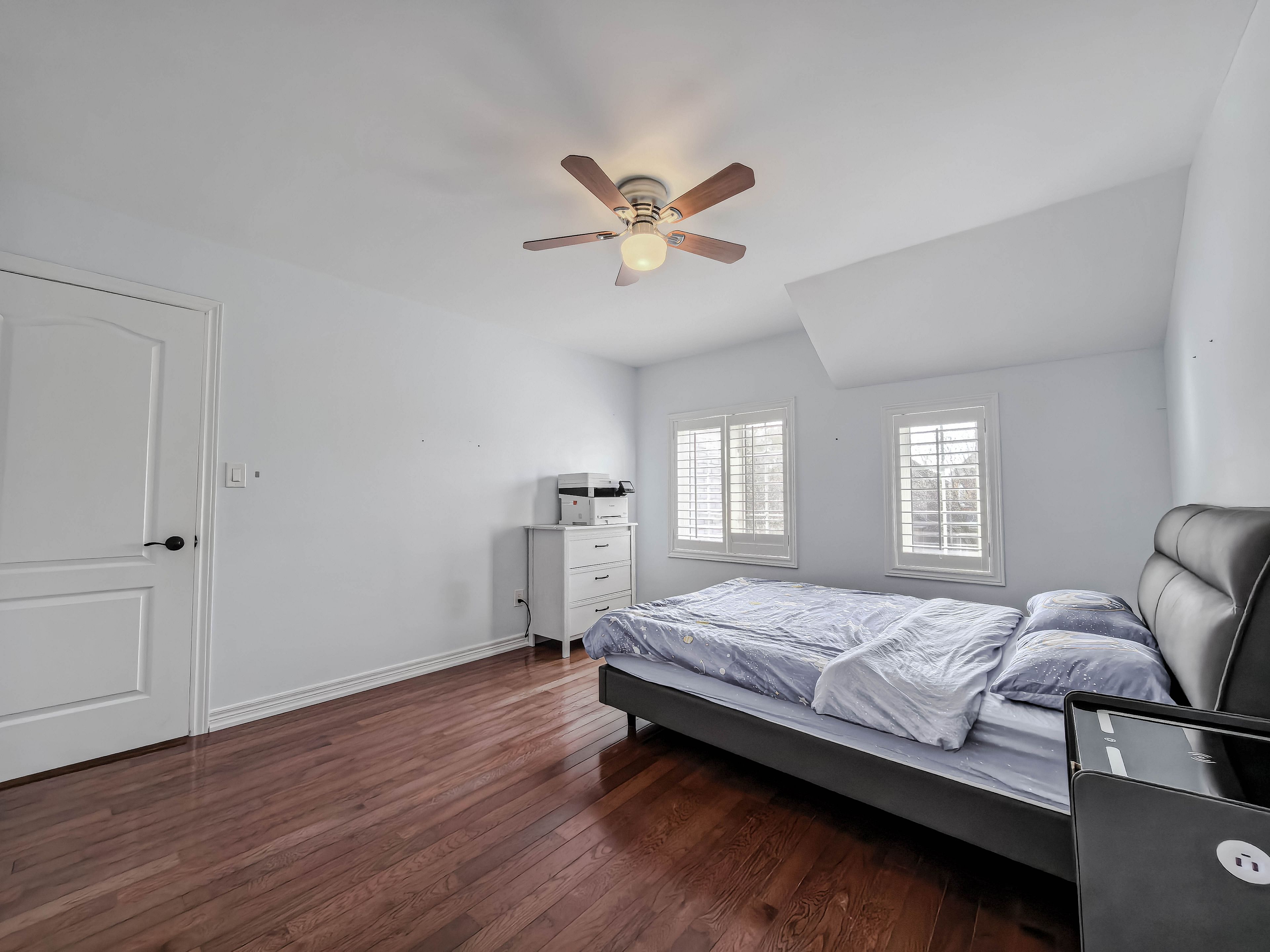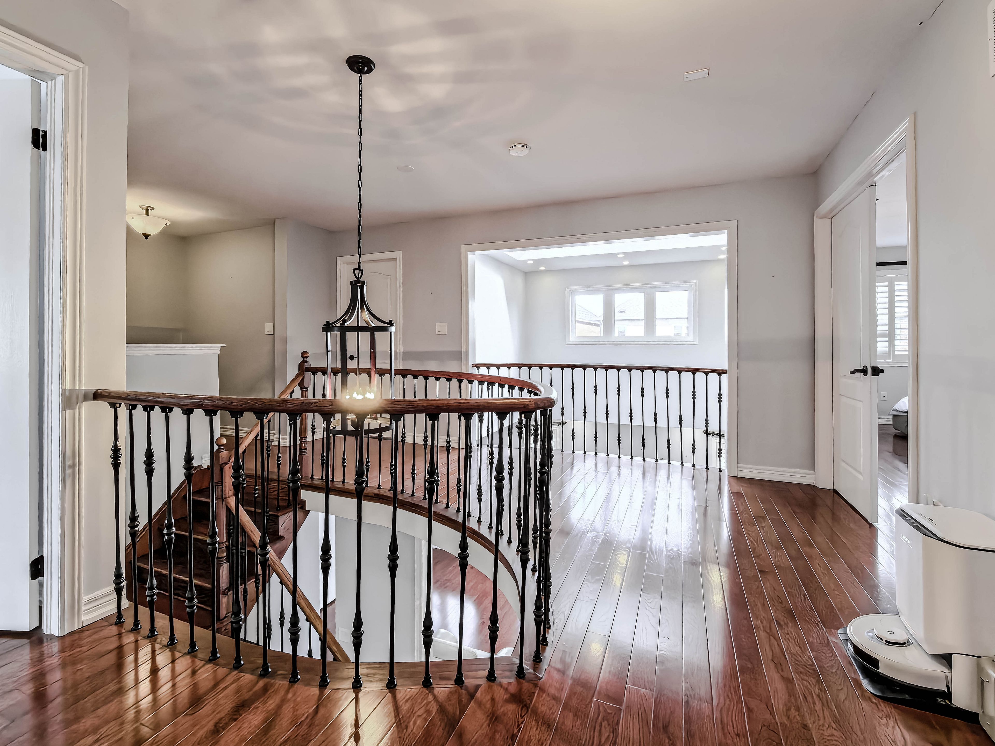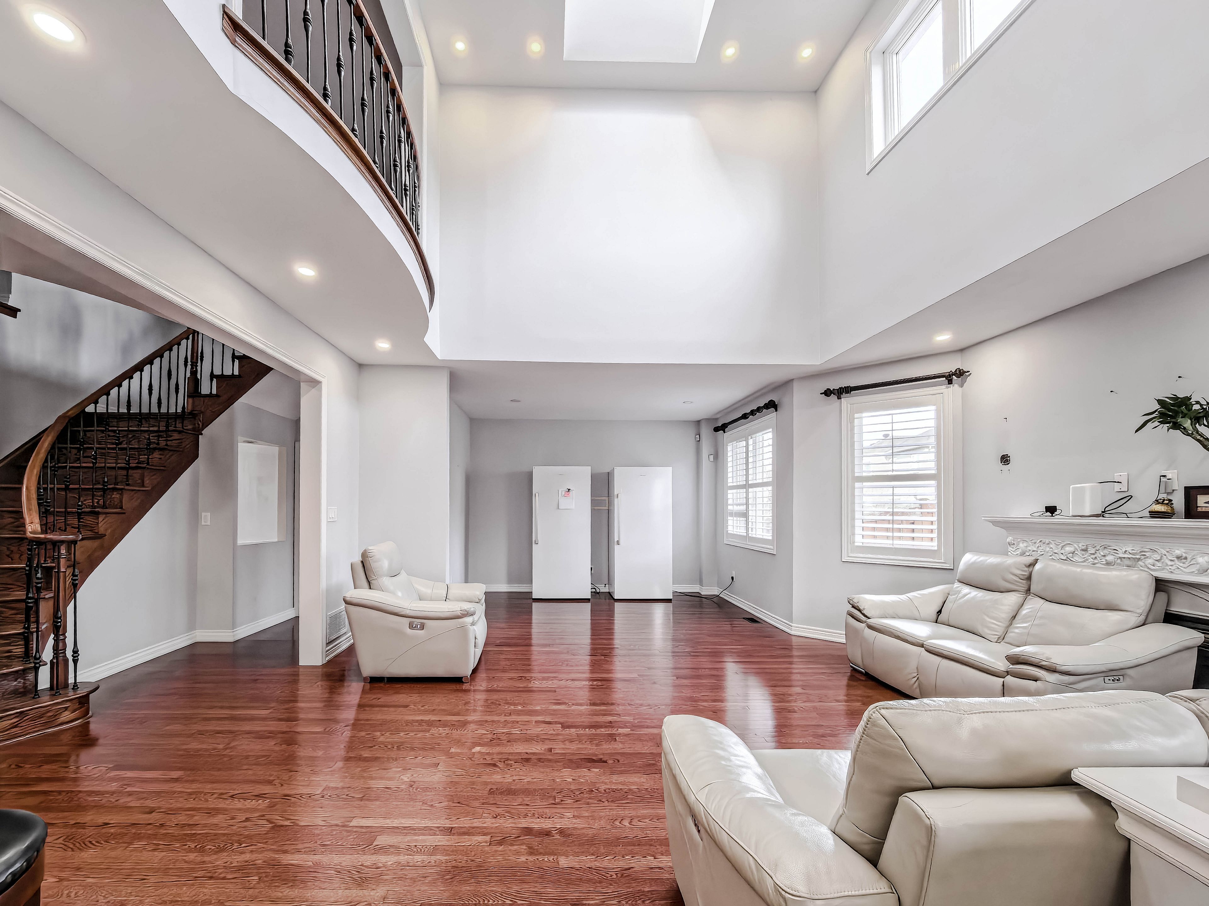 Exceptional luxury home in a quiet, family-friendly community, beautifully upgraded and tastefully finished throughout. Features a grand double-door entry with ceramic foyer, hardwood floors throughout, oak staircase with iron pickets, and a stunning 17-foot open-to-above family room. Enjoy an upgraded fireplace mantel, skylight, pot lights, art niche, decorative roman columns, and a coffered ceiling in the dining room. The gourmet kitchen offers granite countertops, ceramic backsplash, and a convenient butler's walk-through. Additional highlights include upgraded light fixtures, a computer niche on the second-floor hallway, 9-foot ceilings, a jacuzzi in the primary bedroom, and a professionally finished basement with separate entrance. Complete with california shutters throughout, direct garage access, granite front porch flooring, wrought iron railing, and professional landscaping. A truly impressive home - must be seen.