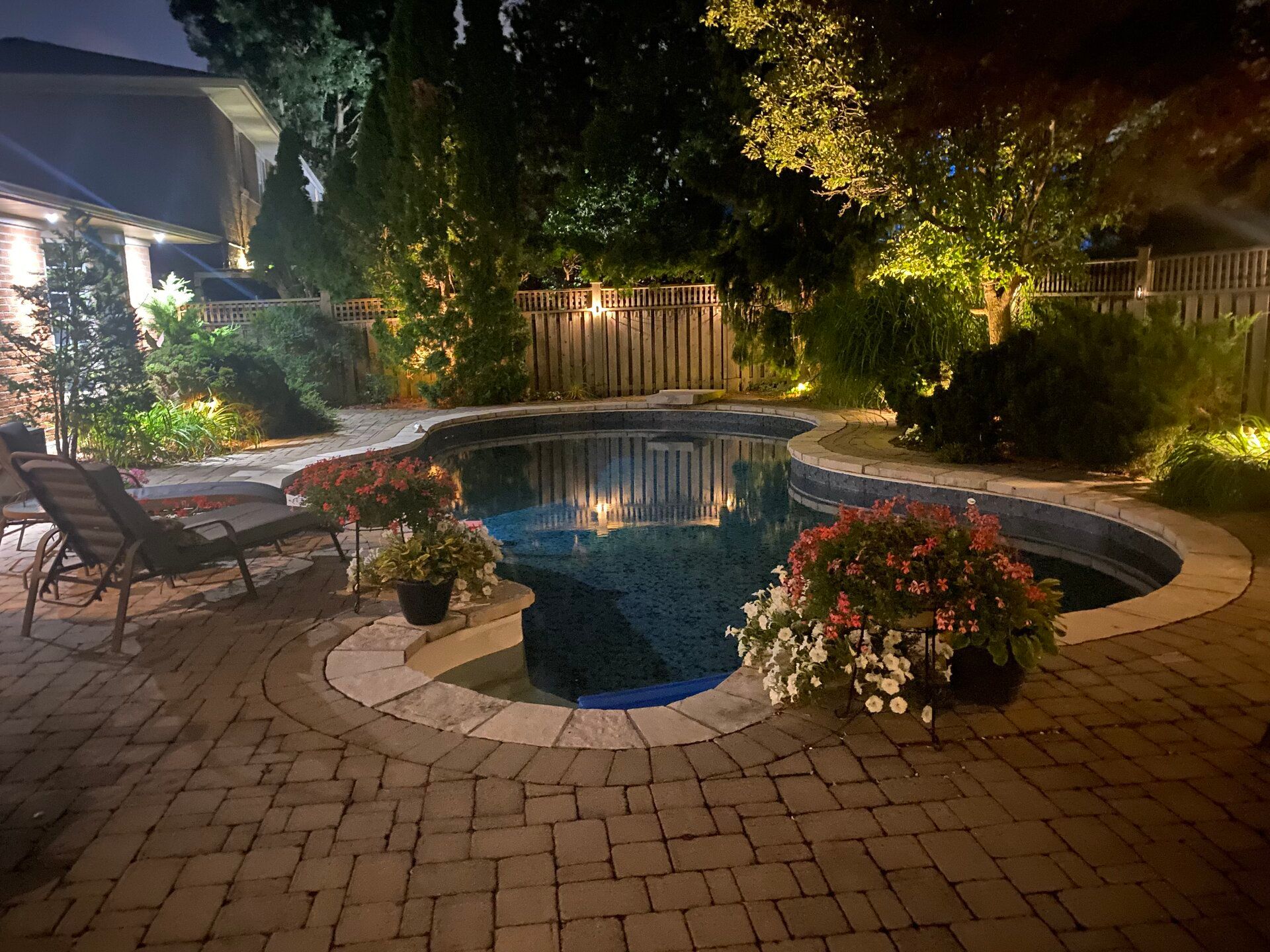 • Beautifully landscaped backyard with a saltwater pool and patio.