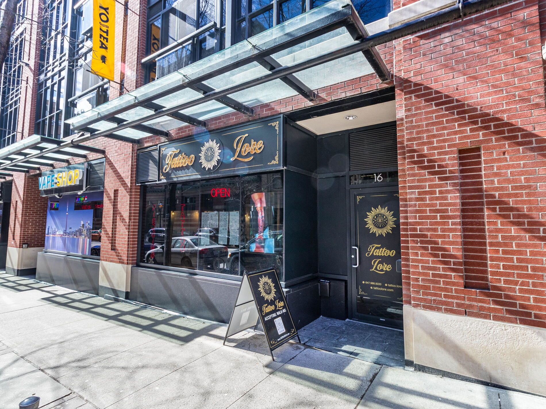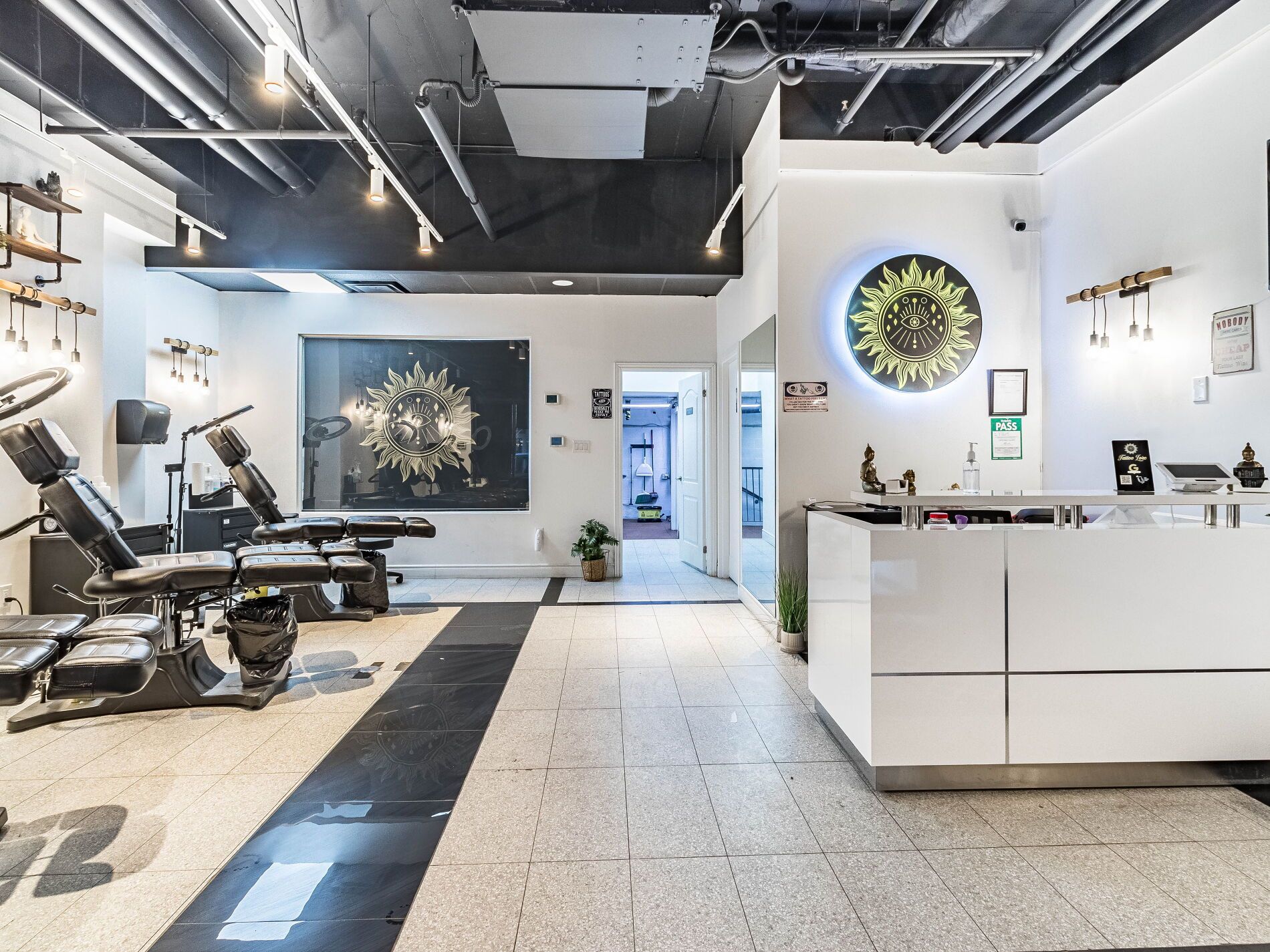 Turn-key tattoo studio for sale without brand name in a prime downtown location at front & church st. Spacious 1,130 sq. Ft. Studio with high-traffic exposure, attracting both local customers and tourists. Features 4 fully-equipped artist stations, a private luxury room, reception, and washroom. Ready to operate with all equipment included. Excellent opportunity in a trendy, high-demand area! This space can also be converted into a beauty salon or other permitted uses. Buyer or buyer's agent is advised to verify zoning and conduct necessary research for any alternate business use.