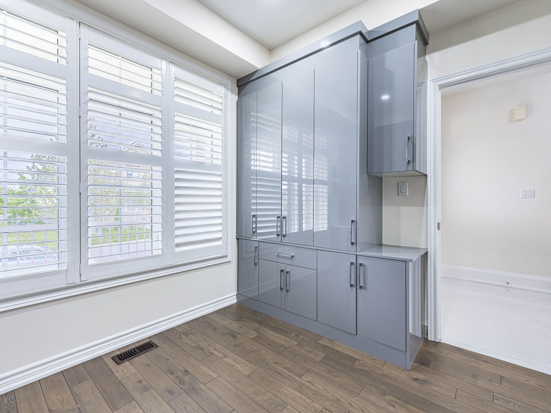 • Dedicated study with custom cabinetry for a home office.