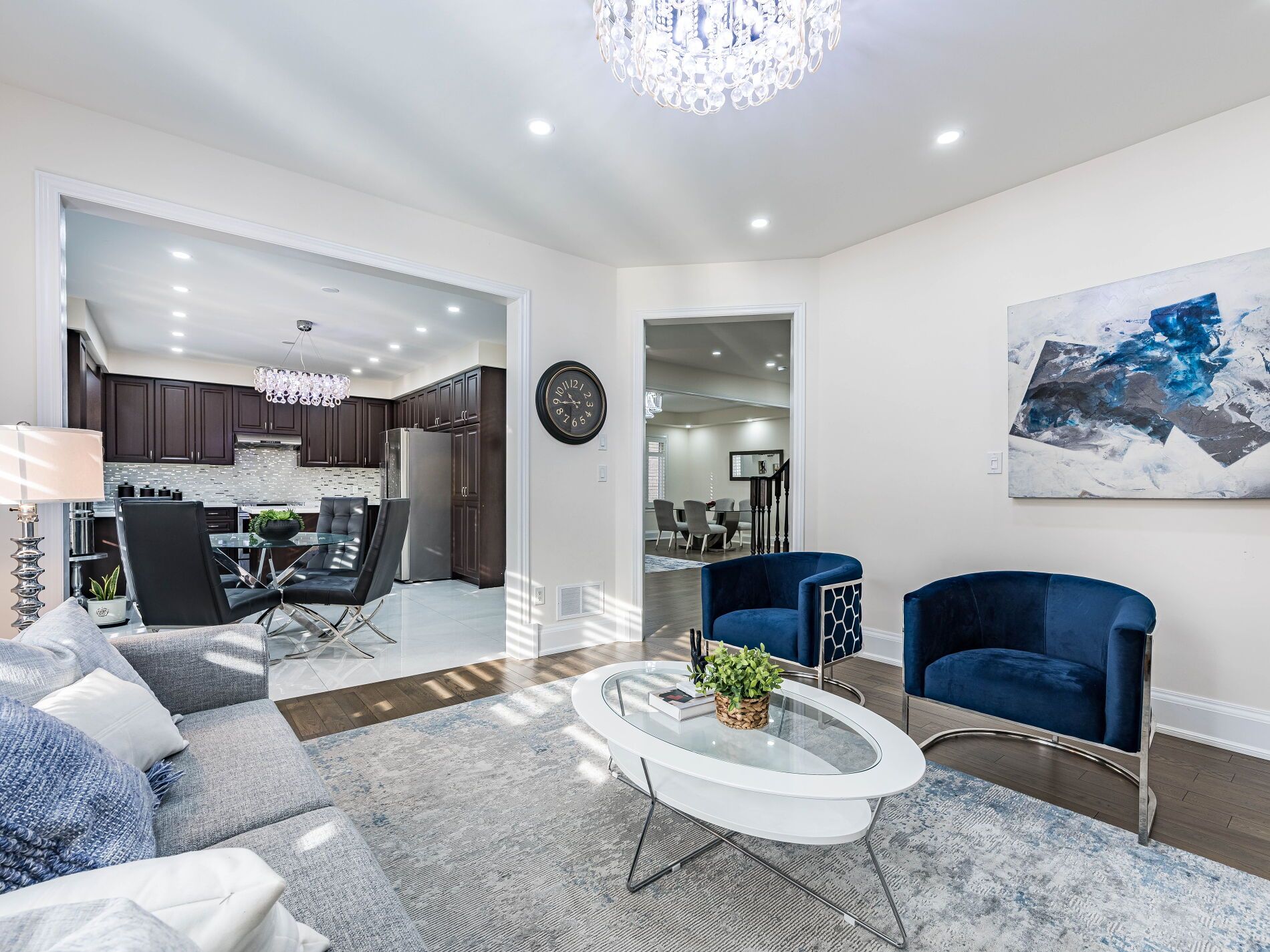 Welcome to this stunning and spacious 5-bedroom home located in a prestigious, family-friendly neighbourhood. Featuring a grand double-door entry, this home showcases elegant 2x4 tiles in the kitchen, powder room, and entry hallway. Gleaming hardwood flooring extends throughout the main living areas, adding warmth and sophistication. The main floor includes a dedicated study with custom office cabinetry, perfect for working from home, along with built-in storage cabinets for added convenience. The chef's kitchen offers a highly functional layout and flows seamlessly into the cozy family room, which opens to the backyard. Here, you'll find a beautiful pergola on a concrete patio-ideal for relaxing or entertaining. The fully finished legal basement features a separate entrance, providing excellent income potential. Additional upgrades include pot lights and newly poured concrete leading to the basement entrance. The primary bedroom offers access to a private ensuite bathroom, ensuring comfort and privacy. Located directly across from a kids' park and close to schools and major highways, this home is perfectly situated for families. A perfect blend of luxury, comfort, and functionality-don't miss this one !