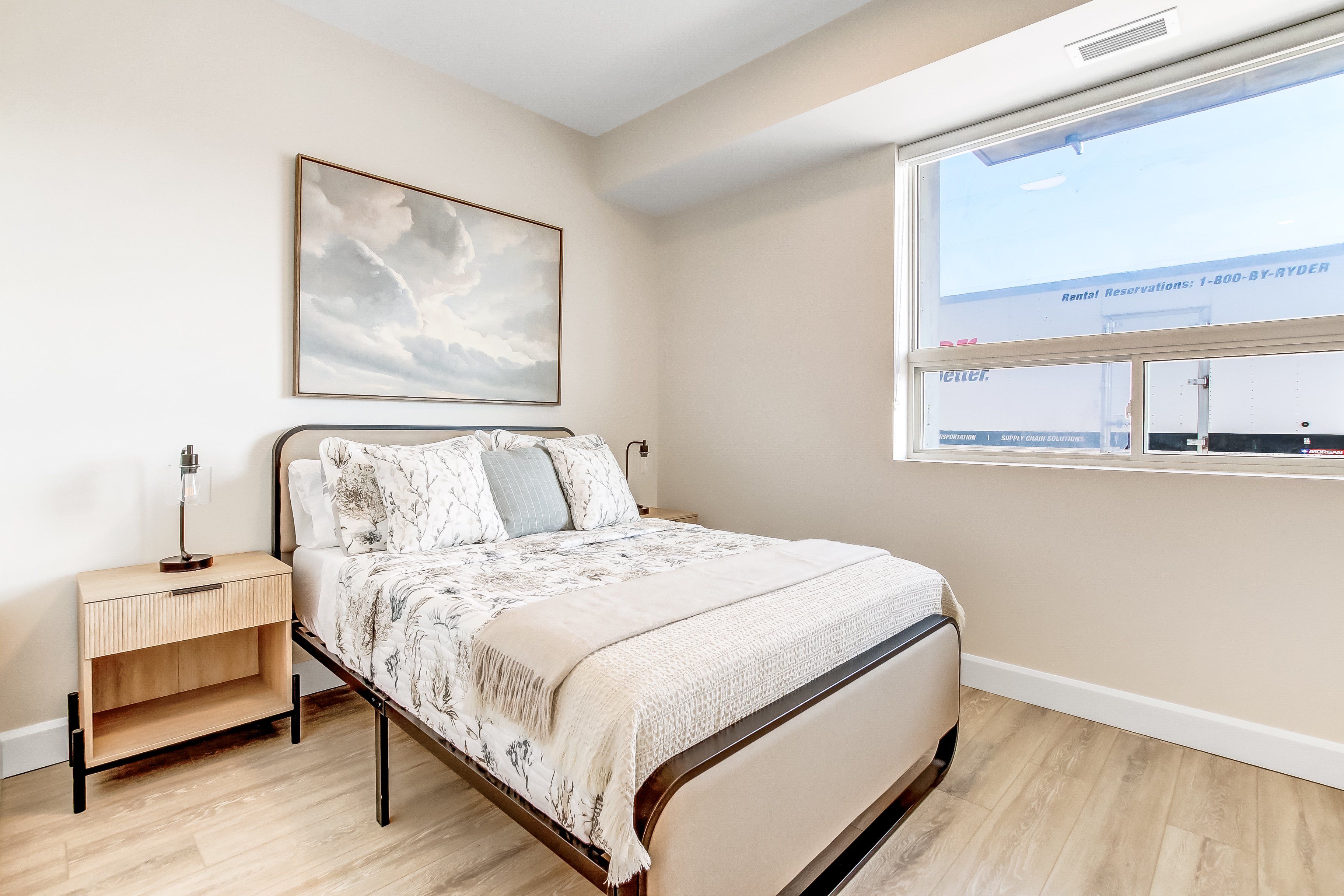 • Building amenities include fitness center, rooftop patio, and community room.