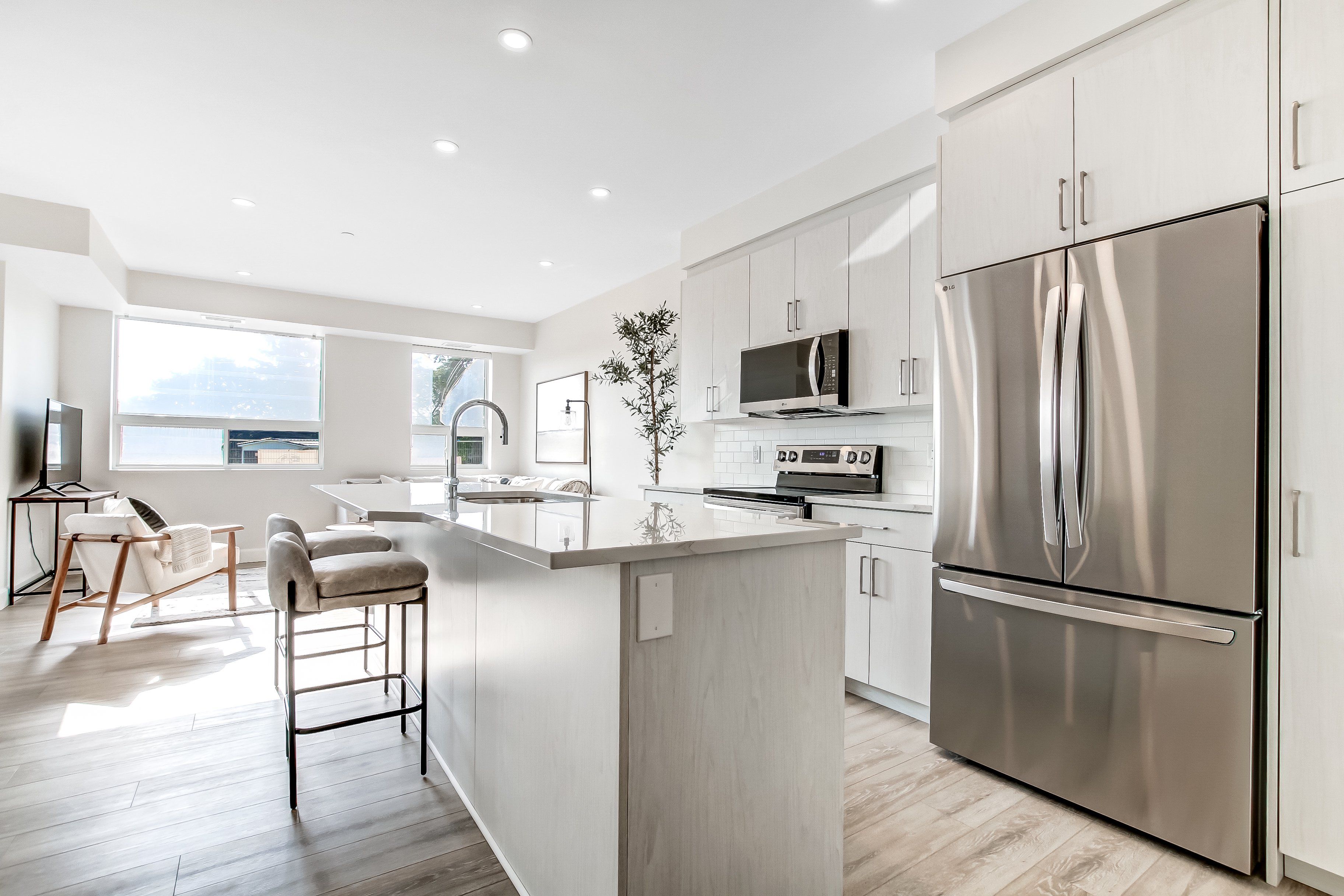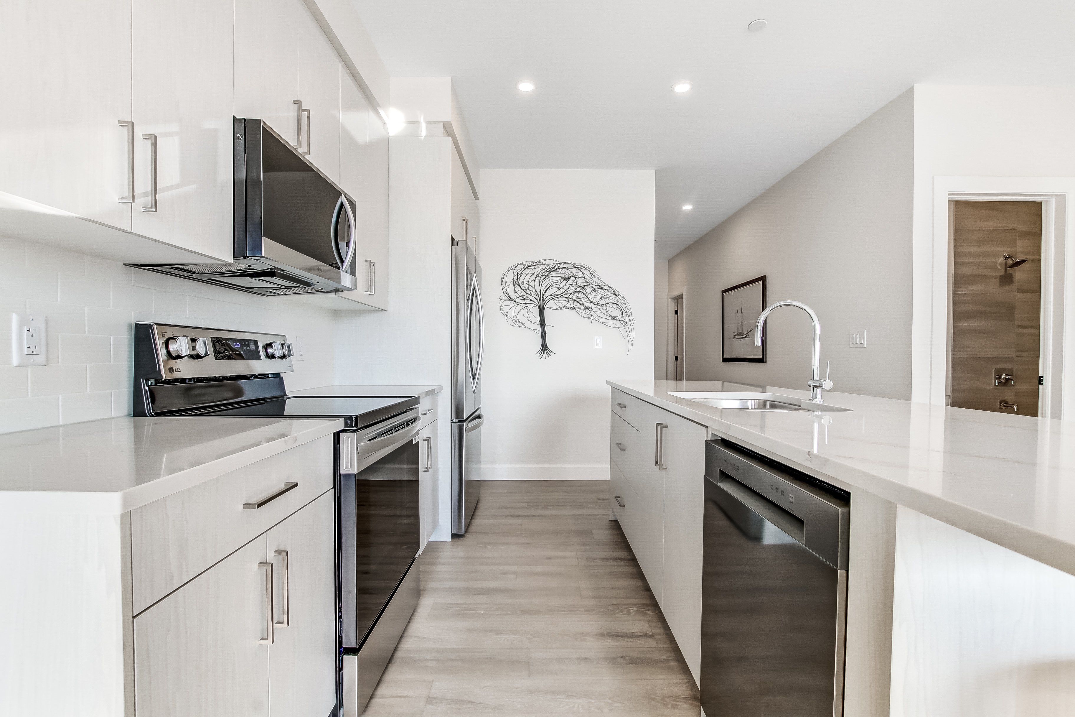 • Stylish finishes with quartz countertops and large kitchen island.