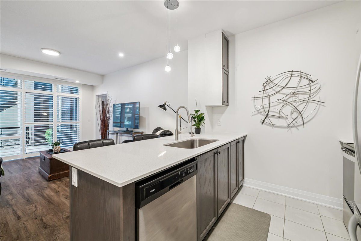 Welcome to aquazul waterfront condominiums, where resort-style living meets lakeside tranquility! This bright and inviting main floor condo offers an open-concept layout with 2 bedrooms, a 3-piece ensuite privilege with walk-in shower, and many upgrades that elevate everyday living. Situated in the picturesque town of grimsby-on-the-lake, this unit is perfect for professionals, commuters, and those seeking a vibrant community with quick access to the qew, boutique shops, restaurants, and waterfront trails. Step inside and enjoy the warm ambiance of the living room that flows into the stylish kitchen, complete with custom cabinetry, quartz countertops, stainless steel appliances, pantry roll-out drawers, and a breakfast bar. Recent updates include: brand new carpet in both bedrooms, bedroom enhancement with storage in spare bedroom, new kitchen and bathroom sinks and fixtures, an owned reverse osmosis system, 3" plantation shutters throughout, and a full-size washer and dryer. The main floor patio is a pet owner's delight and ideal for entertaining-plus, no more hauling groceries up the elevator! This desirable poolside unit offers convenient access to the outdoor bbq area making everyday living effortless. Everyday living is effortless and convenient. At aquazul, you'll love the resort-style amenities: an outdoor pool with cabanas, a stylish party room, fitness center, theatre room, and of course, the breathtaking lakeside views. Don't miss your chance to own a slice of lakeside living in one of grimsby's most desirable communities!