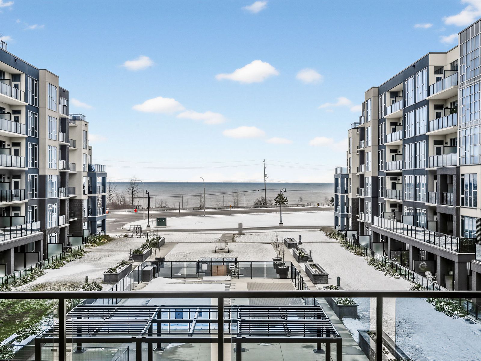 • Large balcony with views of the pool and Lake Ontario.