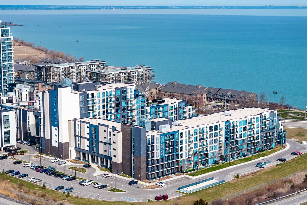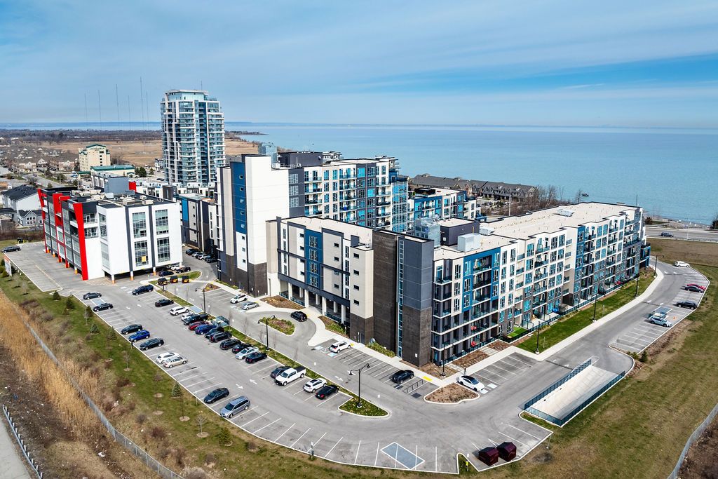 Discover lakeside living in grimsby on the lake! An accessible and chic 1-bedroom plus den unit with west-facing and partial lake views. The den offers versatile space for an office, a cozy retreat or guest room. The bathroom features an accessible and relaxing walk-in tub with jets and showerhead. Entertain in style in the open-concept living area featuring abundant natural light from the floor-to-ceiling windows. Enjoy your coffee on your private balcony with views of lake ontario and beautiful evening sunsets. With amenities like an outdoor inground pool, bbq stations, ev chargers, fitness center, rooftop terrace, party room, media room, every need is met. Experience tranquility and convenience in one place.