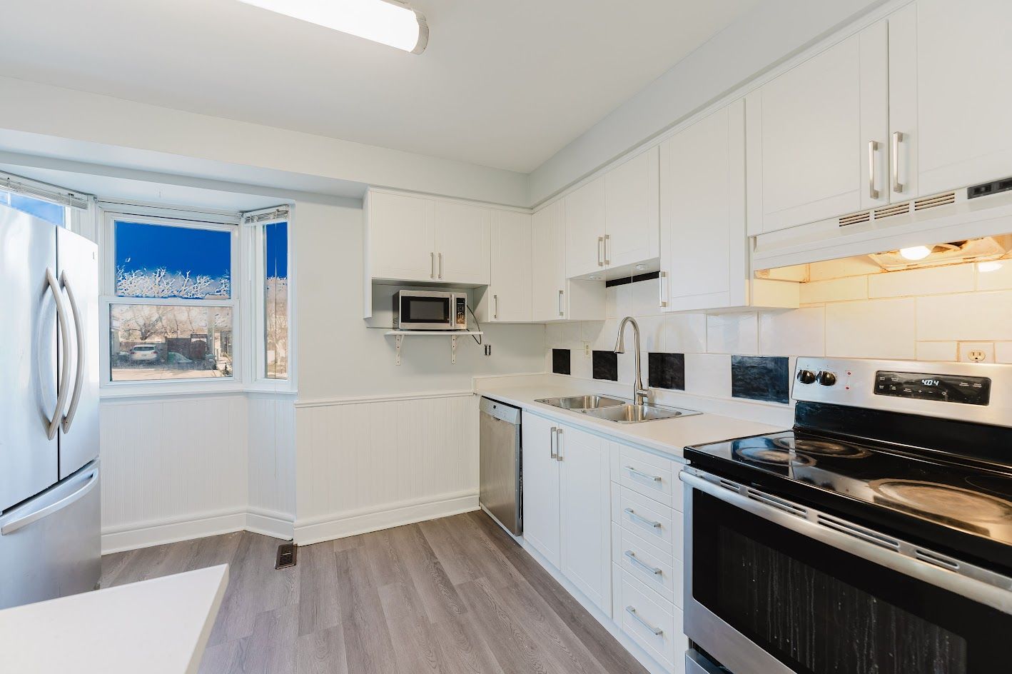 • Brand new modern kitchen with fresh paint and stylish lighting.