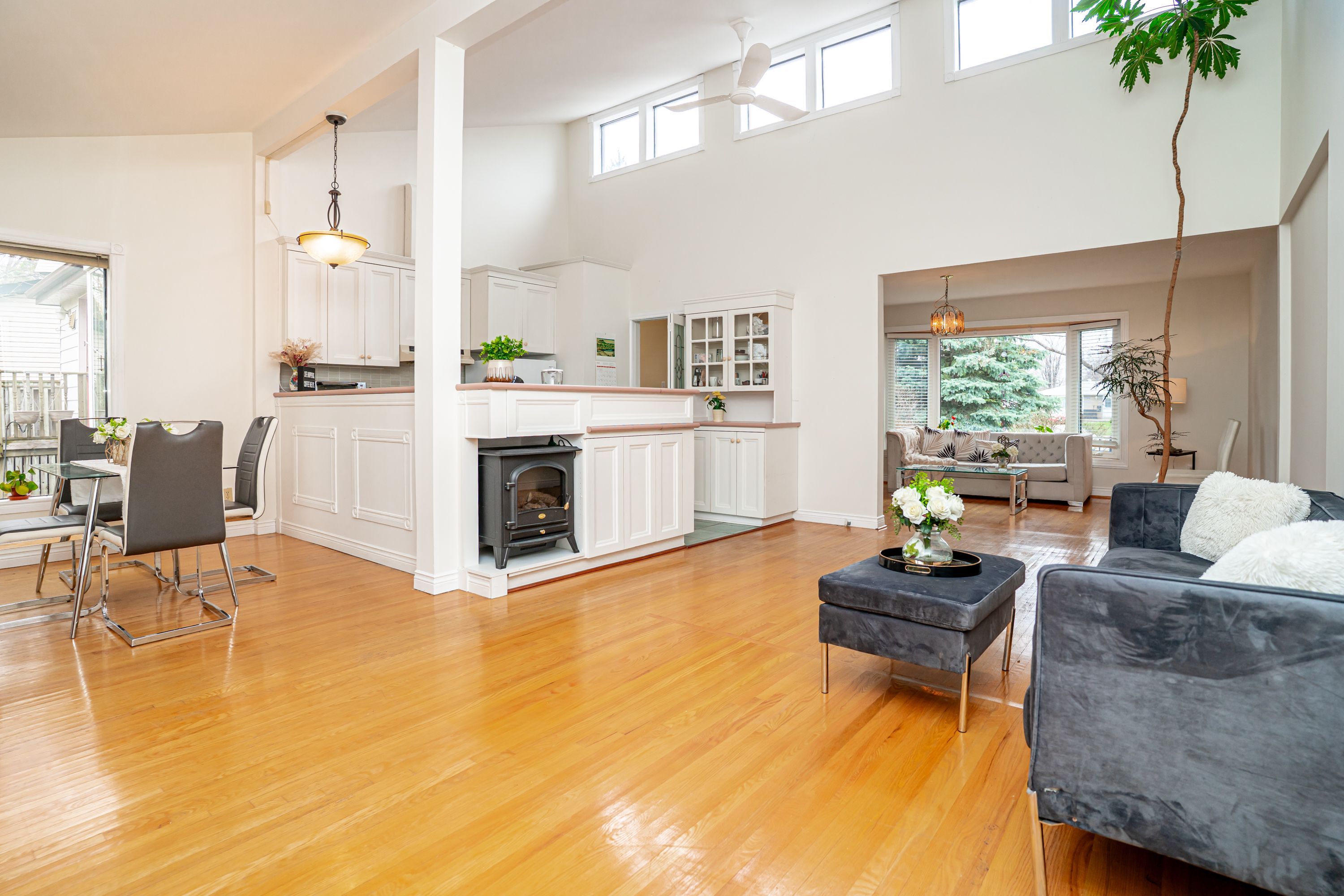 • Generous kitchen with breakfast bar and access to a large sunroom.