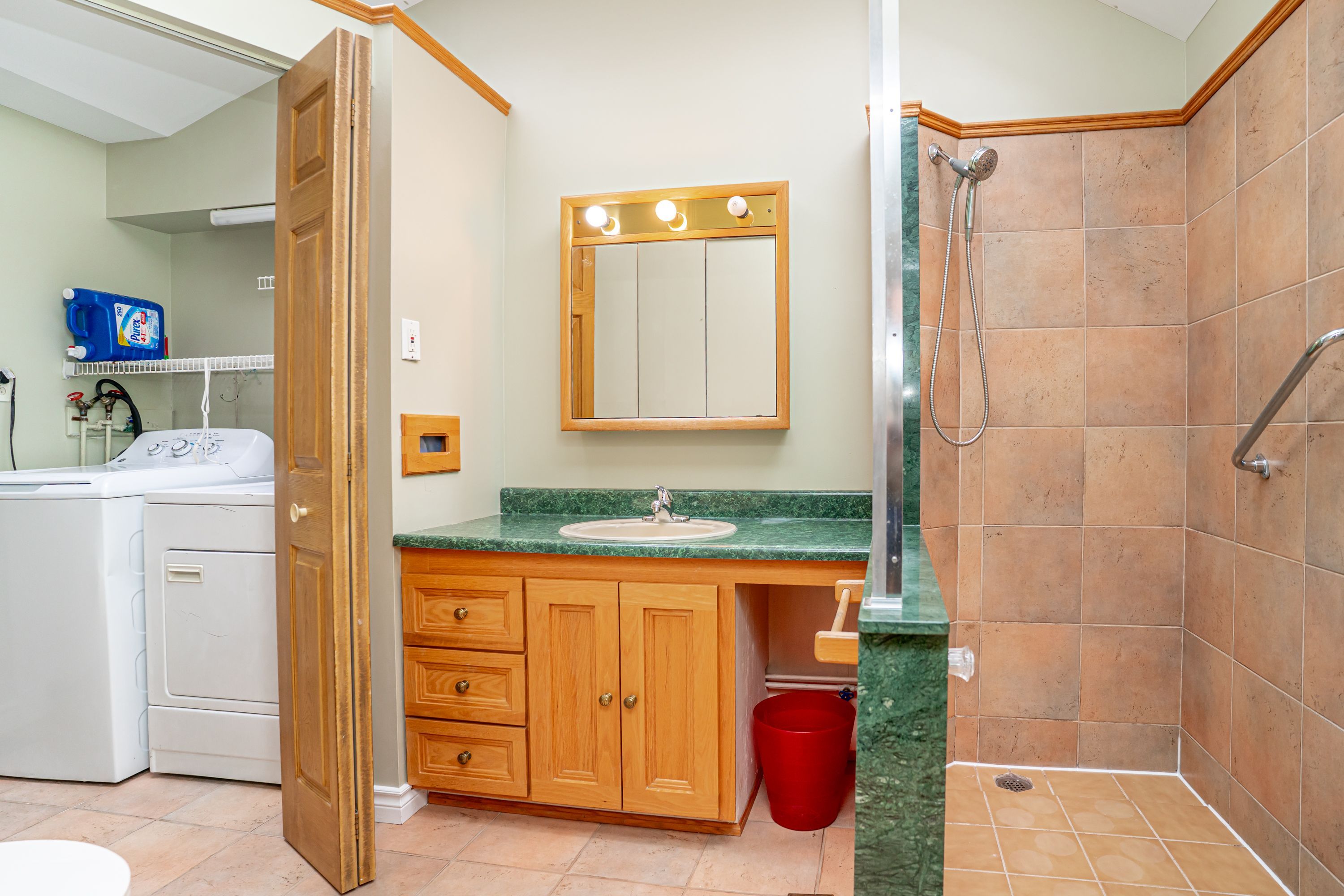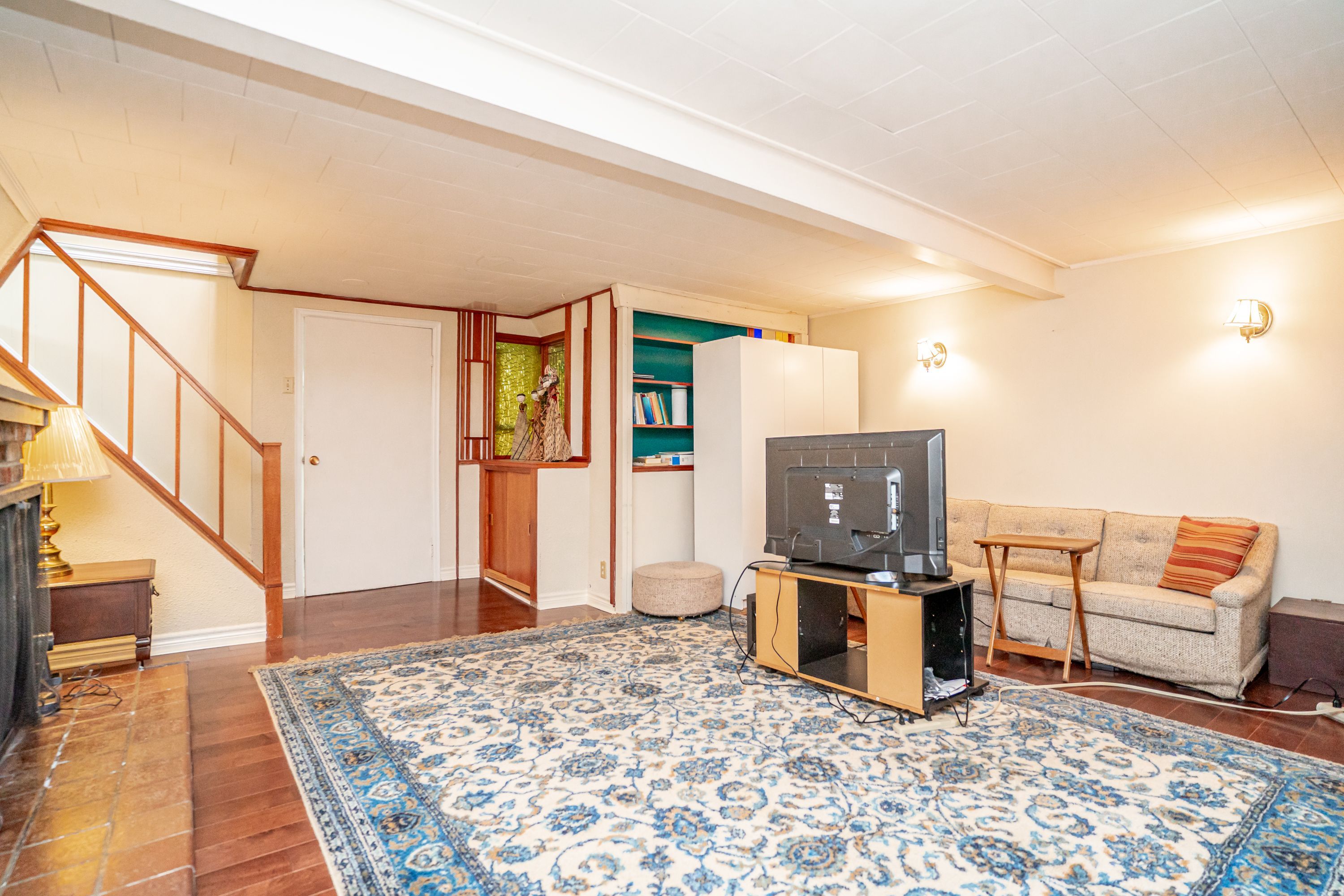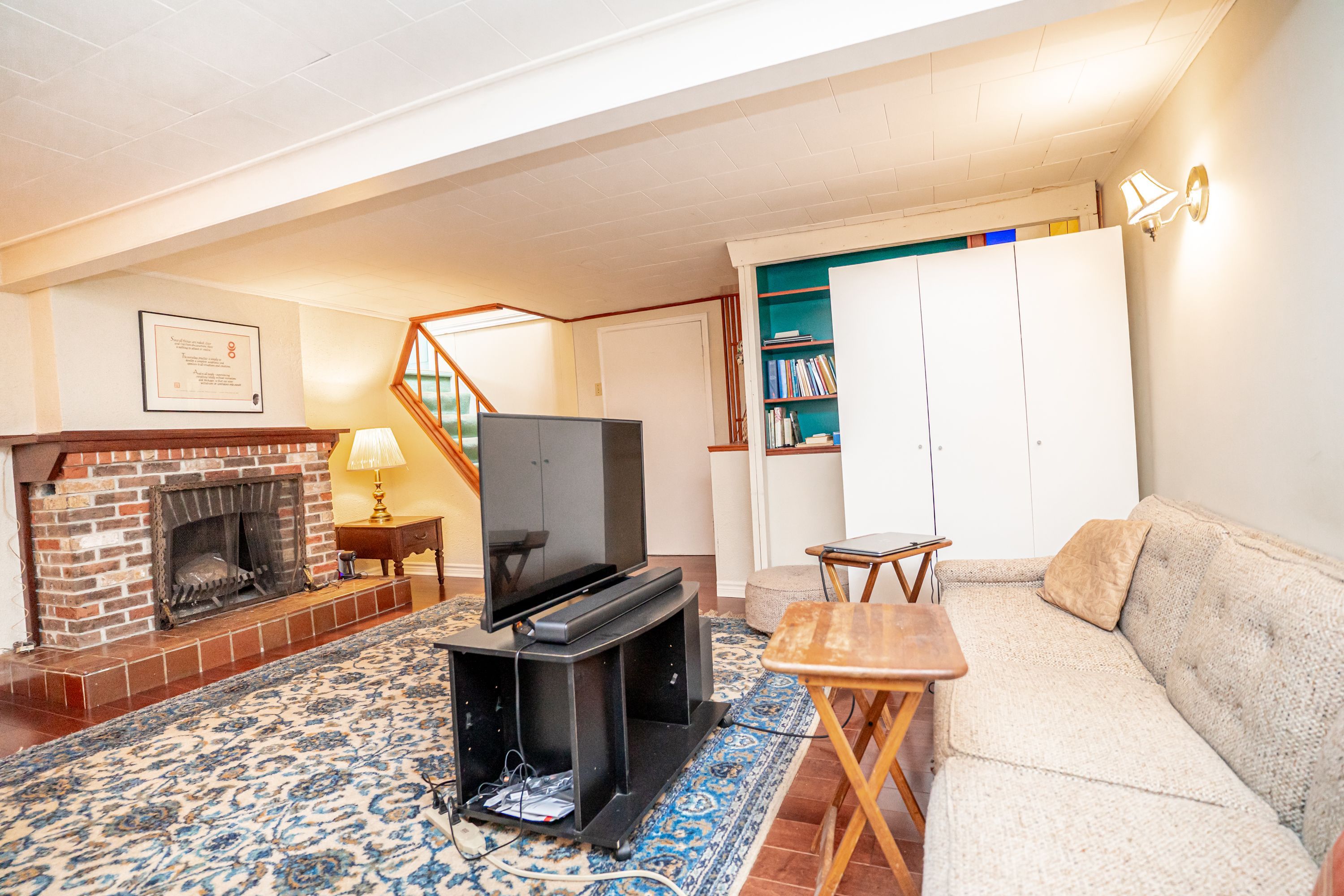 • Lower level includes a large rec room with a fireplace and above-ground windows.