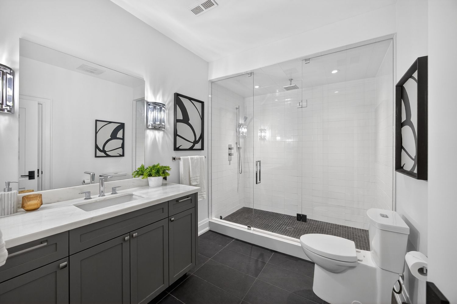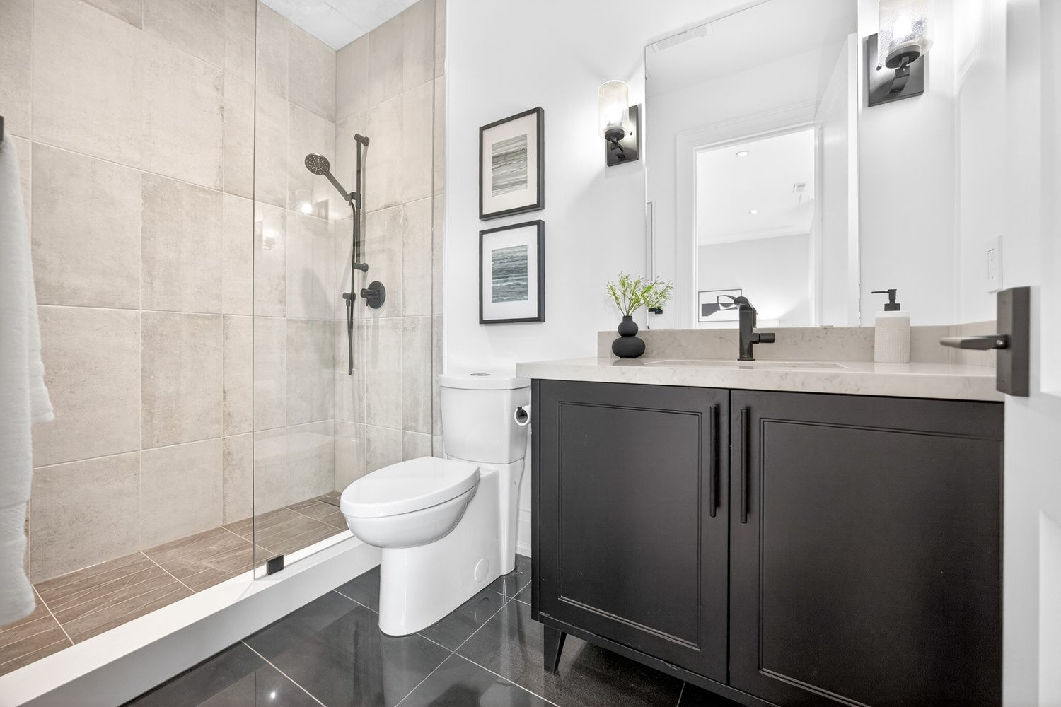 • Upper level includes a large primary suite and private ensuites for all bedrooms.