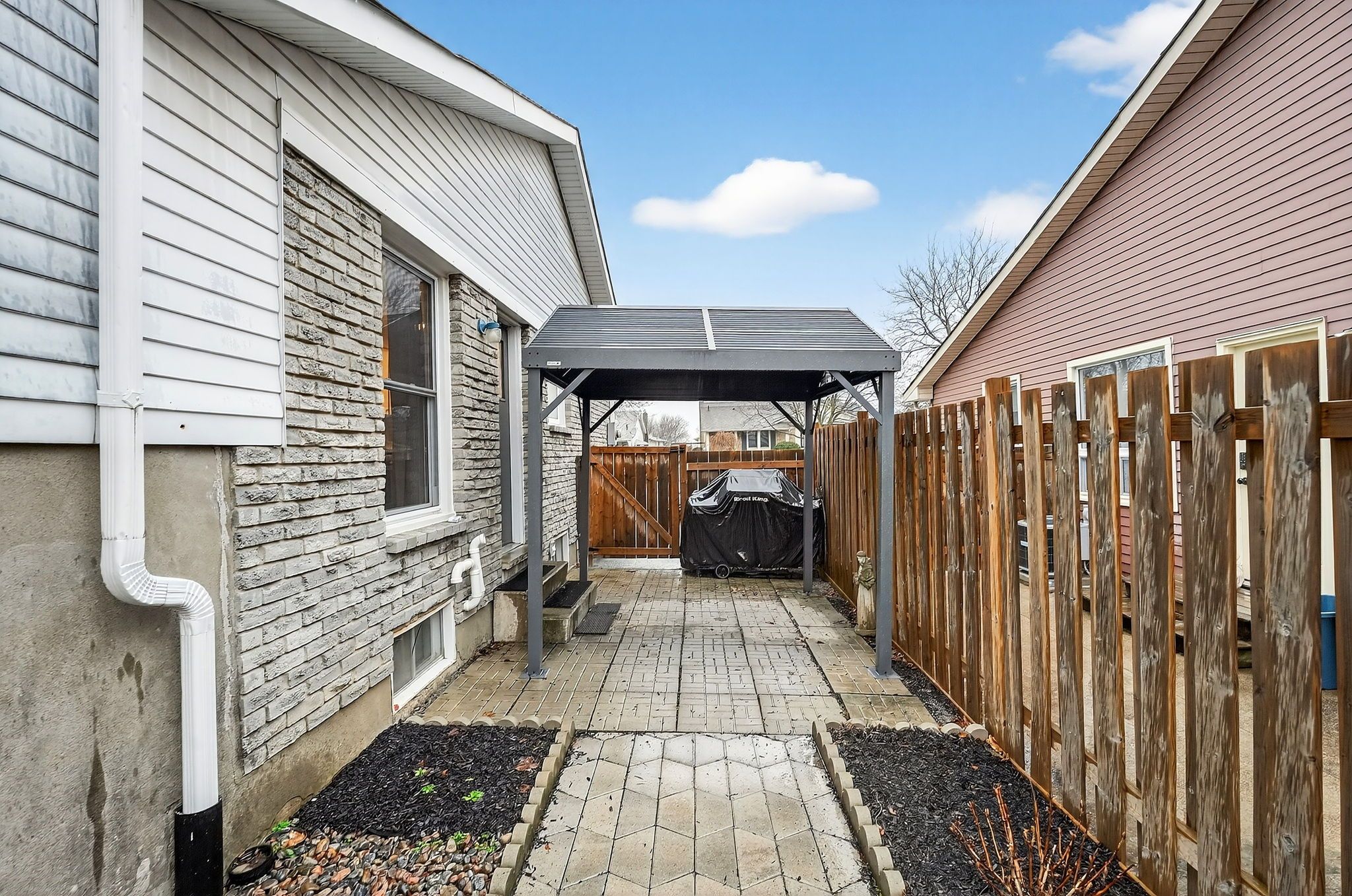 • Fenced yard with a gazebo, back deck, and lovely landscaping.