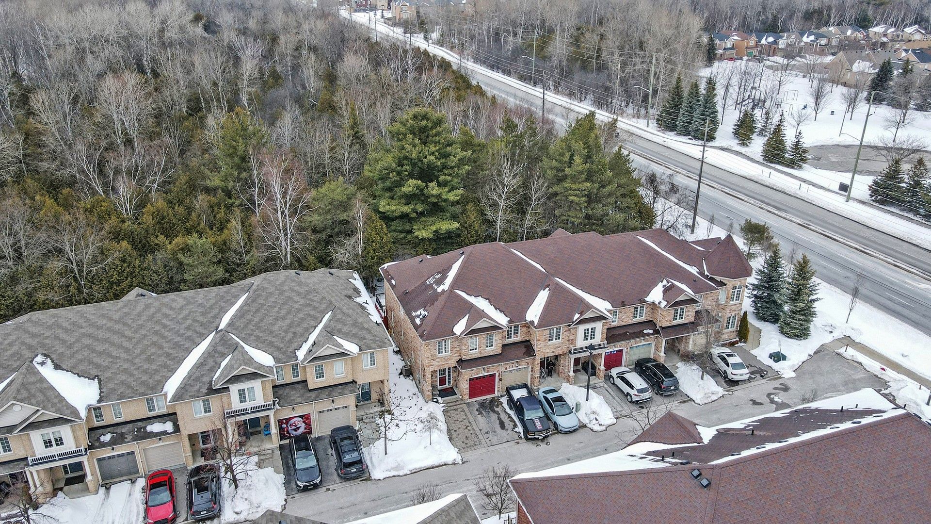 Stunning all-brick end-unit townhome backing onto a private ravine in one of whitby's most sought-after family-friendly communities. This bright 2-storey home offers exceptional natural light and added privacy, with a beautifully landscaped backyard featuring a large deck perfect for outdoor entertaining and relaxing among mature trees. The open-concept main floor showcases hardwood flooring throughout, a convenient 2-piece powder room, and a spacious combined living and dining area ideal for gatherings. The updated kitchen features granite countertops, stainless steel appliances, including a gas stove, ample cabinetry, and a breakfast area with a walkout to the deck for seamless indoor-outdoor living. Upstairs, generously sized bedrooms provide comfortable retreats, including a well-appointed primary suite. The finished lower level adds valuable additional living space, ideal for a recreation room, home office, or family area. Added an interlock at the front to provide extra parking alongside the garage and private driveway. A rare opportunity to own a move-in-ready home backing onto green space in a prime whitby location close to parks, schools, shopping, and commuter routes.
