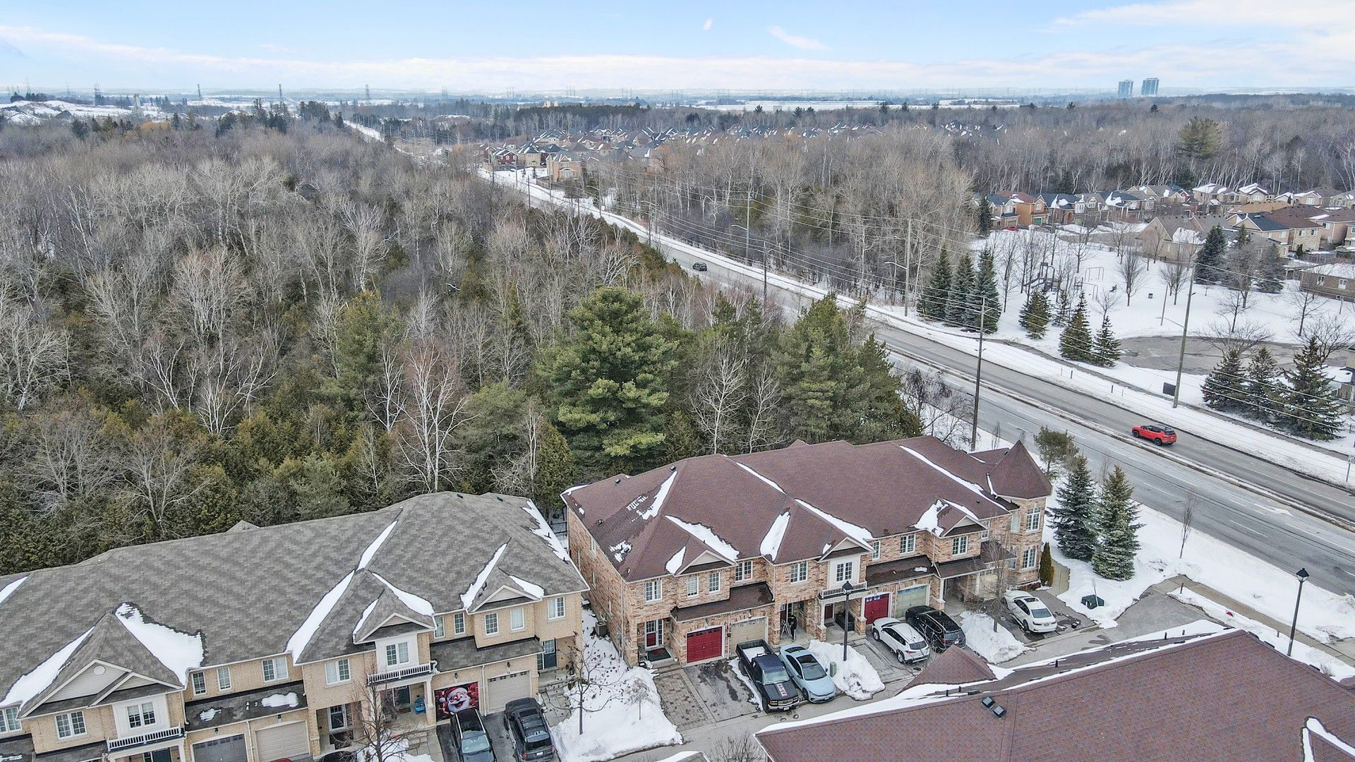 Stunning all-brick end-unit townhome backing onto a private ravine in one of whitby's most sought-after family-friendly communities. This bright 2-storey home offers exceptional natural light and added privacy, with a beautifully landscaped backyard featuring a large deck perfect for outdoor entertaining and relaxing among mature trees. The open-concept main floor showcases hardwood flooring throughout, a convenient 2-piece powder room, and a spacious combined living and dining area ideal for gatherings. The updated kitchen features granite countertops, stainless steel appliances, including a gas stove, ample cabinetry, and a breakfast area with a walkout to the deck for seamless indoor-outdoor living. Upstairs, generously sized bedrooms provide comfortable retreats, including a well-appointed primary suite. The finished lower level adds valuable additional living space, ideal for a recreation room, home office, or family area. Added an interlock at the front to provide extra parking alongside the garage and private driveway. A rare opportunity to own a move-in-ready home backing onto green space in a prime whitby location close to parks, schools, shopping, and commuter routes.