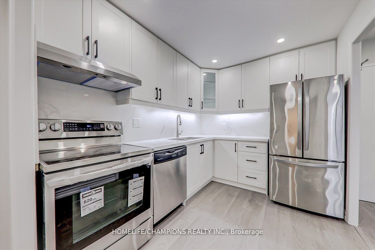 Fully renovated bright spacious 3 bdr and 2 baths condo. Amazing location, next to yonge street's transportation/shops/restaurants, but in a quiet alcove & steps to excellent schools & parks. Full building amenities package (indoor pool, sauna, gym, party room, kids playground etc...) comes with reasonable maintenance. Great functional layout brings privacy & convenience to this well maintained and upgraded home. Large two open balcony, w stunning green view (res. & park), fully renovated kitchen with stunning centre backsplash and quartz counter tops. Renovated baths with additional standing shower. Big airy bedrooms w closets.. Separate laundry room allows for full size appliances storage. Basement lockers (mgmt property) are rented out to those who want them.