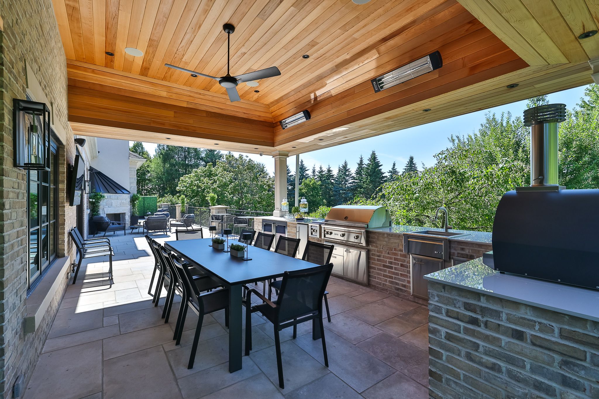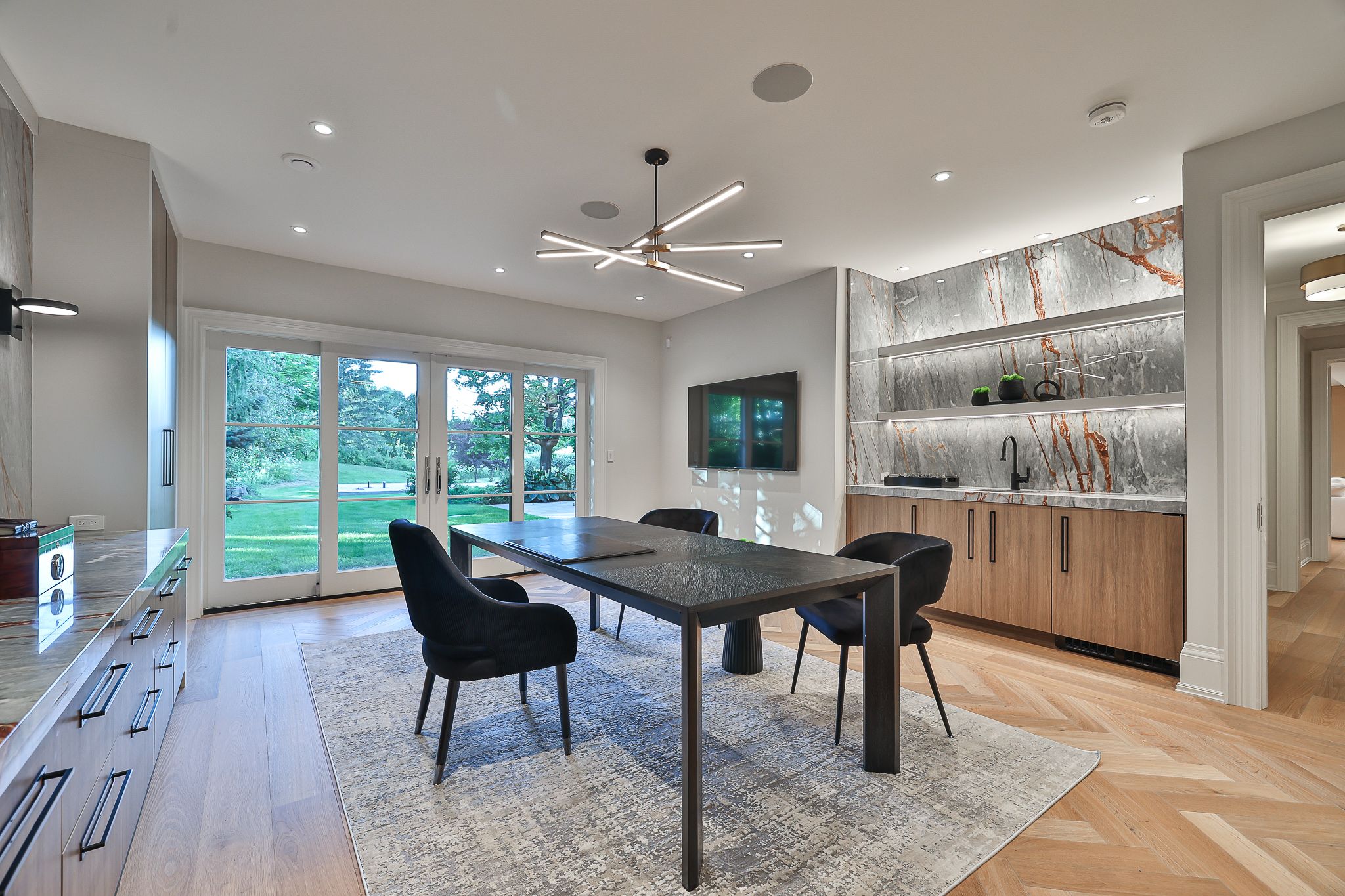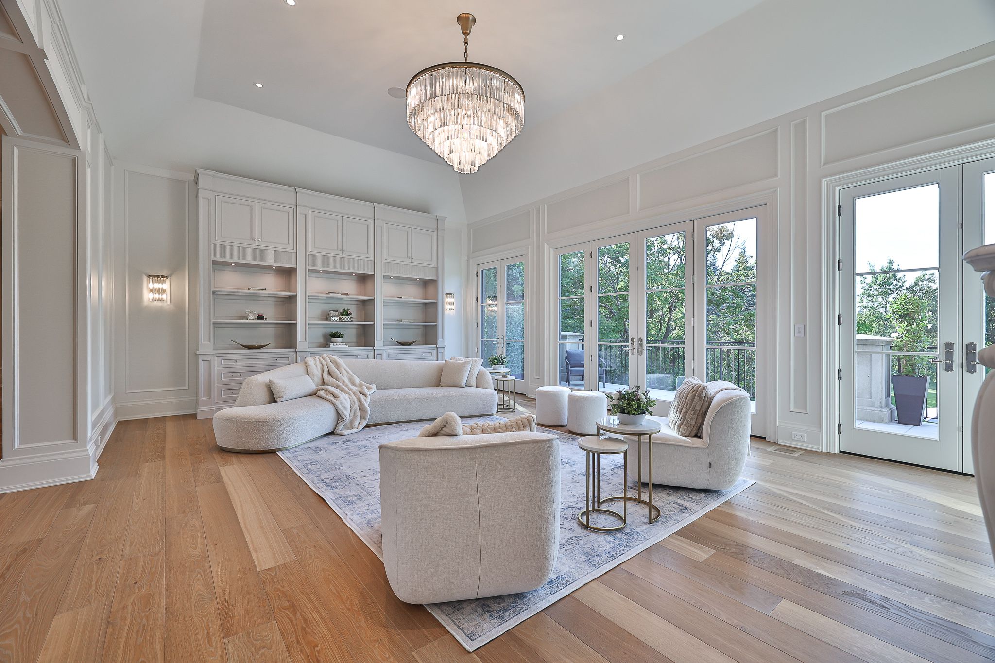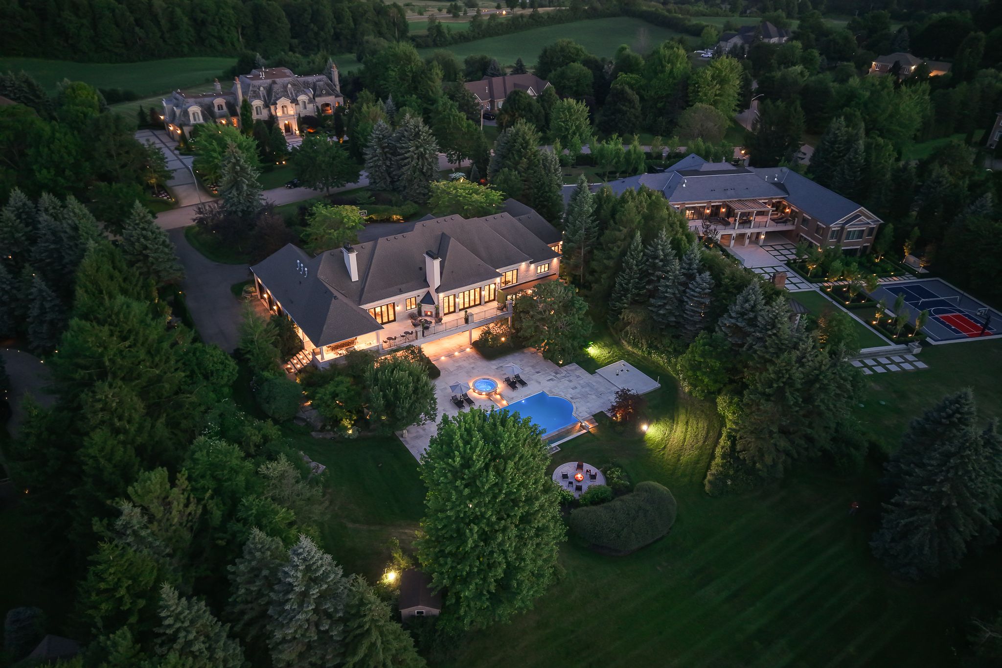 Welcome to an exceptional custom bungalow in prestigious fairfield estates, one of king township's most desirable estate communities. Known for its private walking trails, equestrian setting, and estate homes, the neighbourhood offers close proximity to top private schools, horse stables, and everyday amenities in king city. The property backs directly onto a horse trail, enhancing the lifestyle appeal. Built approximately two years ago, this sprawling residence reflects outstanding craftsmanship and thoughtful design throughout. The main level features 11-ft ceilings with crown moulding, hakwood herringbone flooring from amsterdam, italian antique mirrors, refined two-toned paint, and integrated lighting. A fully hard-wired lutron homeworks system controls lighting and blinds throughout the home. The chef's kitchen is a focal point, showcasing dramatic 15-ft ceilings, full-frame cabinetry, taj mahal quartzite countertops, sub-zero refrigeration, and a handcrafted french la cornue le château 165 dual-fuel range. Premium miele appliances and a walk-in pantry make the space ideal for both everyday living and entertaining. The home offers five bedrooms and eight bathrooms, with principal bedrooms featuring 13-ft ceilings and custom millwork. Spa-inspired bathrooms and a well-appointed main-floor laundry add comfort and functionality. The fully finished lower level mirrors the quality of the main floor and offers impressive ceiling height, featuring a spa with steam room, walk-out gym, bar and coffee station, private office with walk-out, and a dedicated nanny or in-law suite with private ensuite, laundry, and separate access. Set on 2. 2 landscaped acres, the exterior includes heated walkways, a snow-melted porch, outdoor kitchen, fireplaces, wood-burning oven, a gibsan infinity-edge pool and hot tub, a private playground, and a three-car garage designed to accommodate lift systems, allowing conversion to potentially six vehicles.