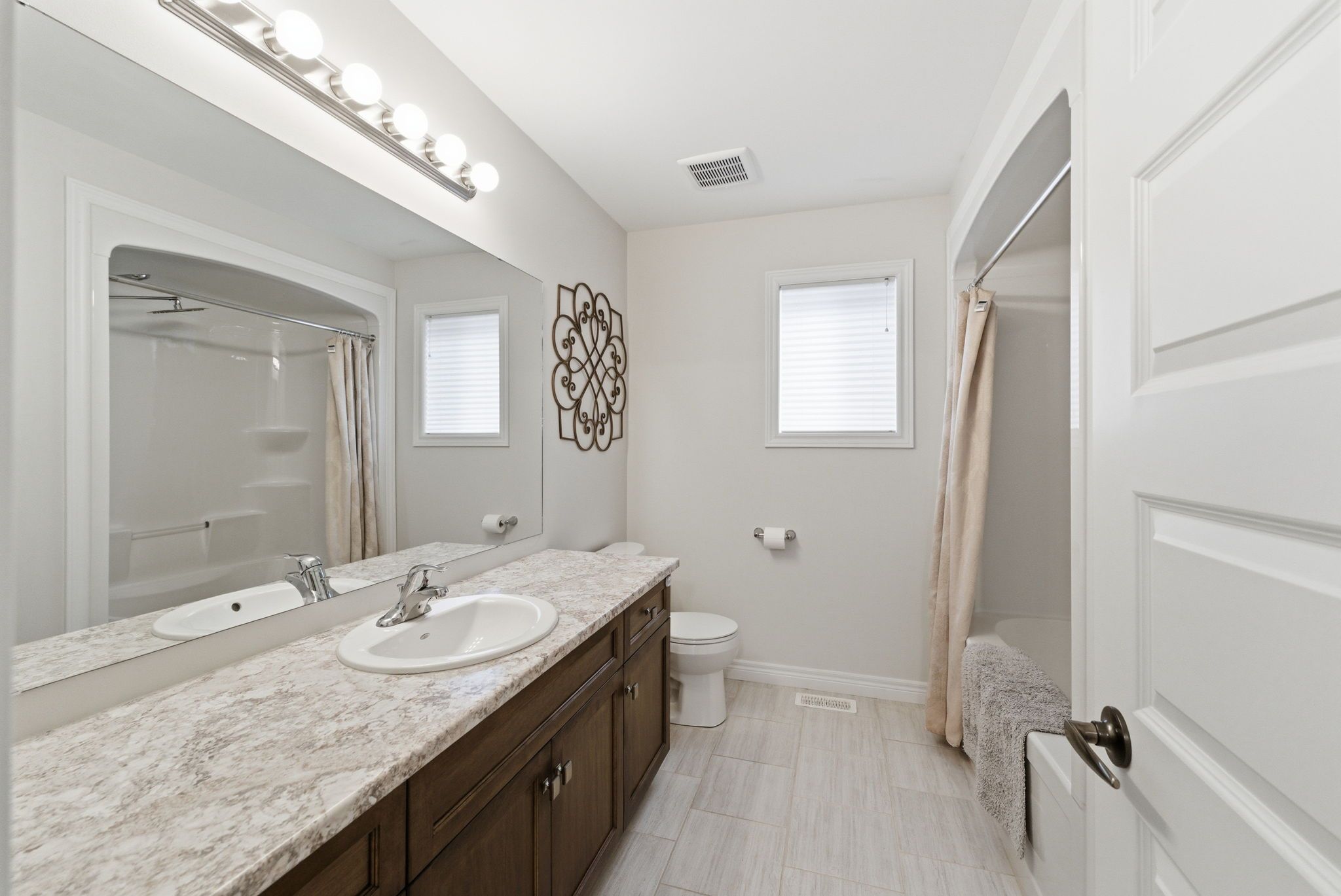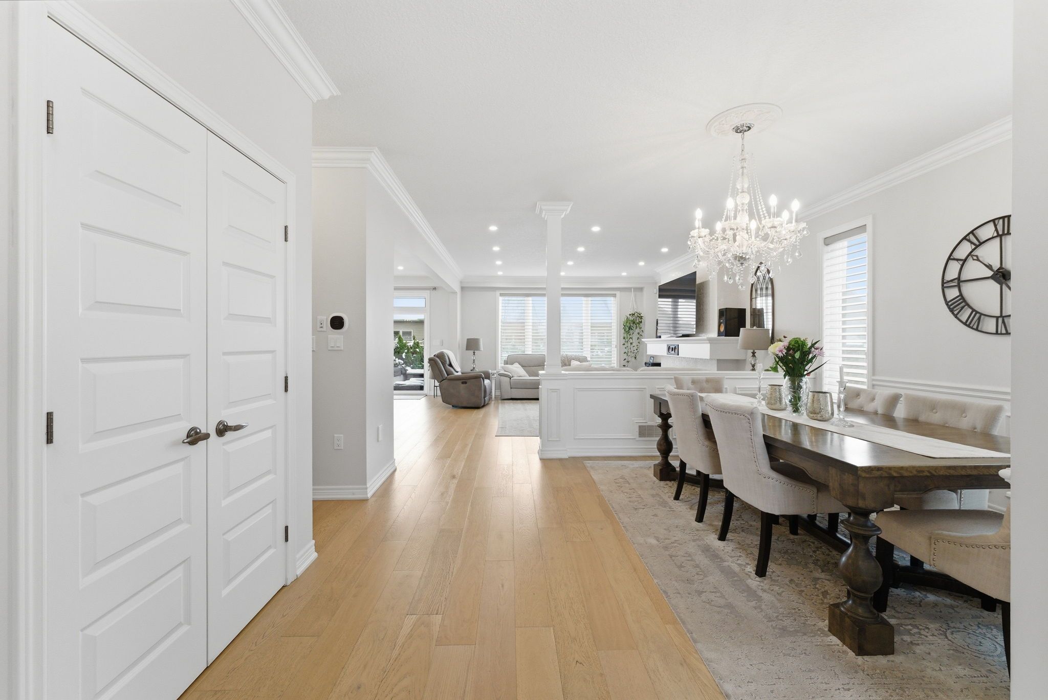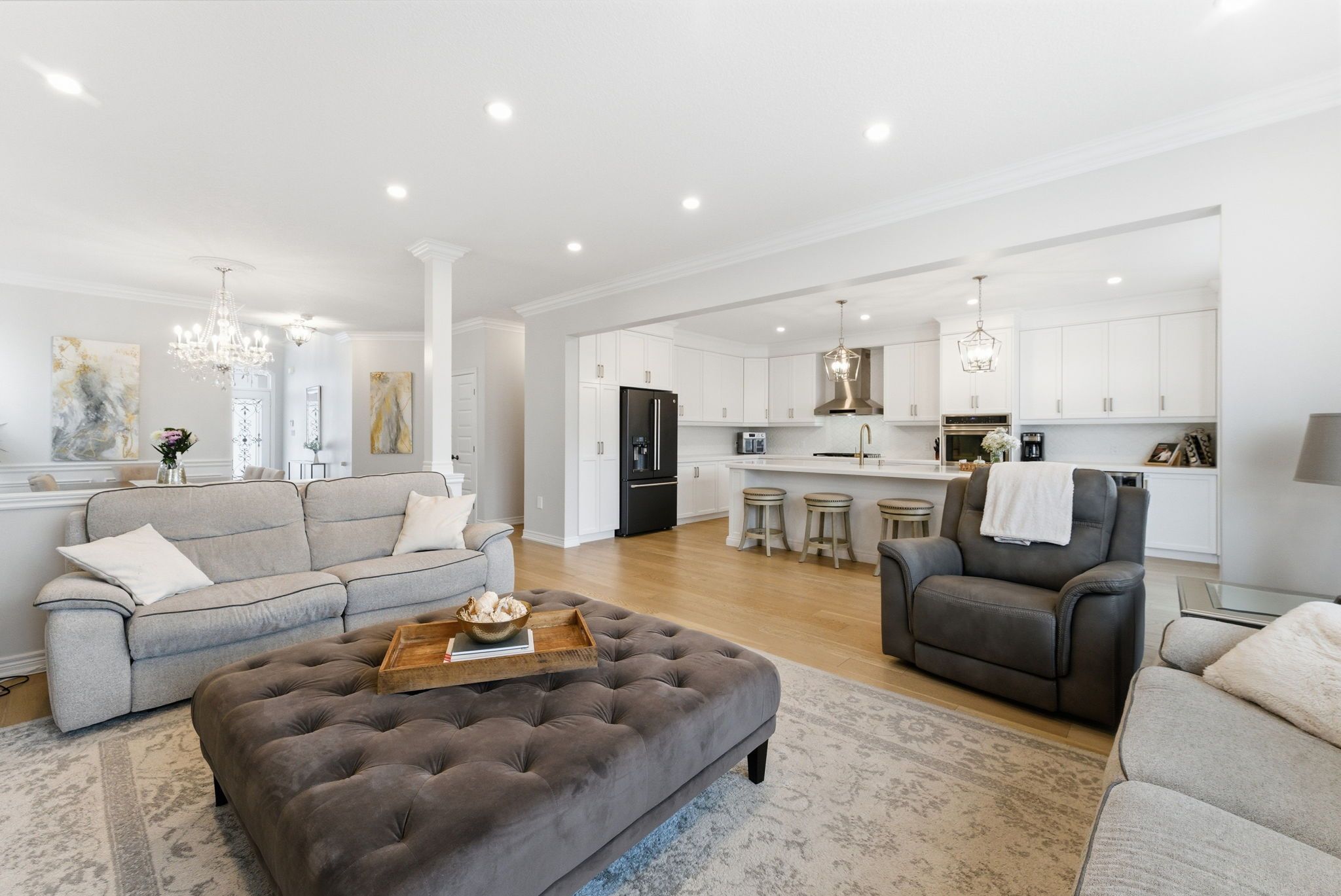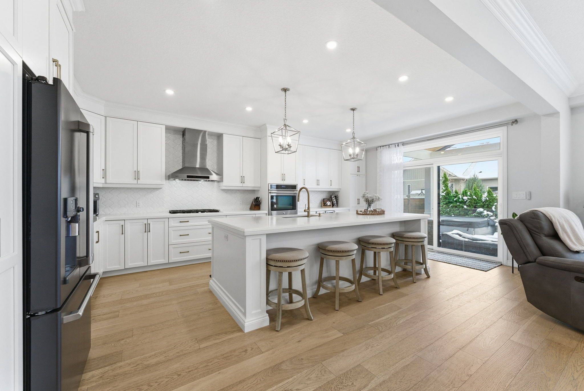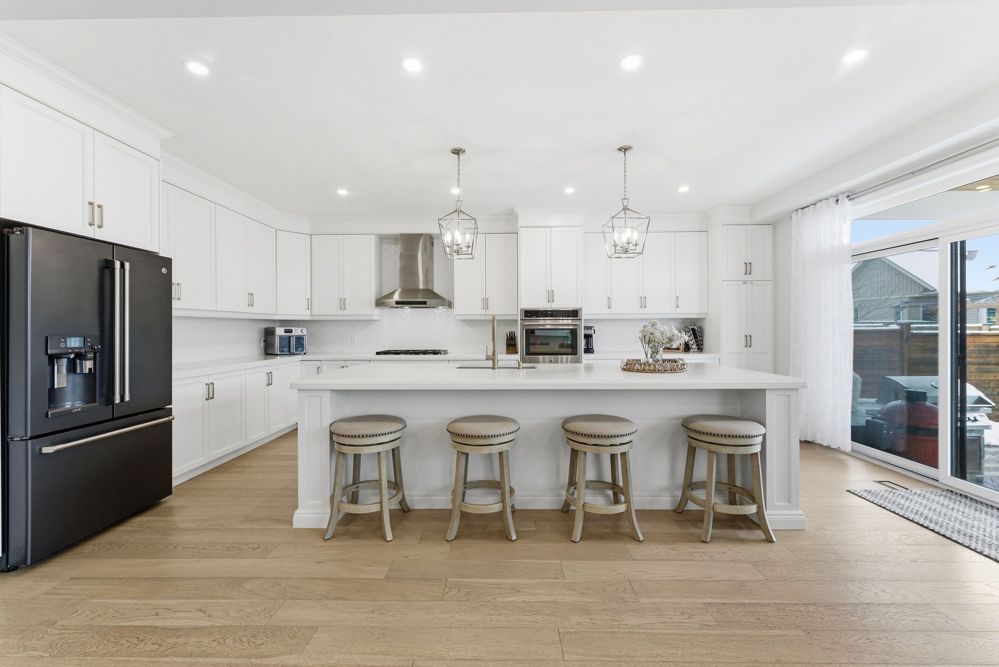 Welcome to 16 festival way, an executive residence featuring nearly 3,700 sq. Ft. Of luxuriously finished living space, set on a large, pool-sized, pie-shaped lot. Nestled in one of binbrook's most prestigious courts, this exceptional 4 bedroom, 4 bath home effortlessly blends timeless elegance with modern sophistication. Step into the impressive 2-storey foyer, where wainscoting and herringbone tile set the tone for refined design. The open-concept main floor showcases natural white oak hardwood and crown moulding throughout, creating an inviting yet upscale atmosphere. At the heart of the home lies the custom chef-inspired kitchen, featuring an expansive 10-foot island, oversized cabinetry, quartz countertops, and top-of-the-line ge café and jenn-air appliances. The adjoining living room centers around a custom tiled bio-ethanol fireplace, while the formal dining room, powder room, and laundry/mudroom complete this beautifully designed level. Beyond the 8-foot glass doors, your outdoor oasis awaits a custom stone kitchen with concrete countertops, built-in natural gas napoleon grill, and a spacious covered patio with cedar ceiling & pot lights ideal for year-round entertaining. A massive stone fireplace adds warmth and ambiance, making this the perfect retreat for cozy evenings. The upper level continues to feature white oak hardwood floors and crown moulding, leading to four generous sized bedrooms. The primary suite is a true sanctuary, featuring a spa-inspired 4-piece ensuite and a custom-built walk-in closet designed for ultimate organization and style. The fully finished basement provides comfort and versatility, complete with plush designer carpeting, an open-concept media room with a 130" high-end projector screen and built-in surround sound system, plus an oversized gym with mirror wall, a 3-piece bathroom, and ample storage. This remarkable home is rare, combines luxury, craftsmanship, and thoughtful design inside and out.