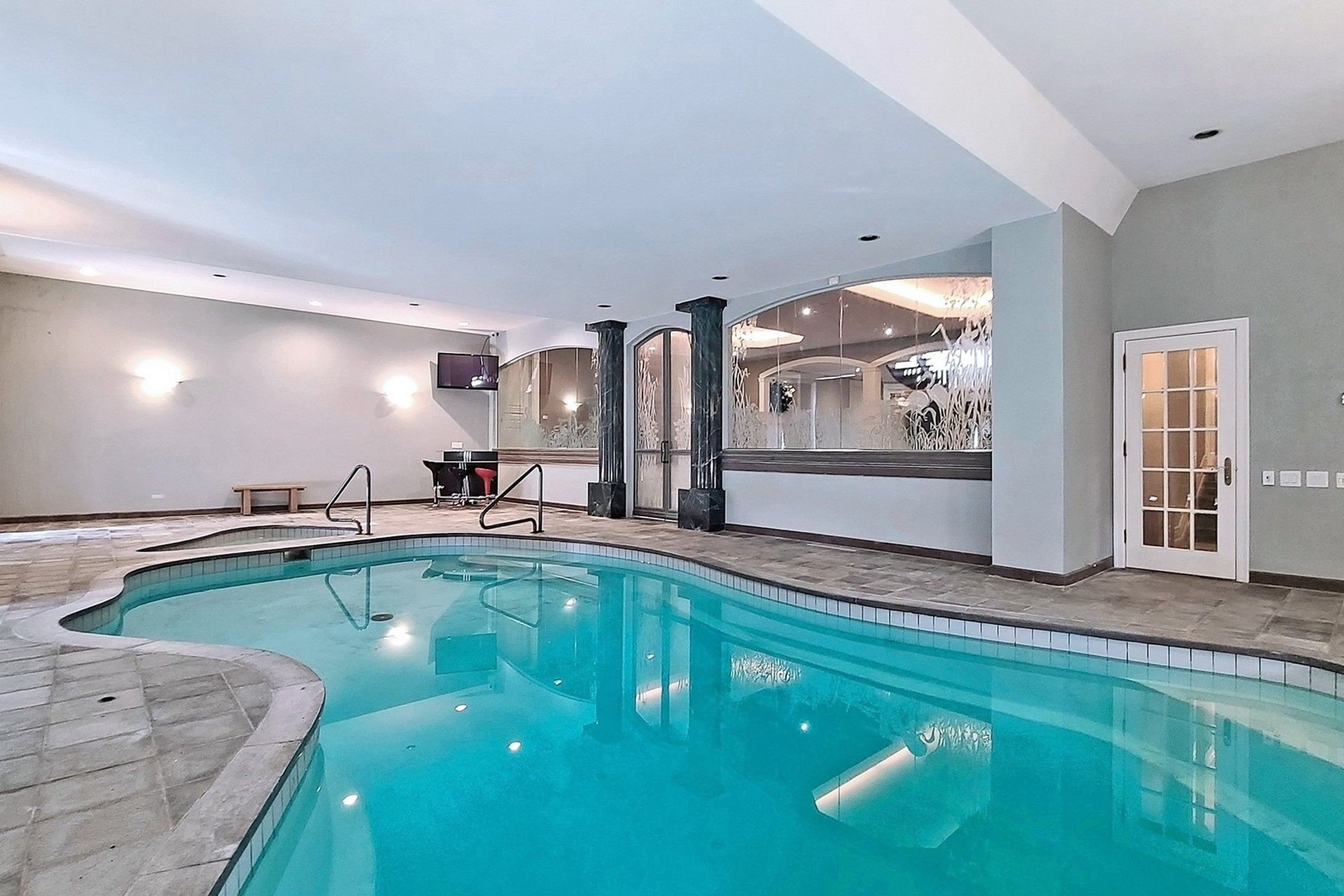 • Spacious stone raised bungalow with an indoor swimming pool.
