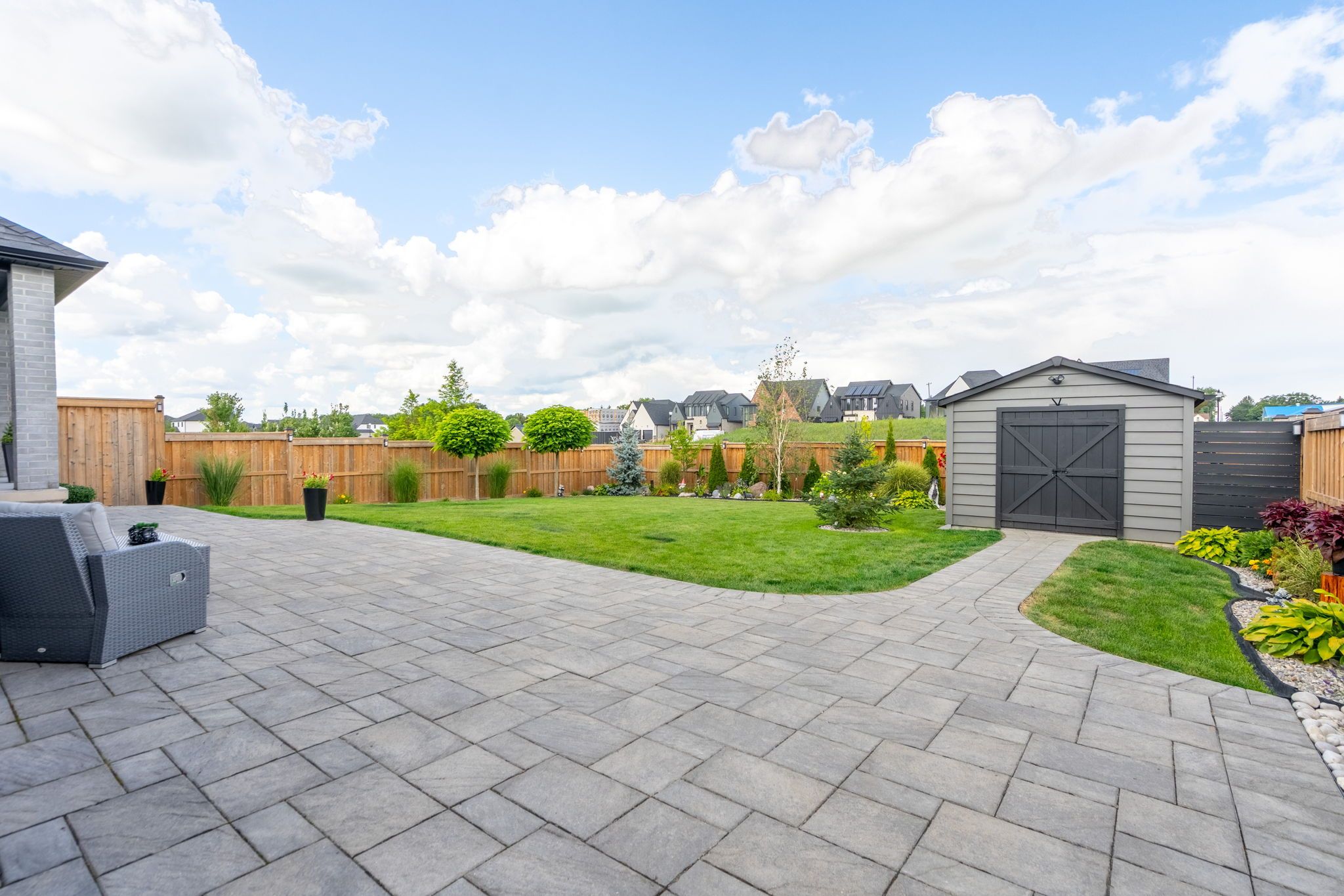 • Beautiful interlocking brick patio perfect for outdoor gatherings.