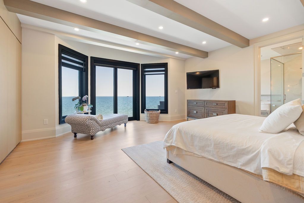 Exquisite waterfront estate with 174 ft of frontage on lake simcoe. Stunning panoramic sunset views! Masterfully renovated in 2023, this french country-style bungalow boasts over 6000 sq ft of finished living space, 5 bedrooms, 6 bathrooms & an oversized attached garage. Designer interior finishes such as custom oak swept staircase & oak beams, complete thermador appliance package, gorgeous amberwood exterior doors, marble kitchen countertops & backsplash, napa valley kitchen & bath cabinets plus white oak engineered hardwood flooring throughout! The exterior landscaping is expansive & thoughtful including a wrought iron security entry gate & outdoor led lighting. Complete privacy & year-round living.