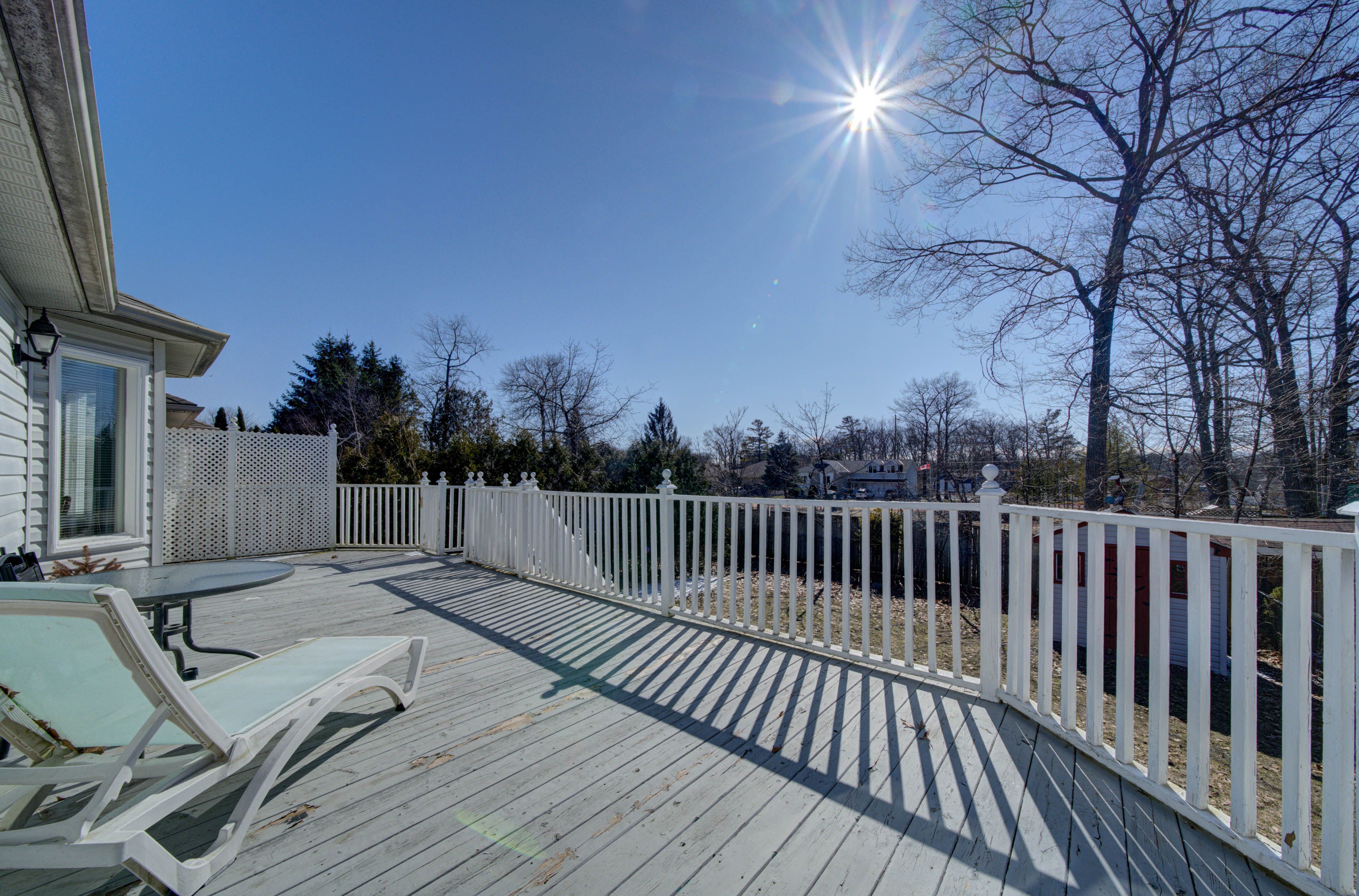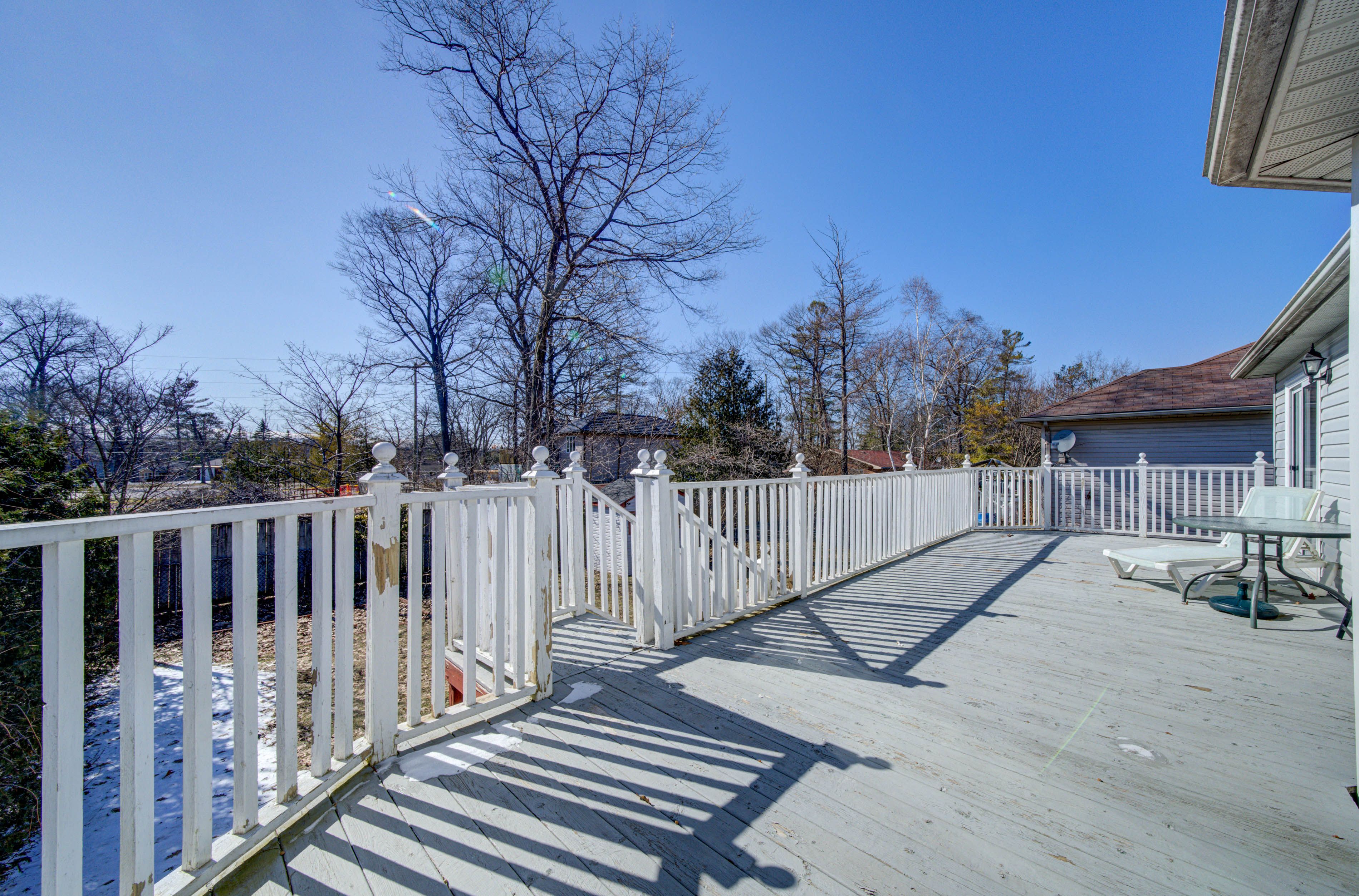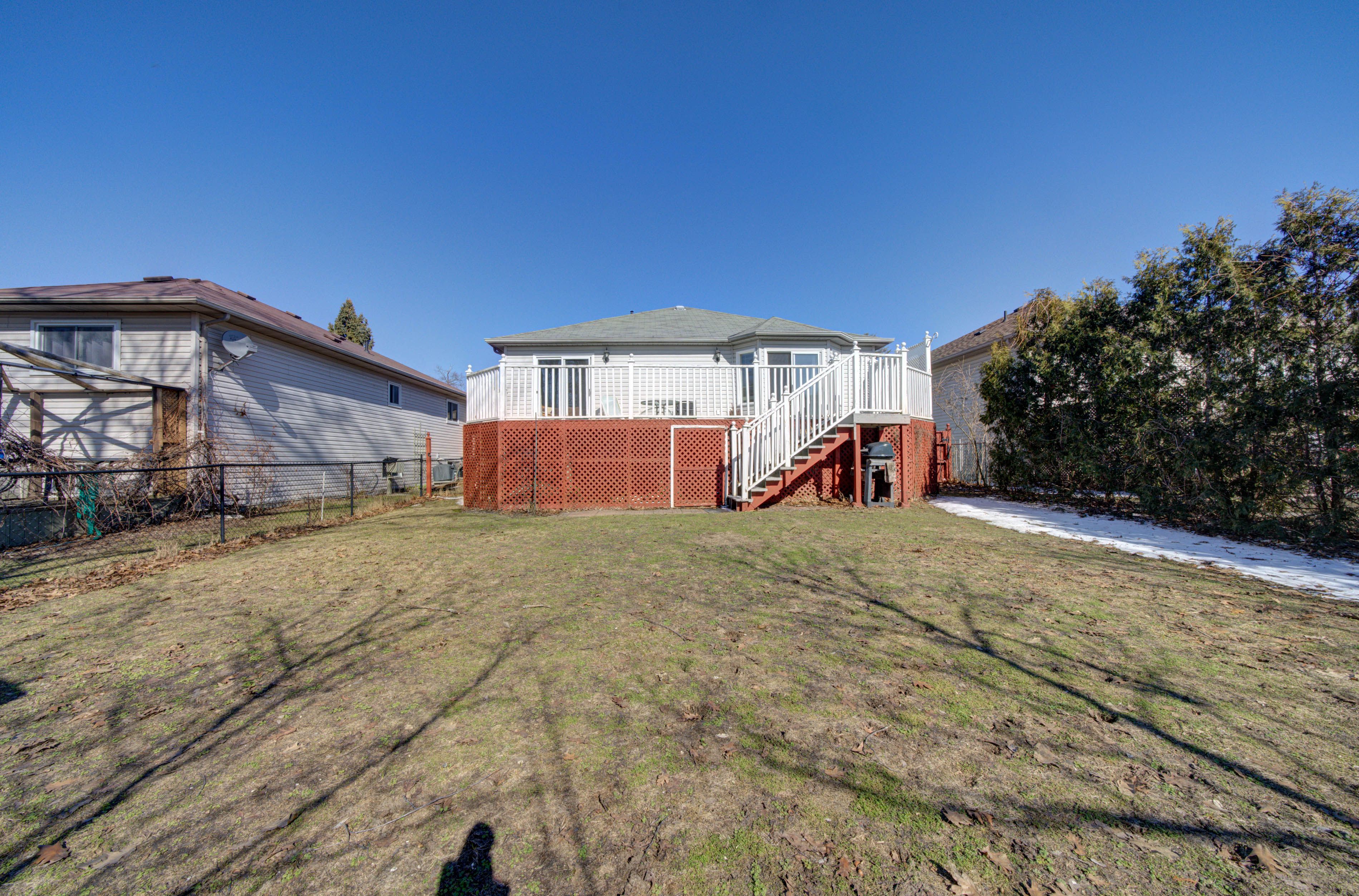• Large deck overlooks a fenced yard, great for entertaining and play.