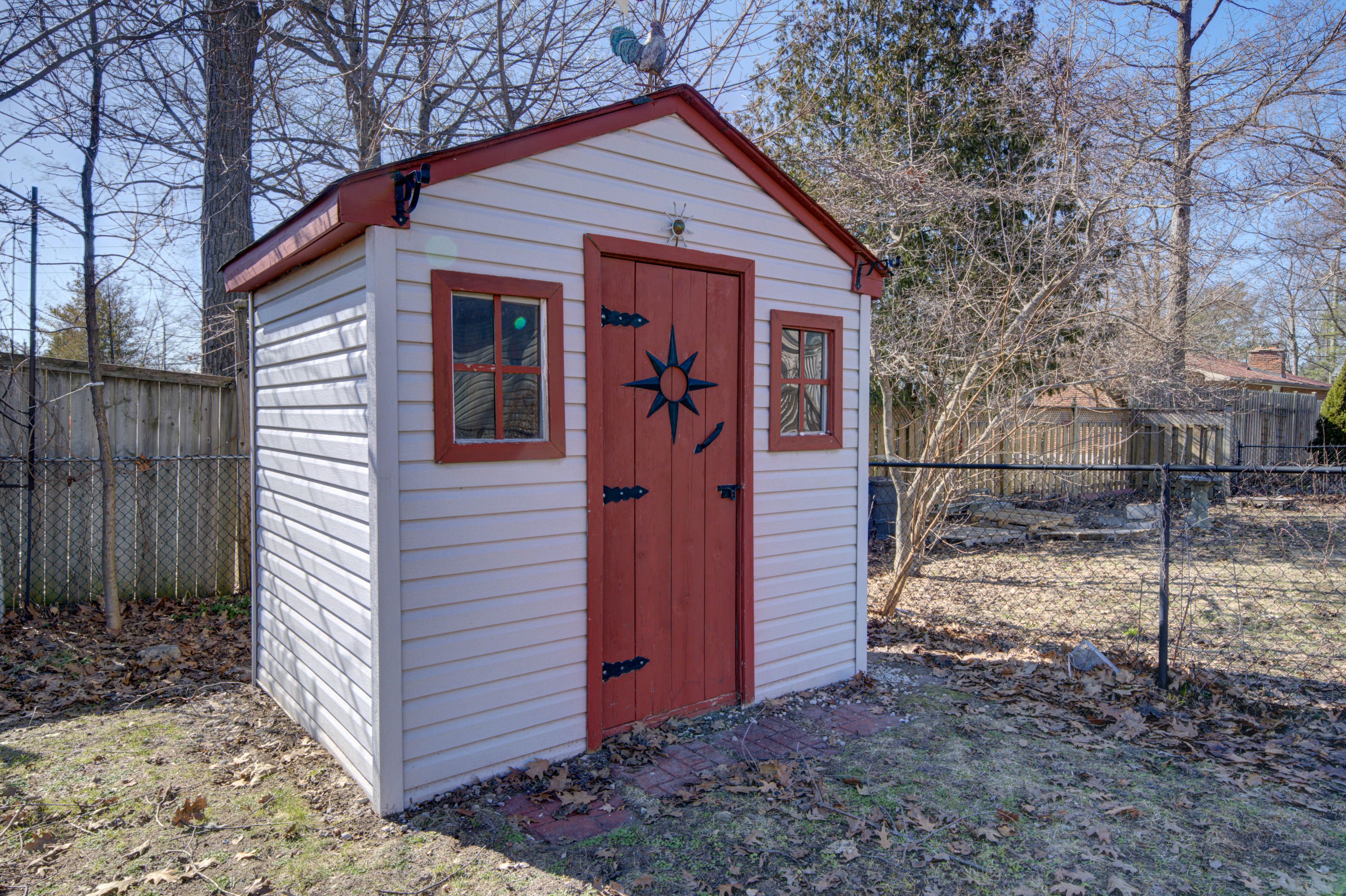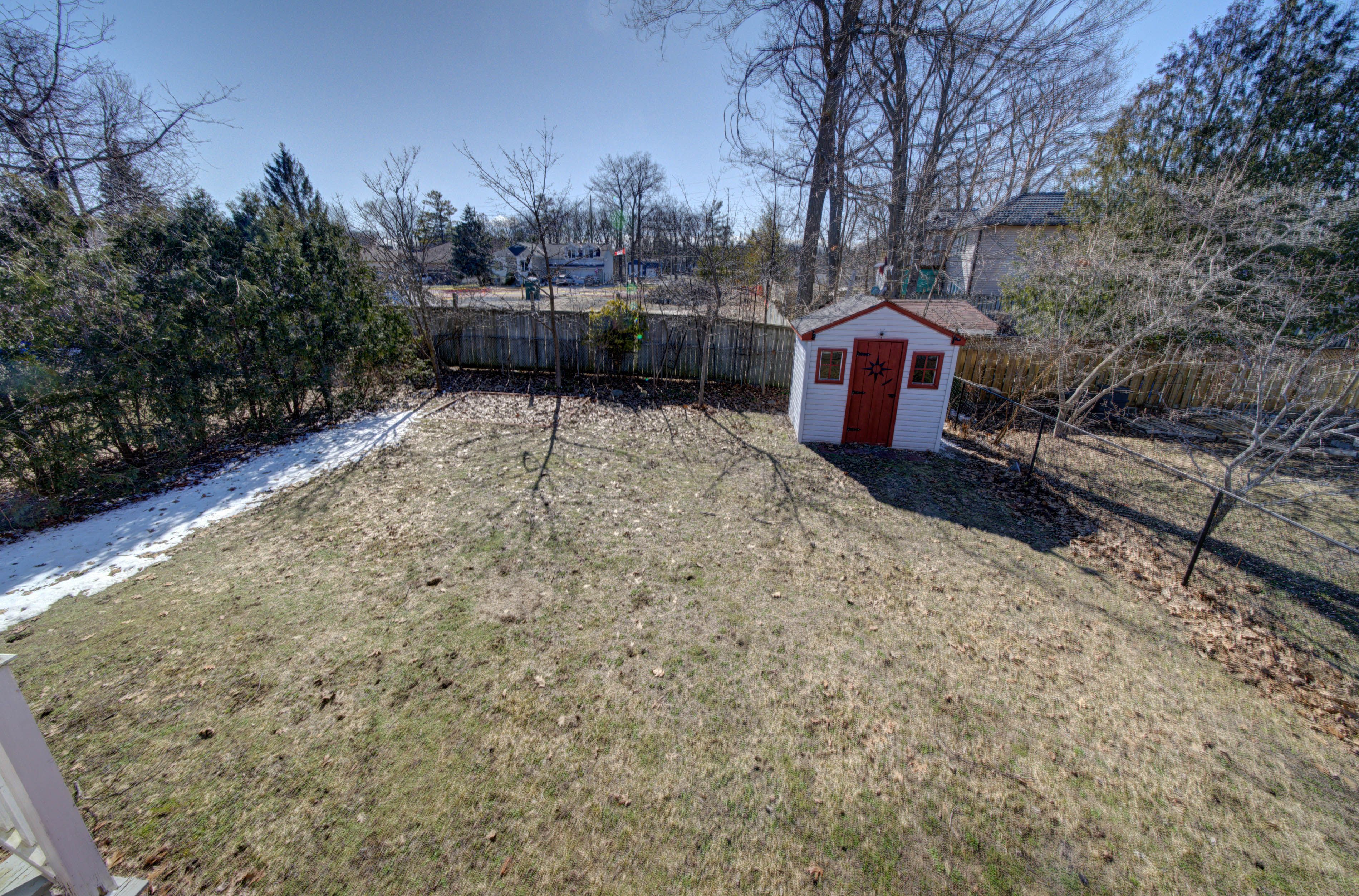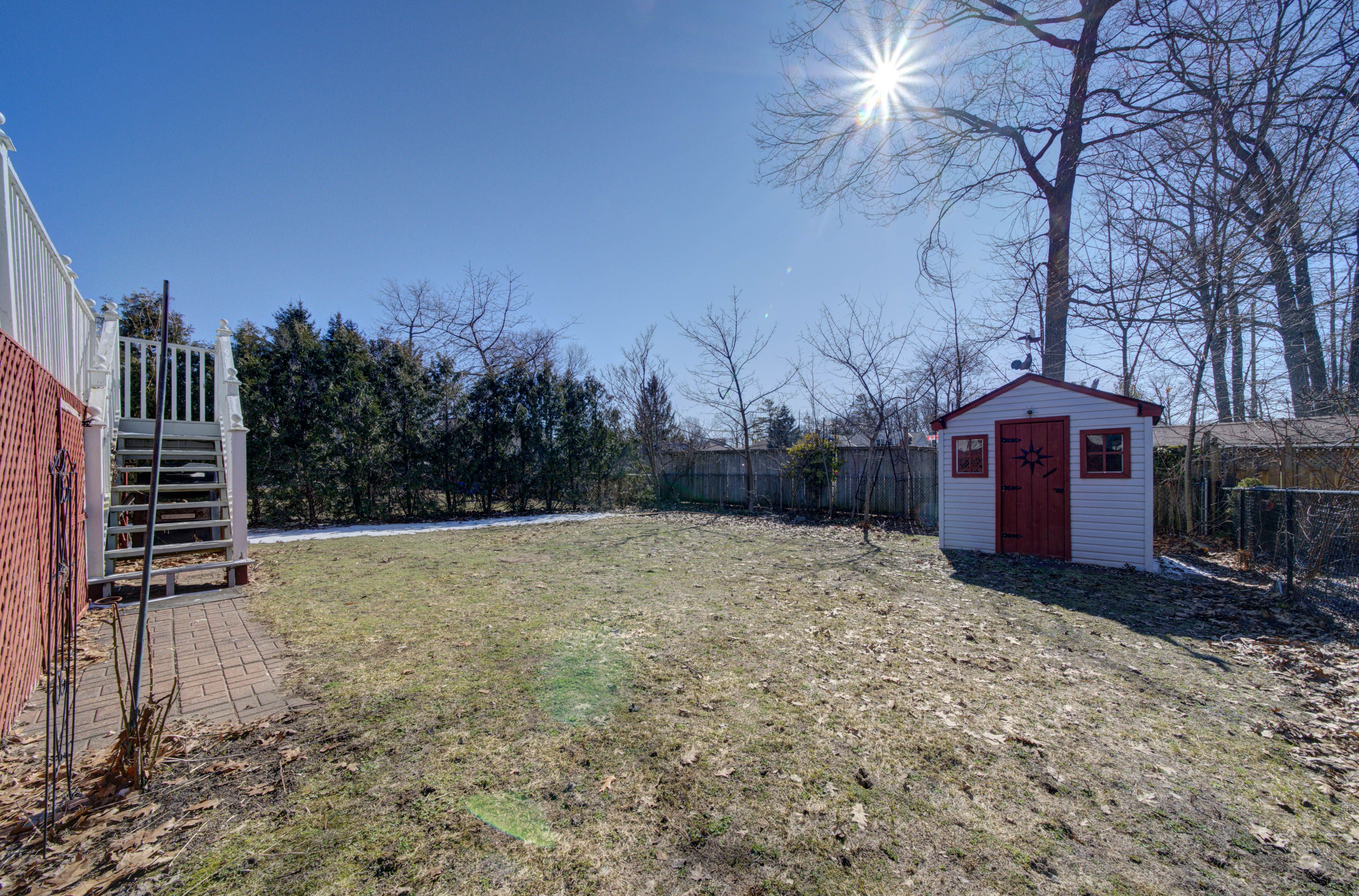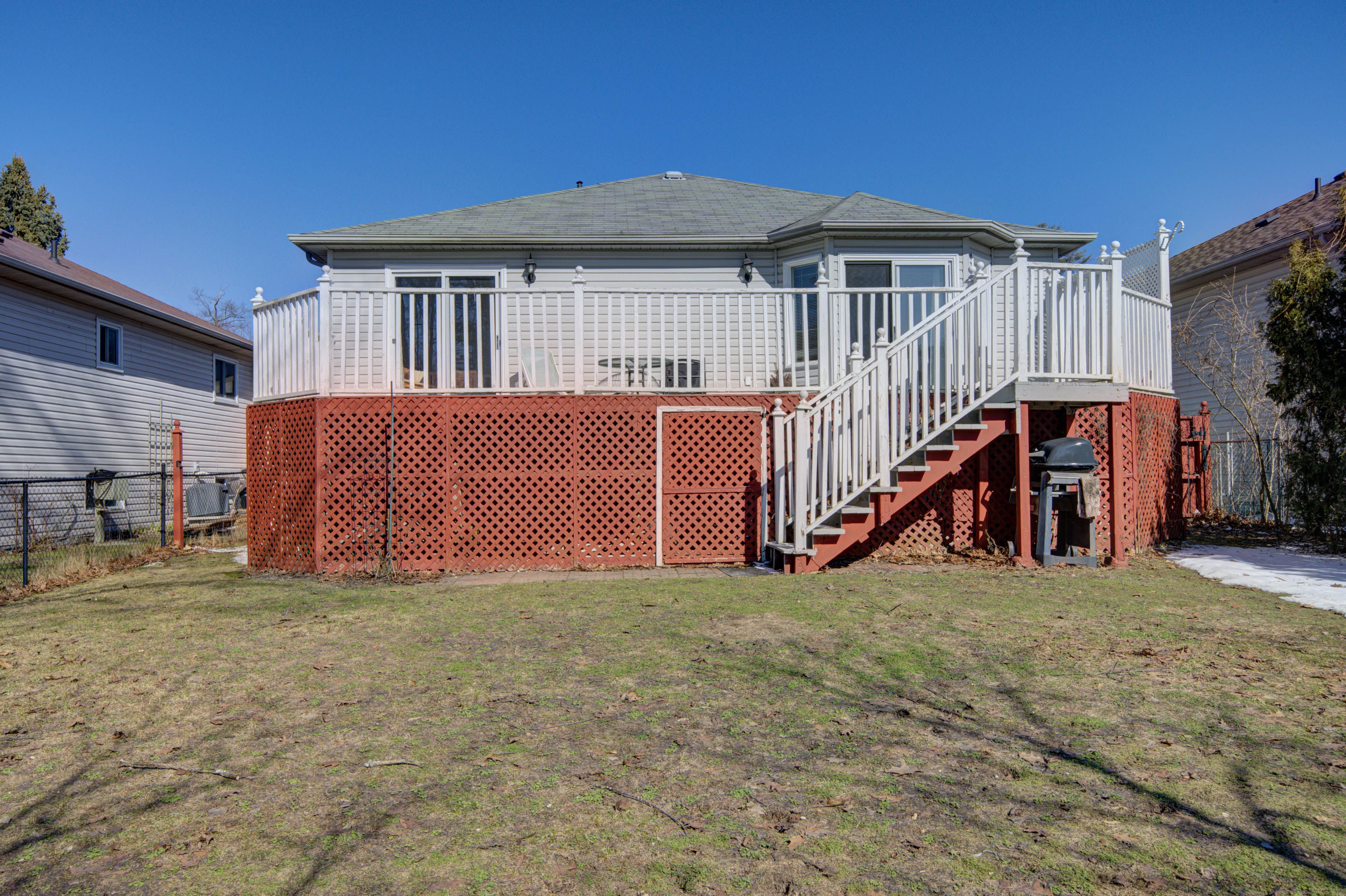 • Large deck overlooks a fenced yard, great for entertaining and play.