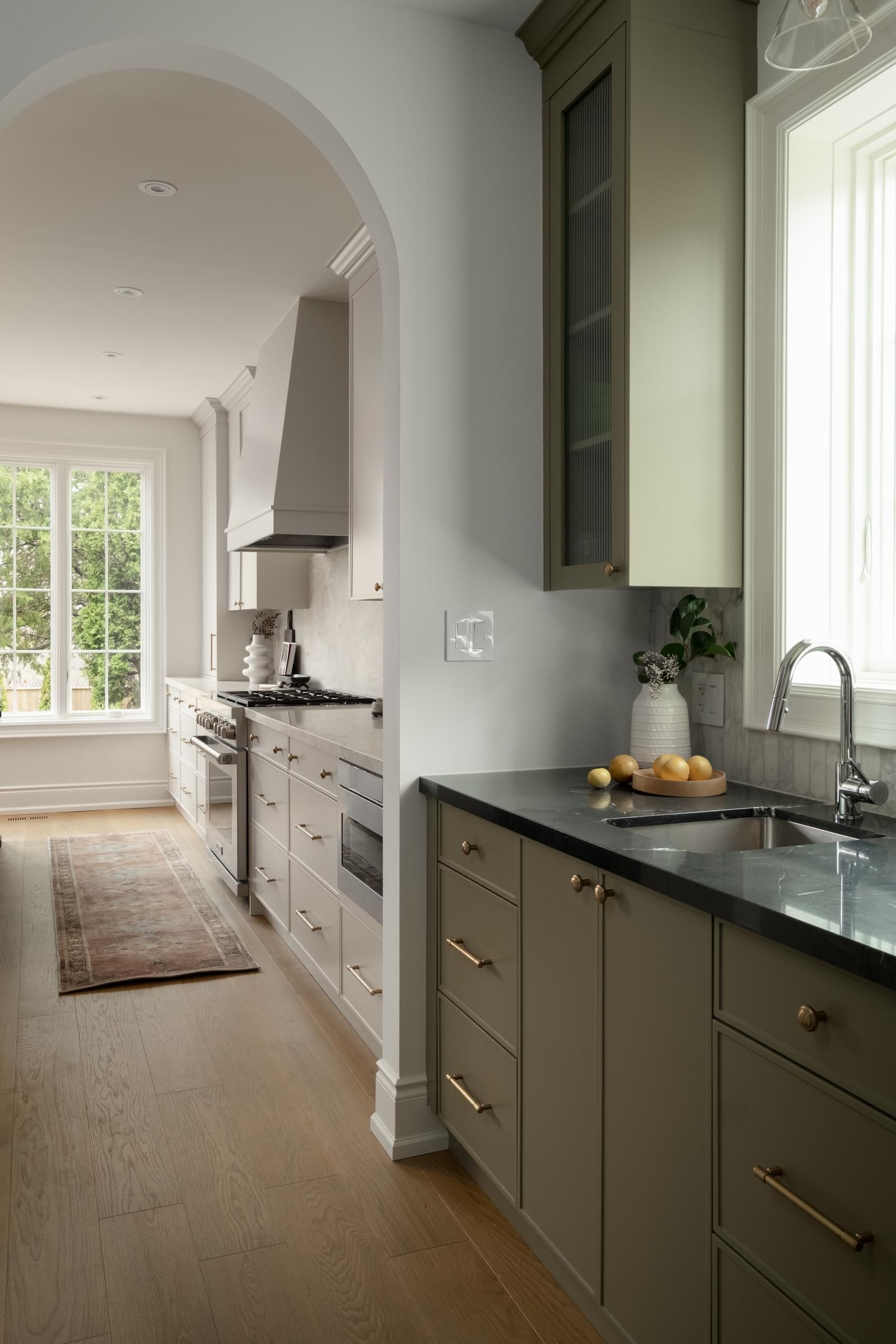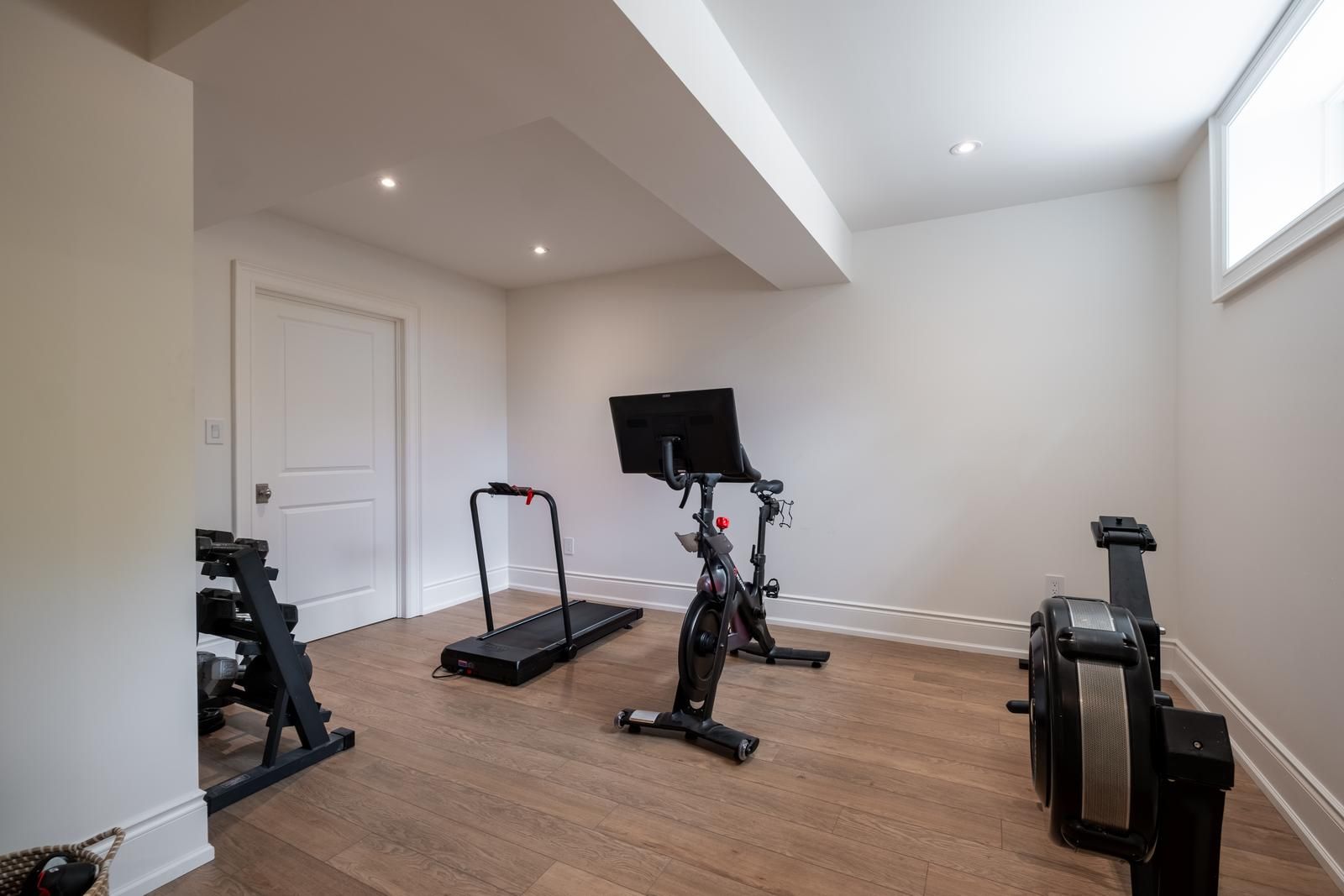 Welcome to 16 glenshaw crescent, nestled in the serene enclave of parkview hills. This stunning custom-built home sits on a rare 40' x 147' ravine-backed lot along a peaceful, tree-lined street. Offering over 5,000 sq ft of thoughtfully designed living space, the home showcases premium materials and exceptional craftsmanship throughout. A timeless red brick façade leads to a grand foyer featuring a striking black-and-white marble checkerboard floor, while extensive custom white oak millwork, and white oak hardwood floors throughout, adds warmth and sophistication. Blending classic elegance with modern comfort, this home delivers beautifully curated transitional finishes. The sun-filled main floor is designed for both everyday living and entertaining, featuring an office with built-in white oak shelving, a powder room, and a formal dining room with elegant wainscoting. The spacious living room, complete with custom built-ins and a gas fireplace, flows seamlessly into the chef's kitchen, which boasts a large island, premium appliances, and an enviable butler's pantry with arched pass-throughs connecting to the dining room. Upstairs, you'll find four generously sized bedrooms, each with its own ensuite and custom closets, along with a convenient second-floor laundry room. The serene primary suite overlooks the backyard and ravine, and features a luxurious five-piece ensuite with a separate vanity and a spacious walk-in closet. The lower level, complete with heated floors throughout, offers incredible versatility with an expansive recreation room, gym, large bedroom, two washrooms, and a rough-in for a kitchen or additional laundry-ideal for a nanny, in-law, or guest suite. Outside, the professionally landscaped grounds include a beautiful interlock stone driveway and rear patio, while still providing ample green space to enjoy the natural ravine setting. This truly beautiful and meticulously crafted home awaits you!