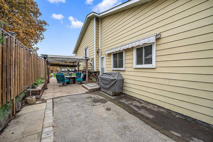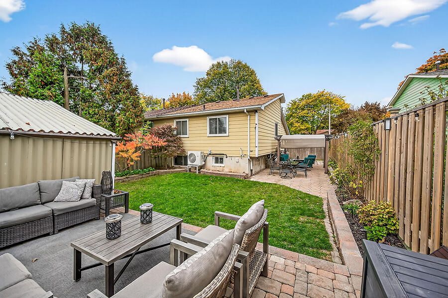 Welcome to this well-maintained 3-level backsplit semi located in a family-friendly neighbourhood close to schools, parks, and public transit. Proudly owned by the same family since 1986. Main level feat hardwood flooring in the living and dining combo, while the eat-in kitchen offers ceramic tile flooring, granite countertops, and walkout access to the fenced backyard and patio - perfect for outdoor entertaining. Upstairs you'll find three bedrooms and a full bathroom. The lower level showcases new laminate flooring and provides flexible space for a fourth bedroom or family room, plus den, along with a laundry/workshop area and access to a 3-ft crawl space beneath the main living areas for additional storage. The side yard boasts an interlock patio and potential for extra parking (fence opens wide enough for vehicle access), plus a storage shed and second rear patio area in the yard. Bonus updates: shingles (2021) and heat pump (2024- this is a wonderful opportunity in a neighbourhood filled with long-time owners.