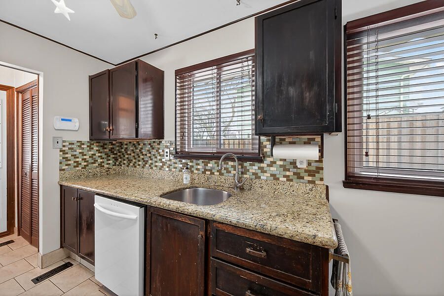 • Eat-in kitchen with granite countertops and access to fenced backyard.