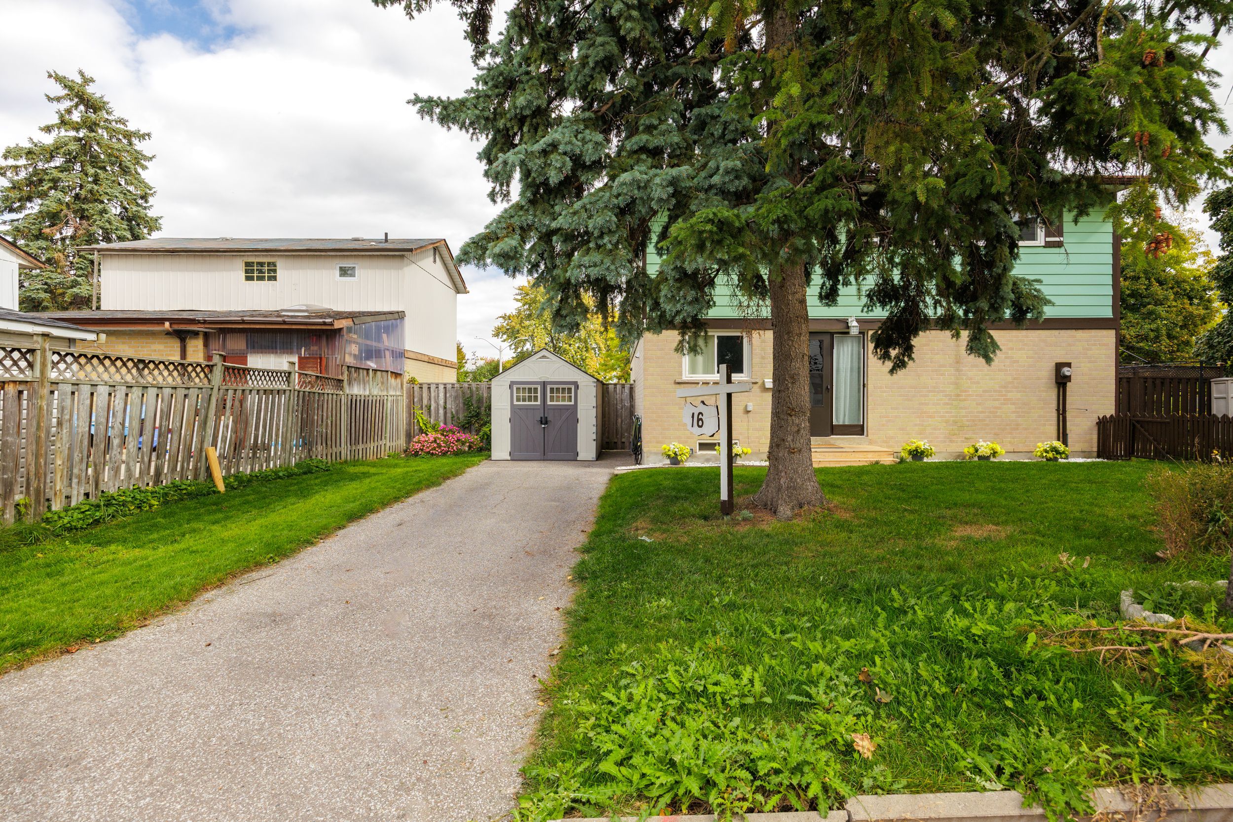 Welcome to 16 grand river court! This lovely family home is a great choice for first time home buyers, growing families. A front-facing semi that presents like a single home, with both a front side yard and a front yard separated by the driveway, and a large private back yard for leisure or entertaining. This is a well cared for and maintained home and property, with a fenced backyard, a sheltered perennial garden and a cozy seating area under mature trees, that backs on to goldcrest park. It is well located at the back of the court, on a quiet street, in the sought after g-section neighbourhood, minutes from chinguacousy park (events areas, greenhouse, flower gardens, skating area, a ski hill - yes, where people ski and snow tube, a petting zoo, curling rink and library). Centrally located access to brampton civic hospital, bramalea city centre, toronto university medical school, brampton bus terminal, medical centres, lots of shopping and restaurants, plenty of parks for walking and recreation, great schools & so much. More. Easy access to the 410 and the 407, bramalea go station, and brampton transit. Includes: 5 appliances - washer, stove: 2024; dishwasher: 2023; dryer, fridge: 2022. Portable a/c units (5); vinyl/laminate flooring throughout: 2022; eavestroughs, soffits & fascia: 2019; patio shade tent with mosquito netting & drapes: 2024; custom fitted tub surround in main bath; basement bath renovated: 2022. New water meter: 2025; new baseboard heaters throughout (1-3 years), new smoke alarms: 2025. Neutral colours painted throughout: 2025. Move-in condition. Come take a look!
