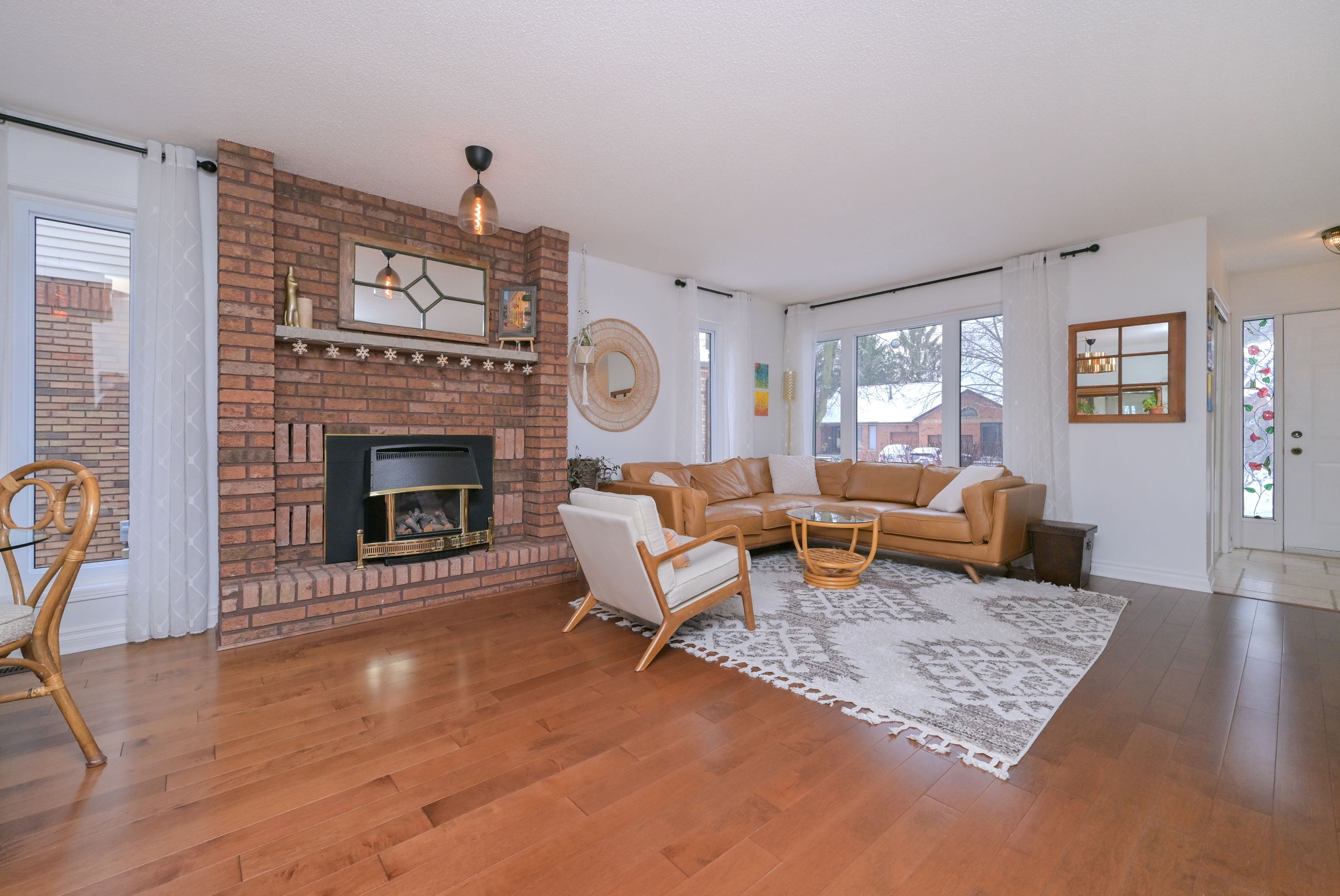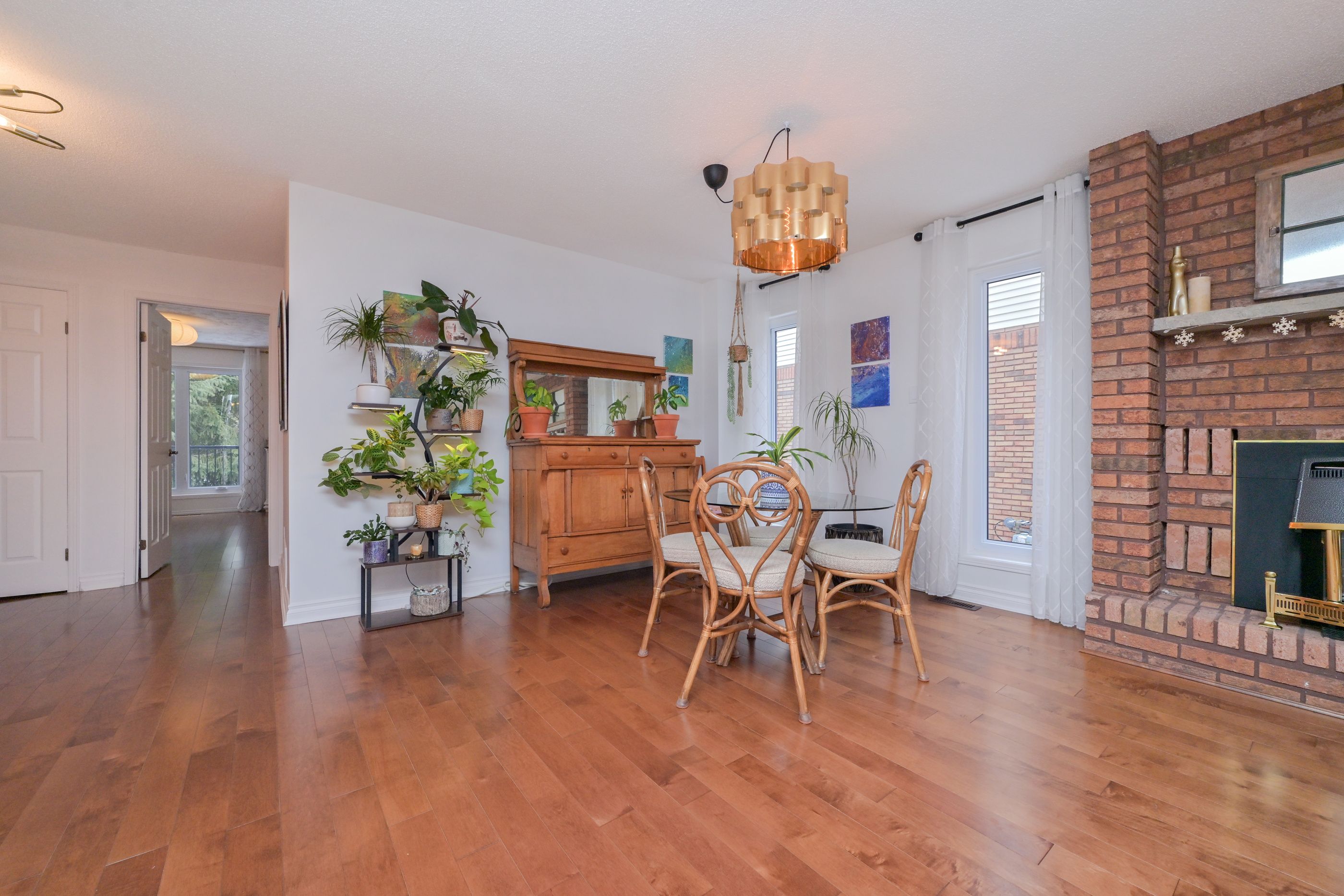 • Open-concept living and dining area featuring a cozy gas fireplace.