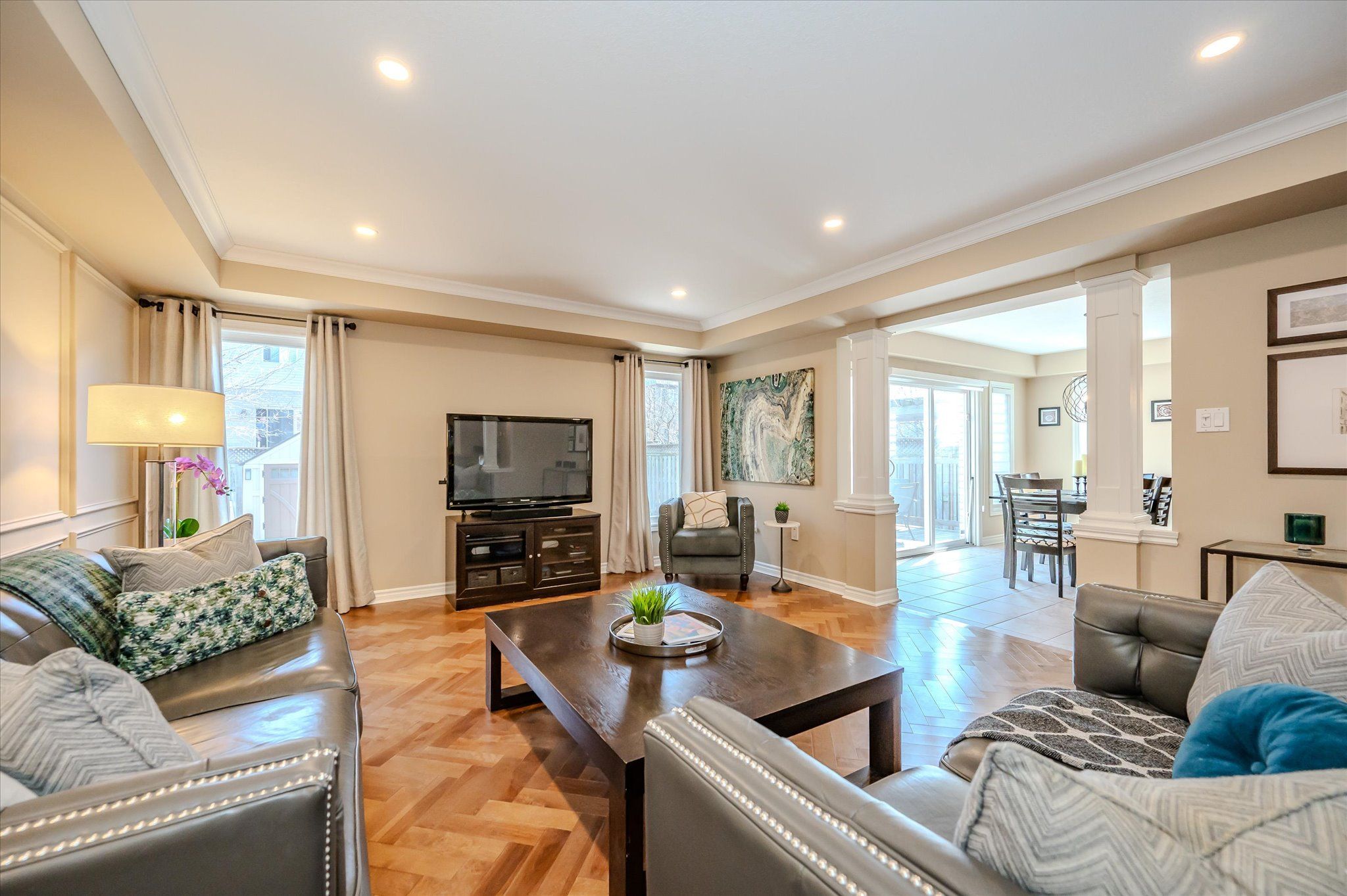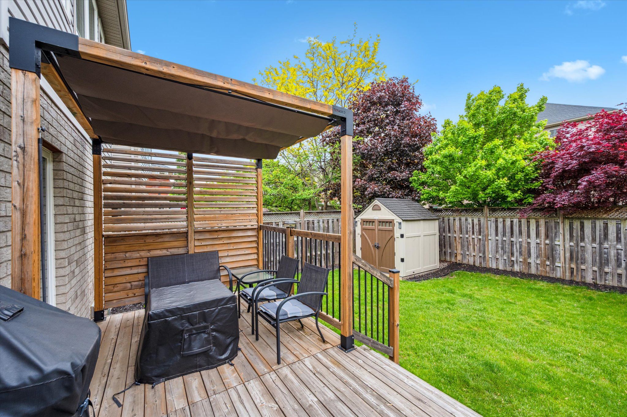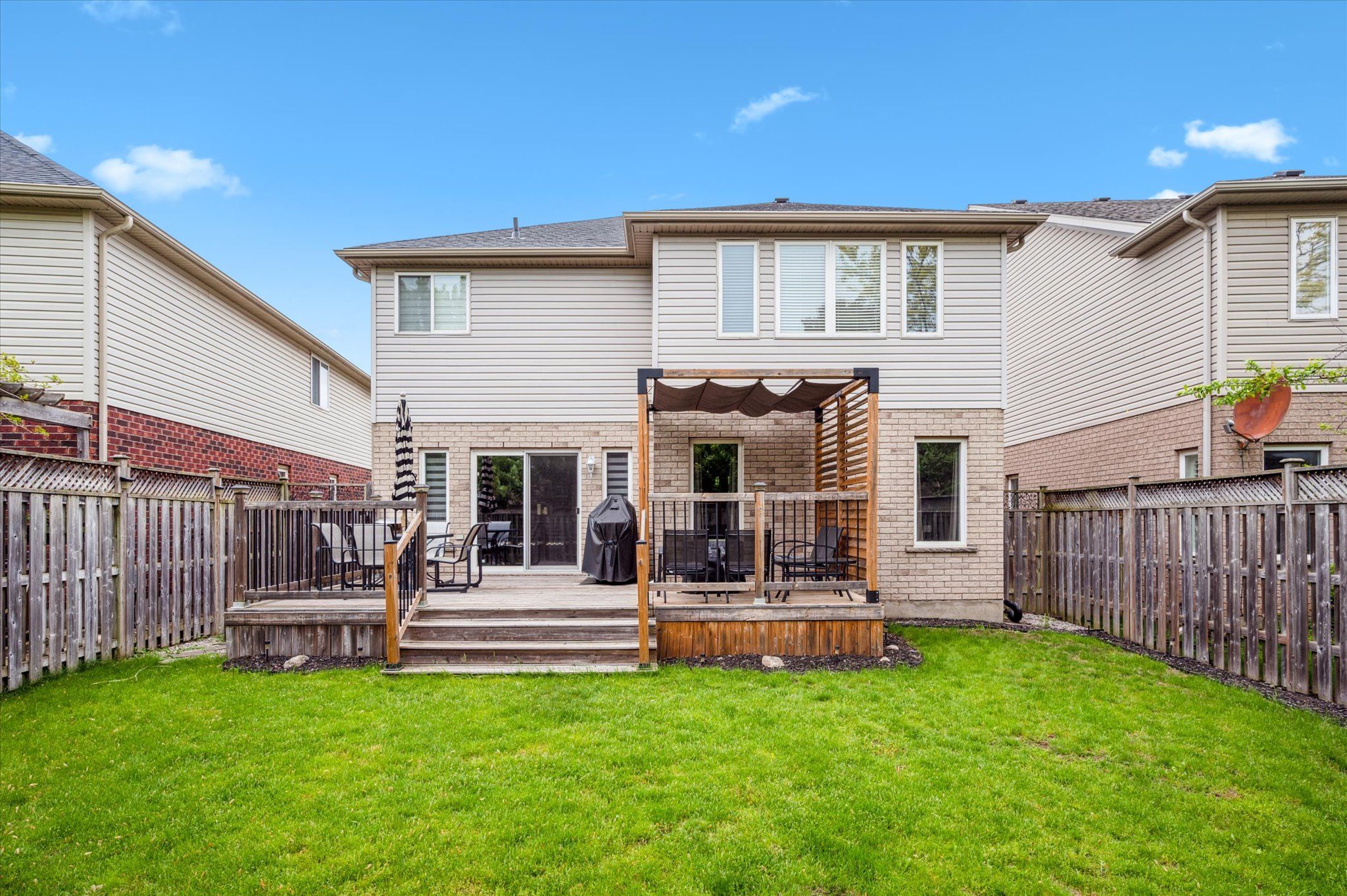 Welcome to 16 hall avenue, where style meets function in guelph's south end! Perfectly designed for the modern family, this beautifully finished home offers both elegance and practicality. A classic brick façade and double door entry open to a bright foyer with soaring two-storey ceilings. Host with ease in the formal dining room, featuring a tray ceiling and statement chandelier. The space flows into a spacious great room with herringbone-patterned hardwood floors and custom millwork - one of many upscale details throughout. At the heart of the home is a gourmet eat-in kitchen with custom cabinetry, caesarstone quartz counters, under cabinet lighting, and a glass tile backsplash. The central island and bright breakfast area open to the large rear deck ideal for indoor-outdoor living. A practical mudroom with garage access, built-ins, and a utility sink keeps busy households organized. Upstairs, the primary suite is a relaxing retreat with backyard views, a walk-in closet with built-ins, and a spa-like ensuite with a soaker tub, walk-in shower, and gold fixtures. Three additional bedrooms share a 5-piece bathroom with double vanity, and a second-floor laundry room adds convenience. The fully finished basement offers luxury vinyl plank flooring, pot lights, and big windows for natural light. Enjoy the sleek fireplace in the rec room, and host movie nights in the adjacent theatre room (or optional fifth bedroom). A modern 3-piece bath and bonus space for an office, gym, or playroom complete the level. The fully fenced backyard includes a custom trellis and generous deck perfect for dining, play, or gardening. Walk to schools, parks, and amenities, with easy access to commuter routes. 16 hall avenue is the full package!