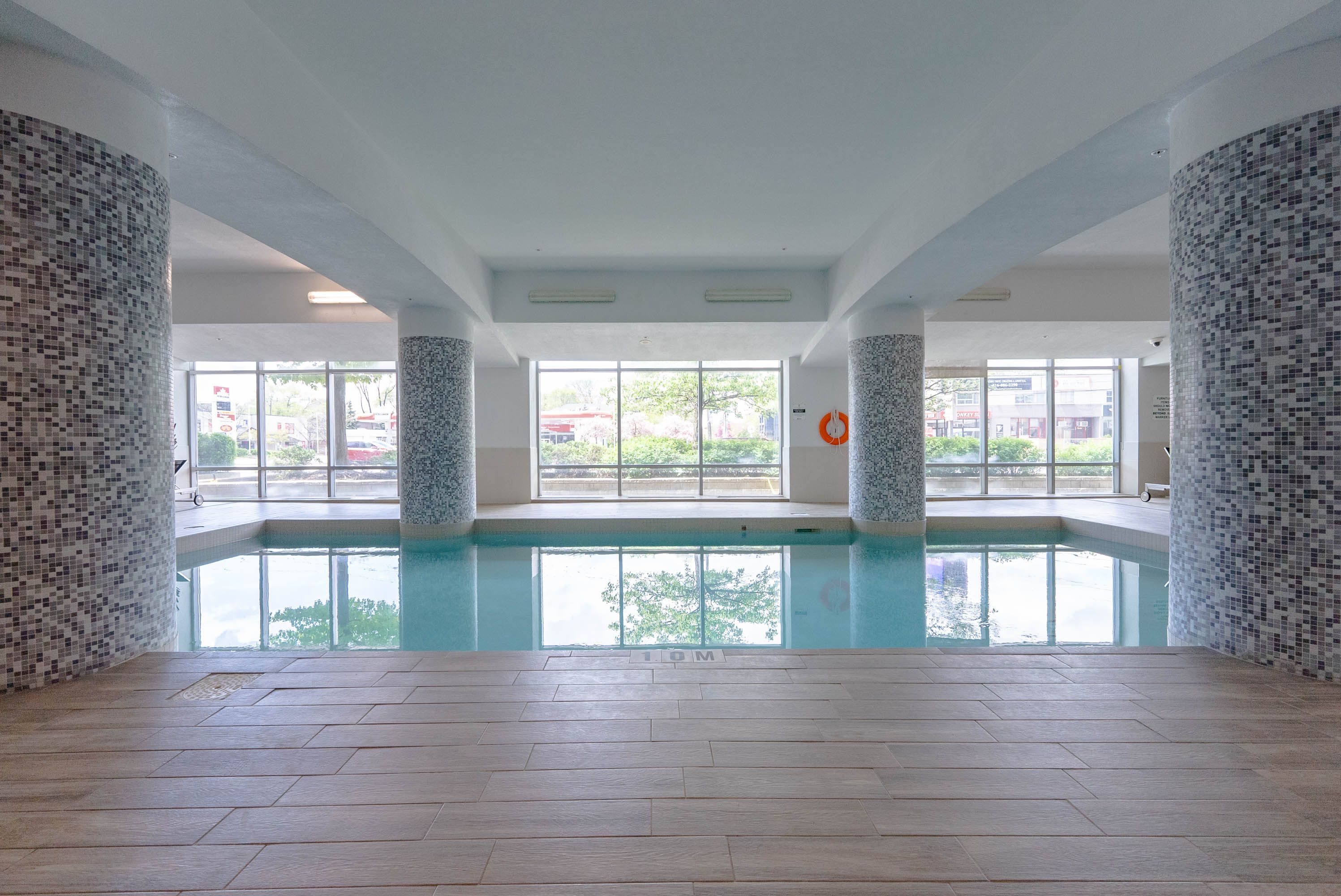 • Great amenities include an indoor pool, gym, and 24-hour concierge.