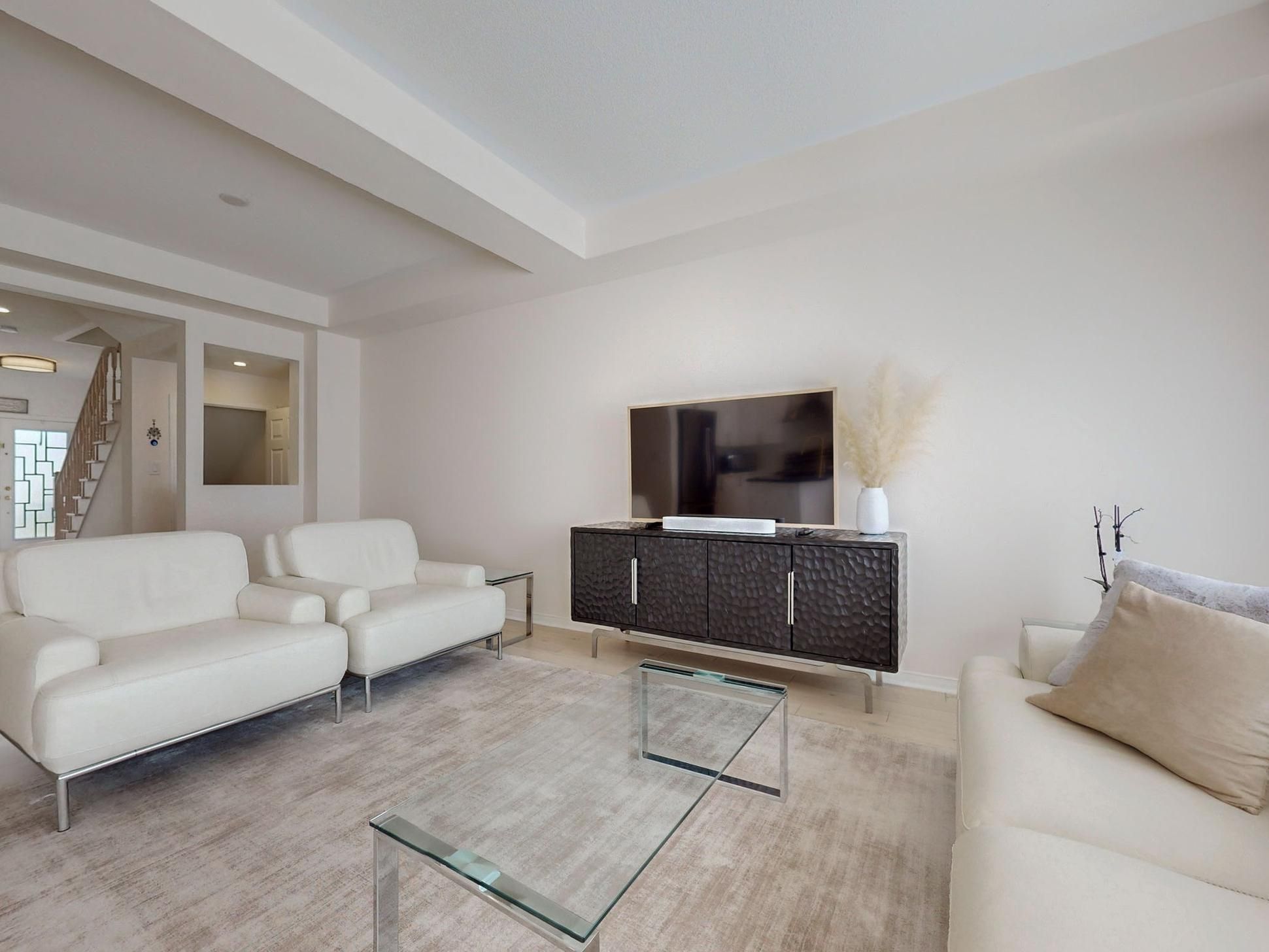 Rarely offered bright & spacious 5 bedroom freehold townhouse in the high- demand area of richmond green with a functional open -concept layout. Partially furnished (includes white italian leather sofa set, coffee tables, dining table & 4 chairs, media room brown sectional sofa ). Gorgeous bright main level with hardwood & porcelain tile floors. Direct entry from garage, upgraded modern eat-in kitchen with quartz counters & tall cabinets. This turn-key & move-in ready home offers over 3000 sqft living space with finished walk-out basement fromthe builder. 9 ft ceiling on main and 2nd floor. 2nd floor grand media room. 3rd floor primary bedroom ensuite with private walk-out balcony & 5-piece bath. Close to excellent schools, hwy 404, coveted richmond green sports & community centre/park, big box stores such as costco, home depot, pet smart, banks, restaurants and much more. Extras: kitchenaid s/s fridge, kitchenaid stove, kitchenaid b. I dishwasher, s/s hoodfan,f/l washer/dryer, centreisland,rough-in central vaccum,pot lighting-all elec light fixtures. Existing window coverings. Hrvsystem. Ro water system.