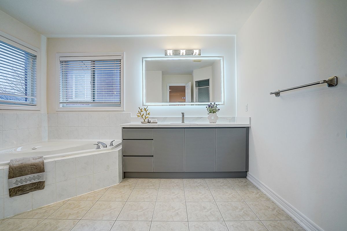 Stunning, beautifully updated 4-bedroom family home in the highly sought-after bayview-northeast community of aurora. Over $150,000 invested in top-to-bottom renovations. Offering bright, well-designed living space with 9-ft ceilings on the main floor, engineered hardwood flooring throughout, new staircase with upgraded railings, pot lights, smooth ceilings, and fresh paint throughout. Modern kitchen with brand-new cabinetry and fully updated main-floor bathroom. Second floor features 4 generously sized bedrooms and 3 bathrooms with updated countertops and modern led lighted mirrors. Primary bedroom with 2 closets and an ensuite featuring a brand-new vanity cabinet. Two bedrooms share a well-designed semi-ensuite bathroom. Fully renovated basement with legal permits, vinyl flooring, and brand-new appliances. Washer and dryer rough-ins in furnace room. Main-floor laundry and double-car garage with direct access. Prime location within walking distance to restaurants, t&t supermarket, parks, fitness facilities, and top-ranked schools including rick hansen public school and dr. G. W. Williams secondary school. Move-in ready!