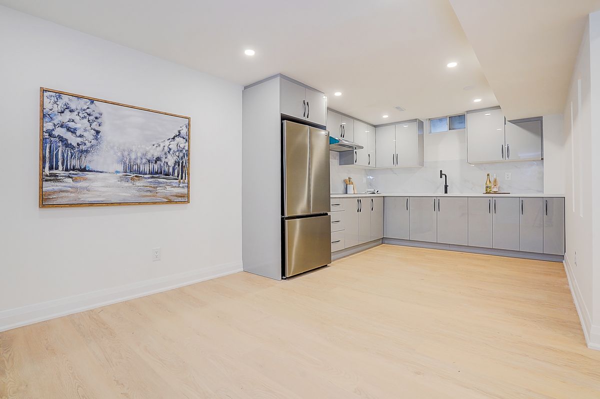• Modern kitchen with new cabinetry and updated main-floor bathroom.