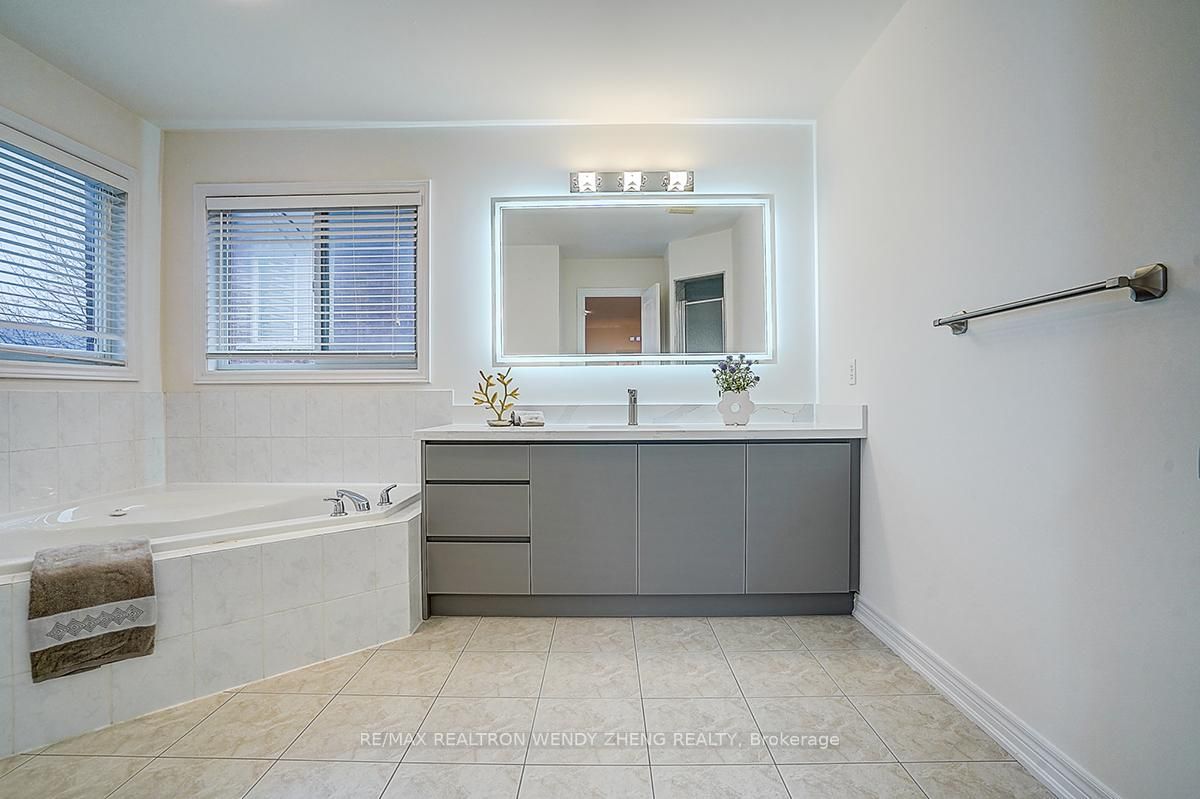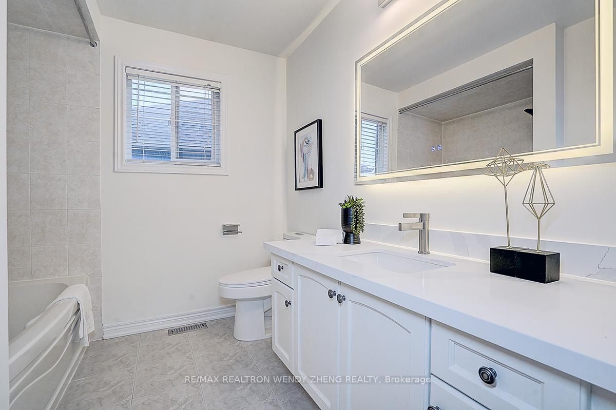 Stunning, beautifully updated 4-bedroom family home in the highly sought-after bayview-northeast community of aurora. Over $150,000 invested in top-to-bottom renovations. Offering bright, well-designed living space with 9-ft ceilings on the main floor, engineered hardwood flooring throughout, new staircase with upgraded railings, pot lights, smooth ceilings, and fresh paint throughout. Modern kitchen with brand-new cabinetry and fully updated main-floor bathroom. Second floor features 4 generously sized bedrooms and 3 bathrooms with updated countertops and modern led lighted mirrors. Primary bedroom with 2 closets and an ensuite featuring a brand-new vanity cabinet. Two bedrooms share a well-designed semi-ensuite bathroom. Fully renovated basement with legal permits, vinyl flooring, and brand-new appliances. Washer and dryer rough-ins in furnace room. Main-floor laundry and double-car garage with direct access. Prime location within walking distance to restaurants, t&t supermarket, parks, fitness facilities, and top-ranked schools including rick hansen public school and dr. G. W. Williams secondary school. Move-in ready!