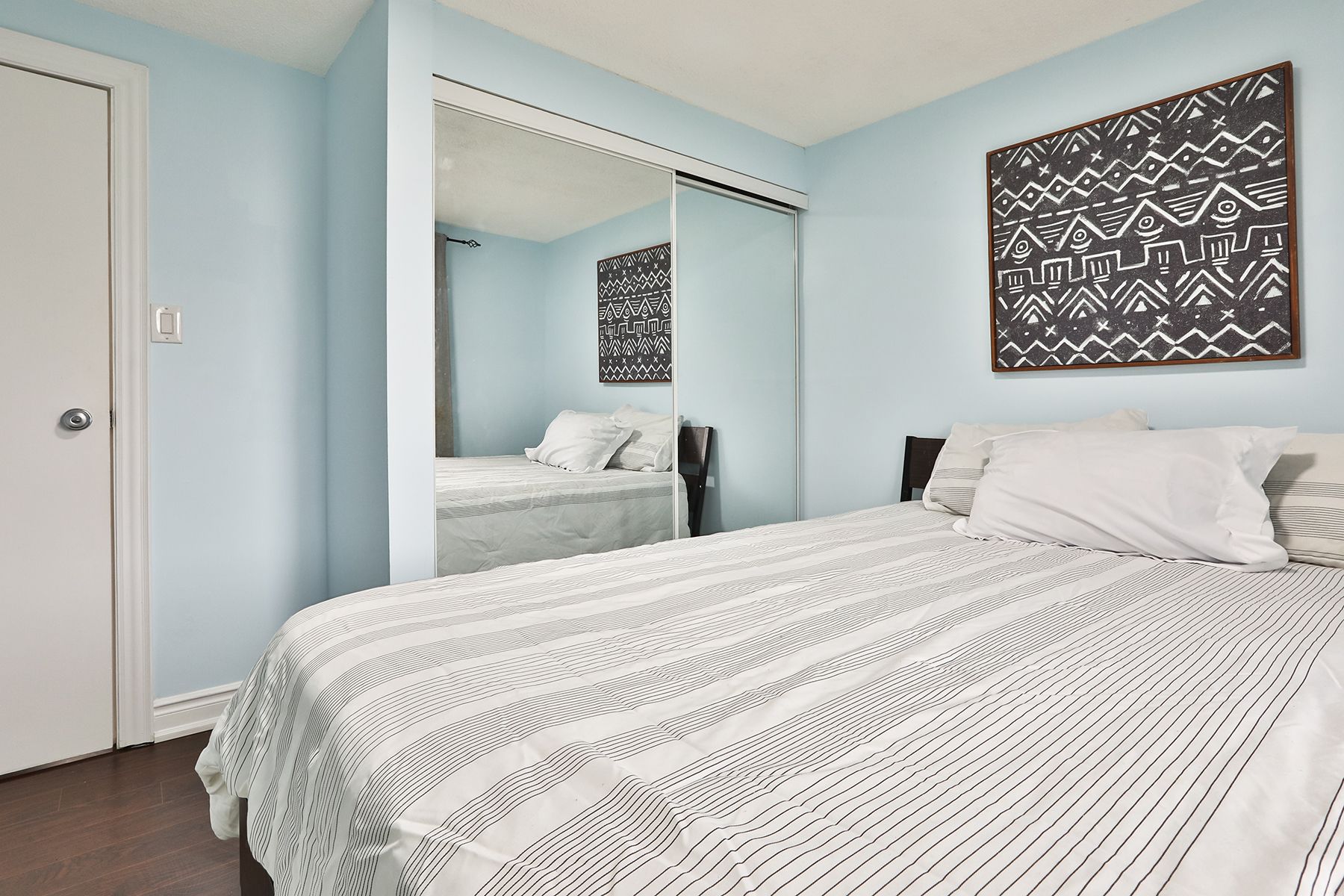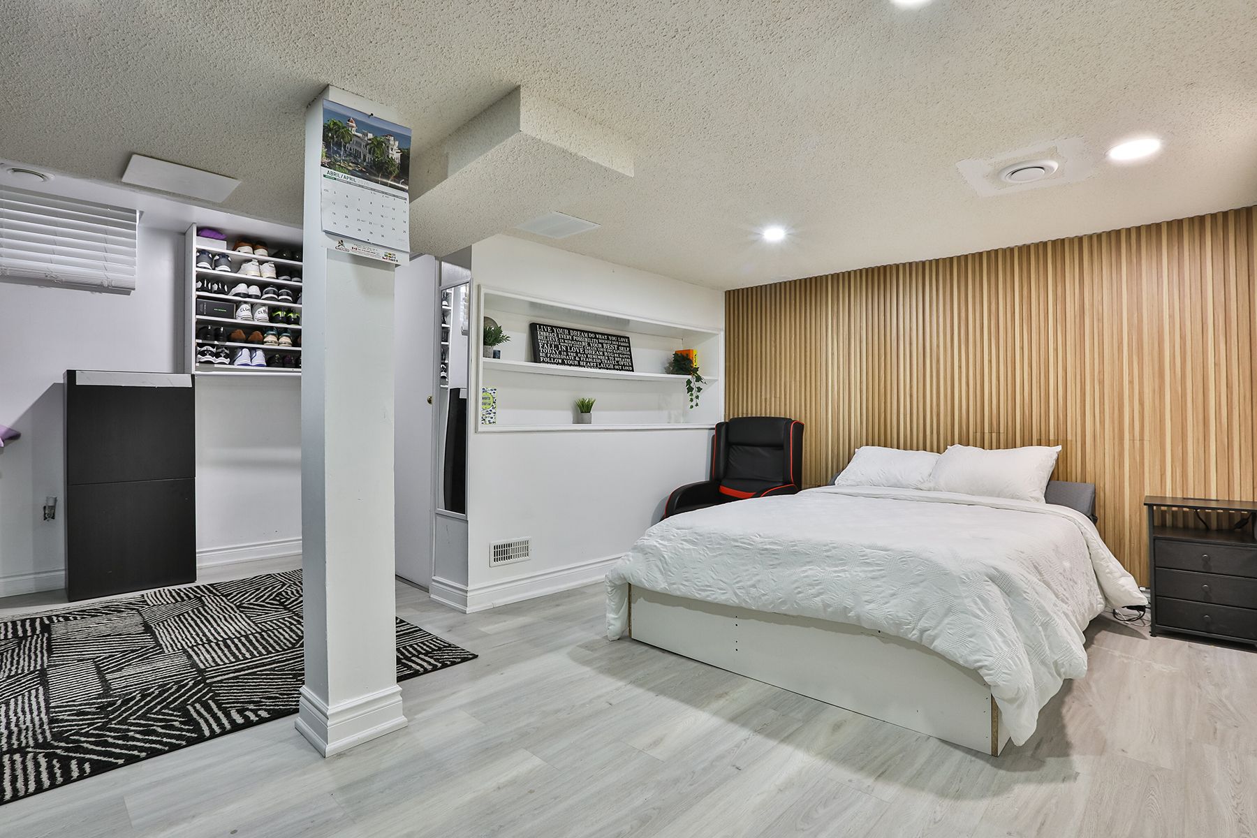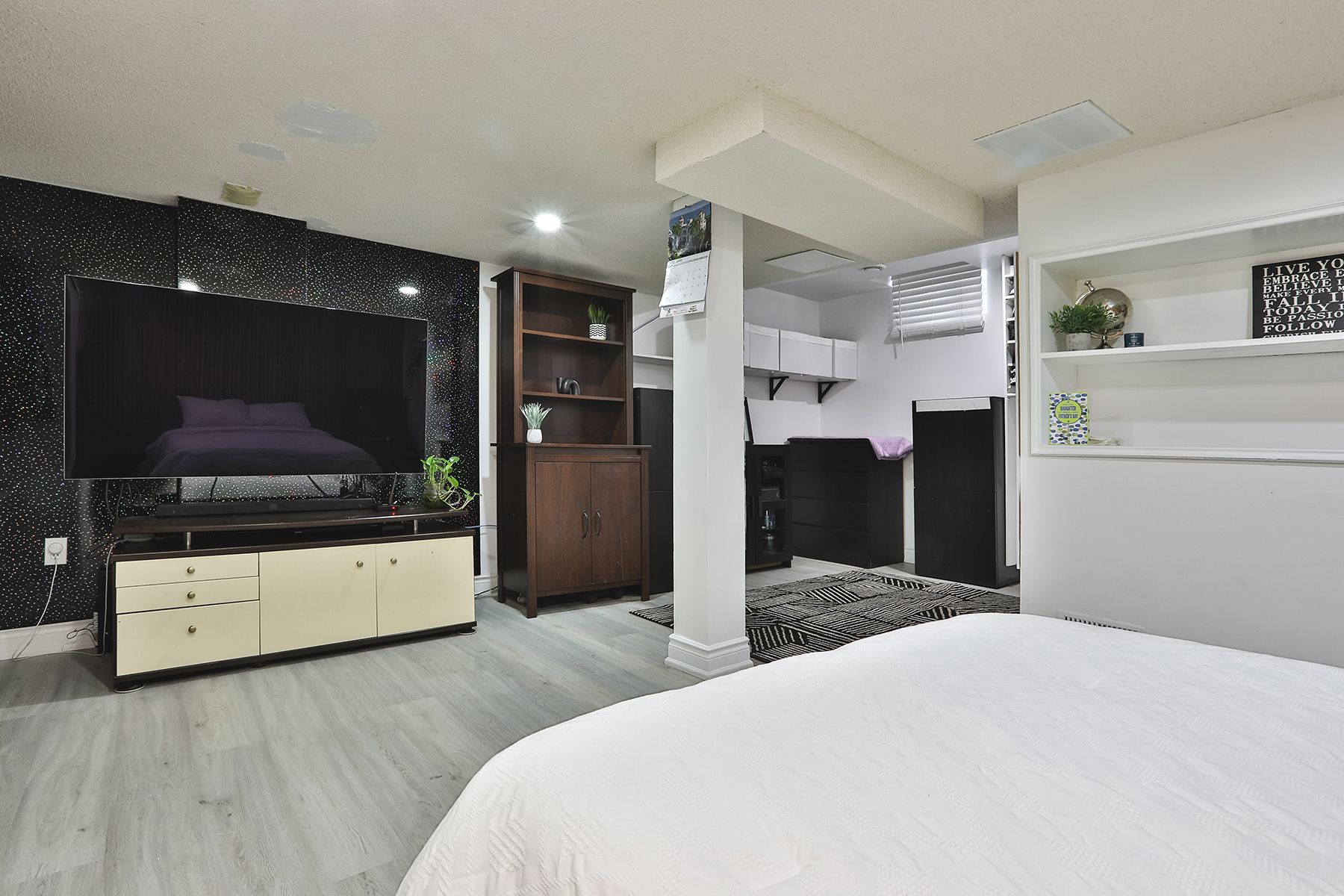 • Lower level features a private bedroom and dedicated work nook.