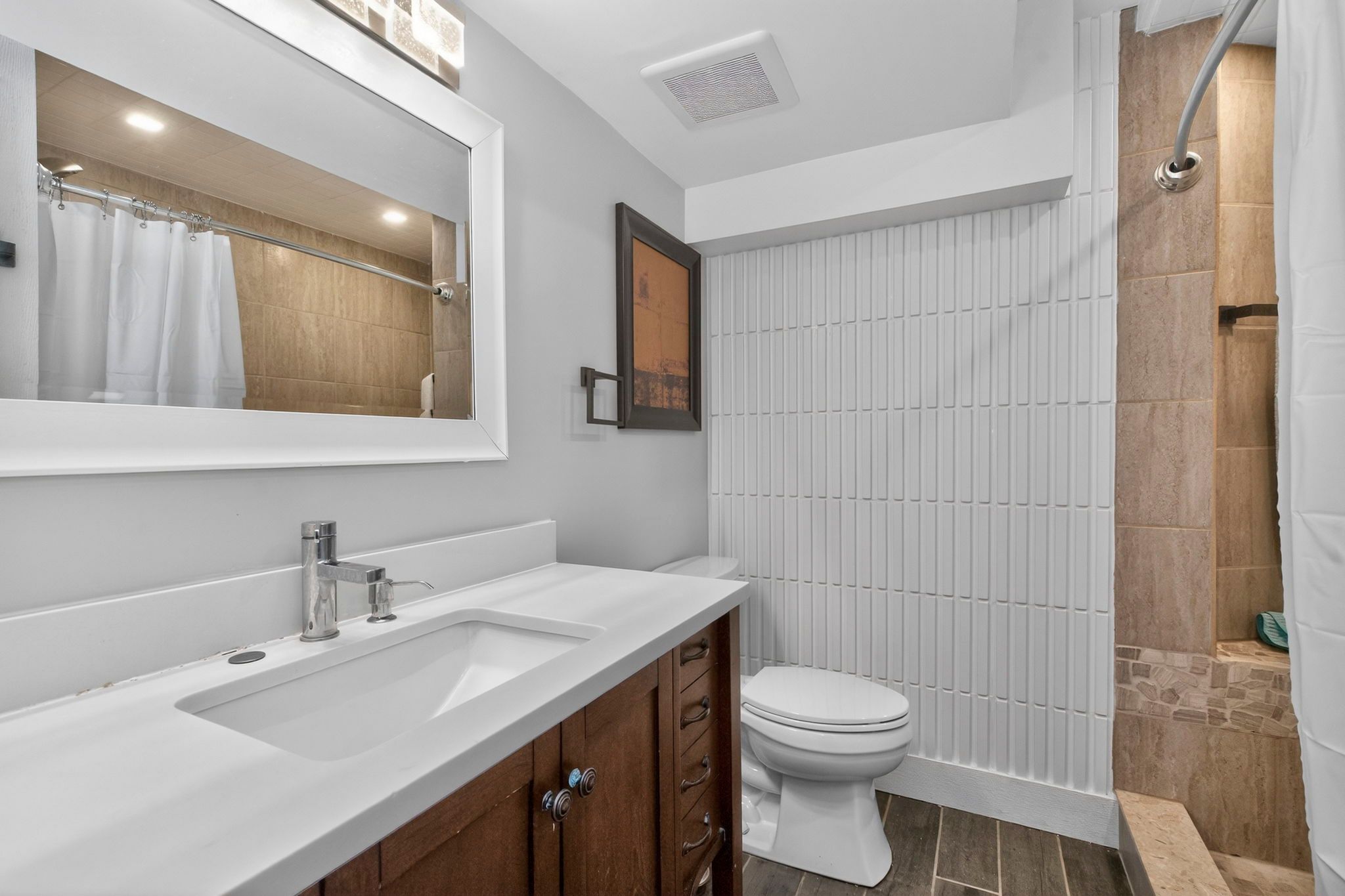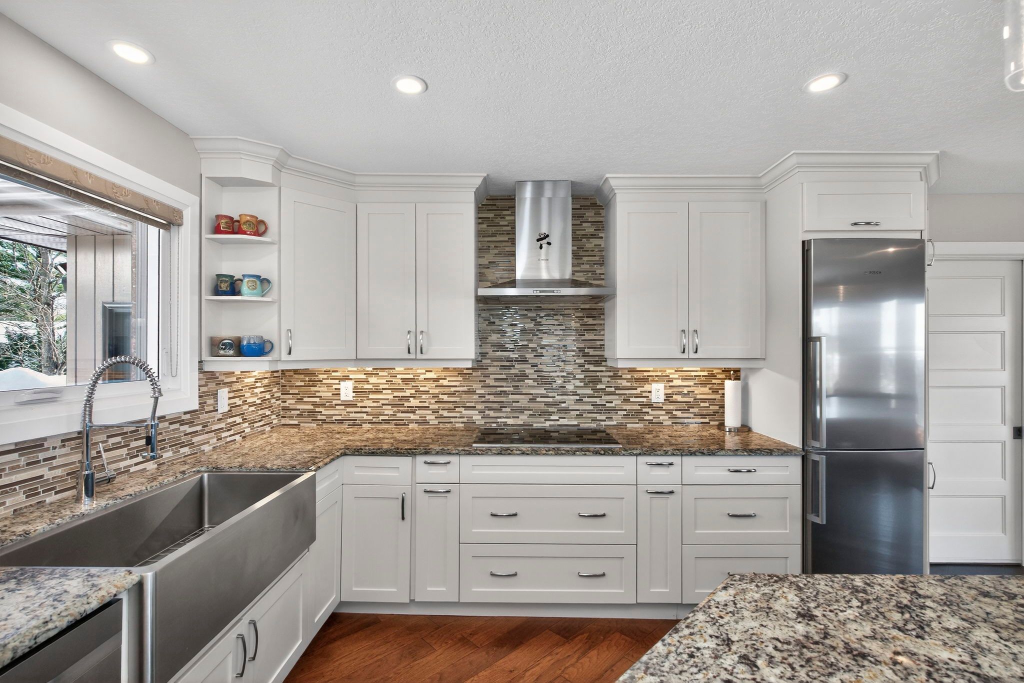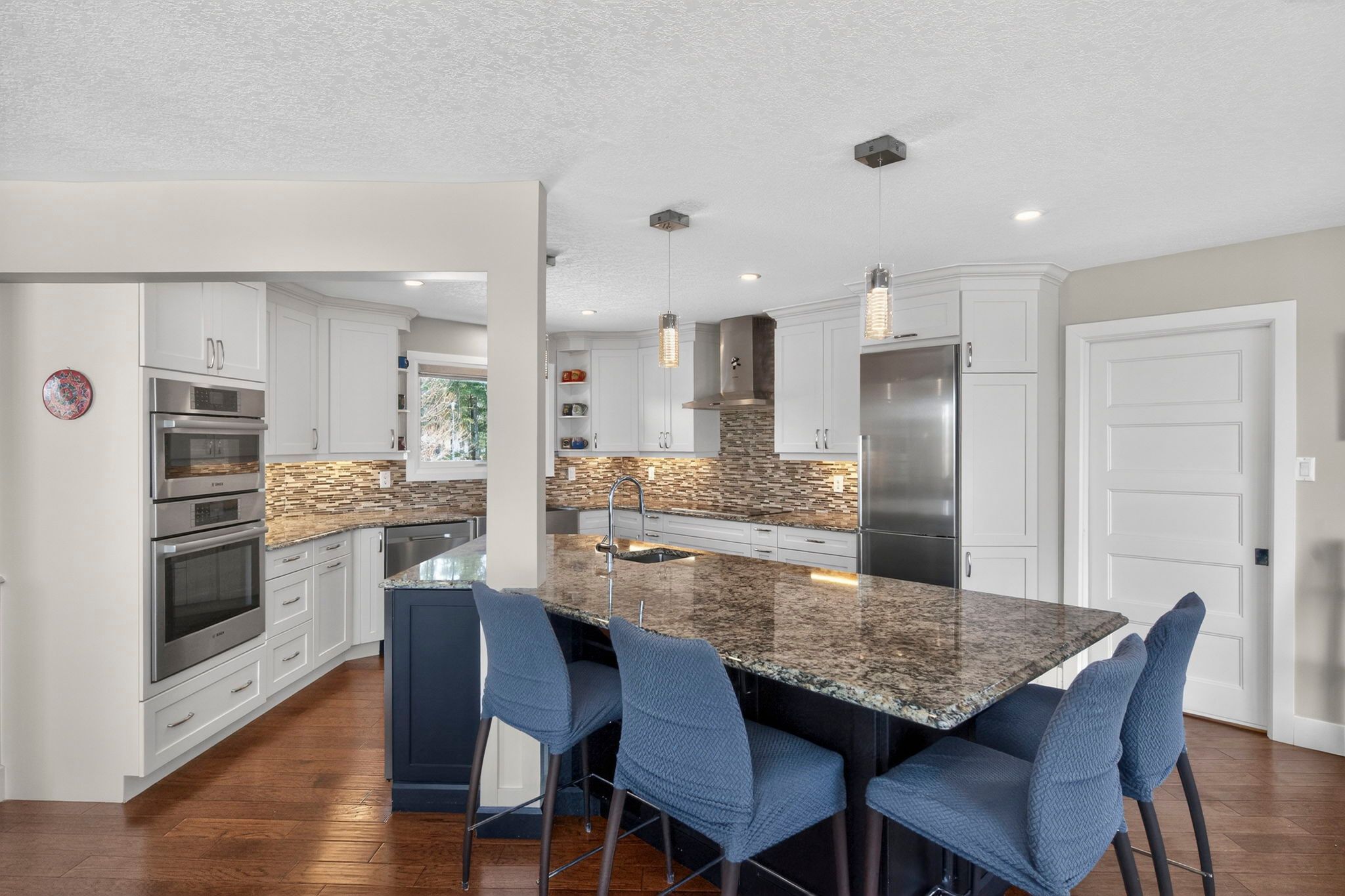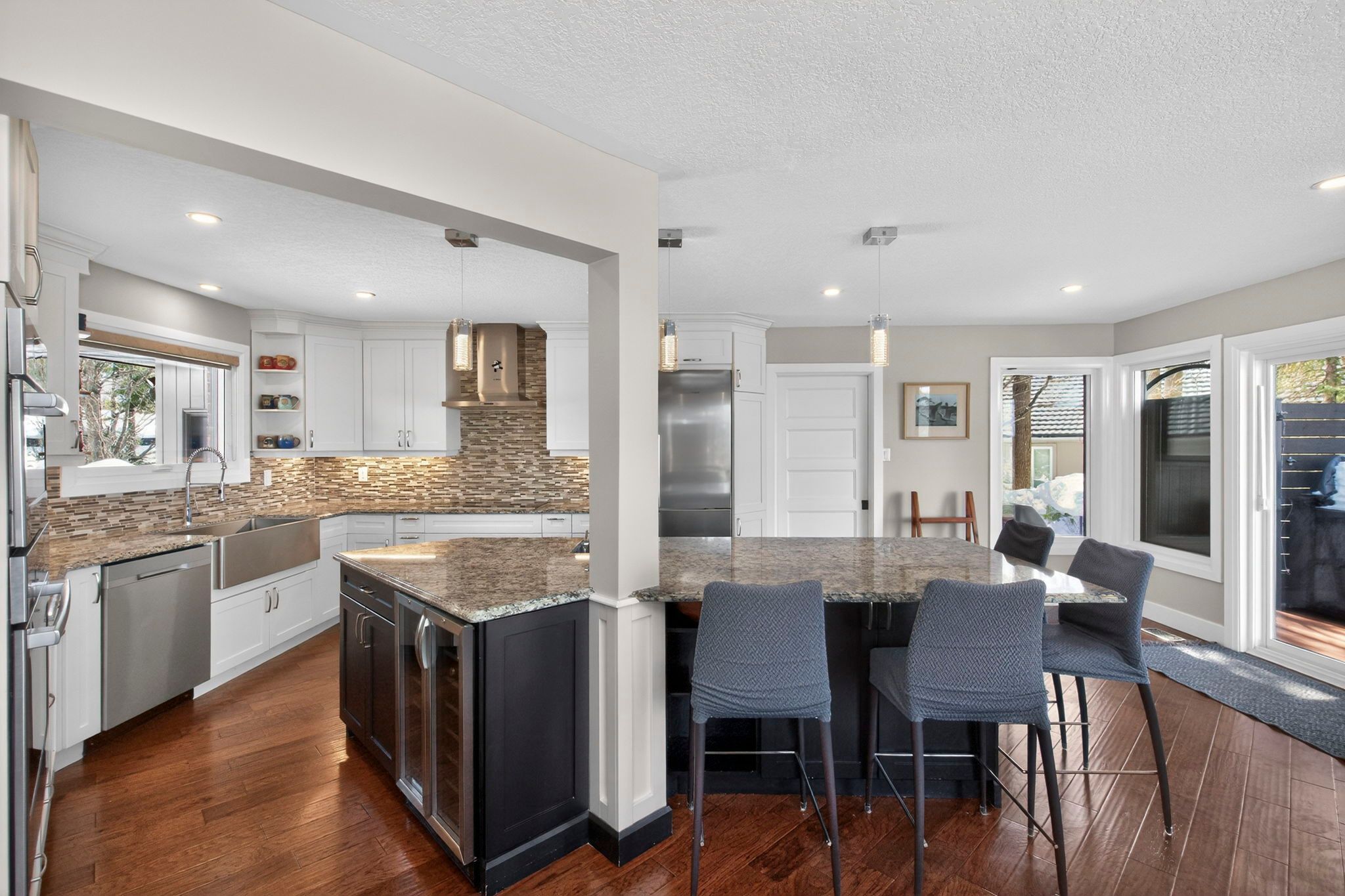 • Updated kitchen with granite countertops and large island for gatherings.