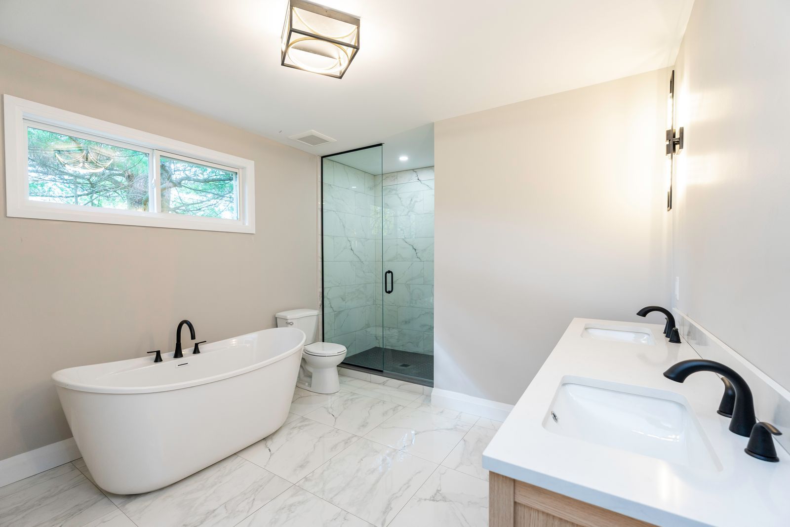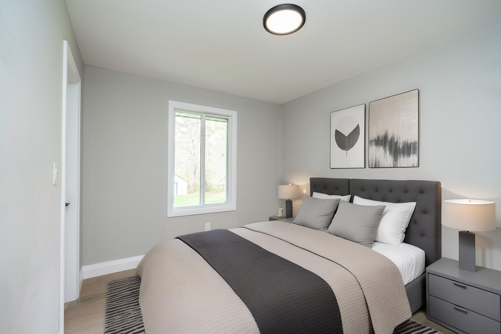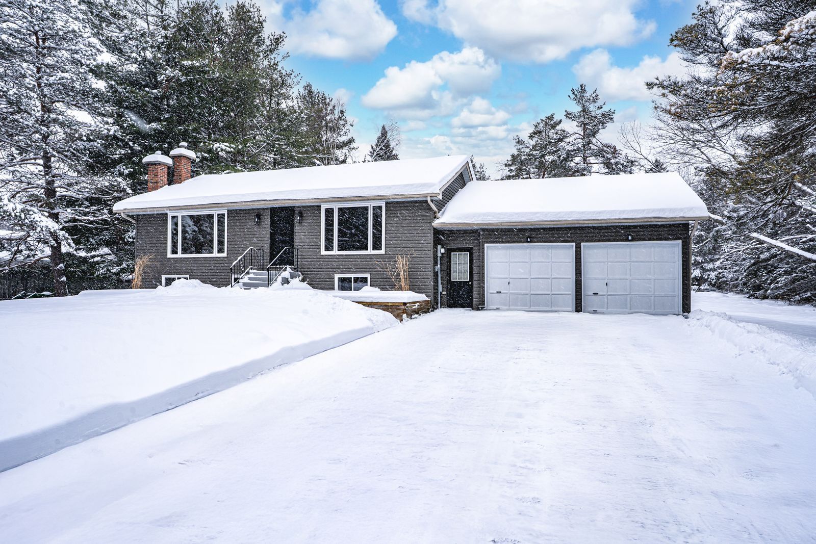 Modern elegance meets natural beauty in this fully renovated midhurst haven featuring a designer kitchen, in-law suite potential, & expansive outdoor living! Set on a corner lot spanning over half an acre in the peaceful and sought-after community of midhurst, this beautifully renovated home offers modern comfort surrounded by nature's serenity, just minutes from city conveniences. Embrace an active, outdoor lifestyle with crystalwood park just down the road, along with easy access to snow valley, horseshoe valley, vetta nordic spa, copeland forest, simcoe county forest trails, and several nearby golf courses. The home's charming curb appeal continues into an expansive backyard featuring a stone patio, lush lawn, and a tranquil tree-lined backdrop that creates an idyllic outdoor retreat. A drywalled double-car garage and spacious driveway provide ample parking for family and guests alike. The open-concept layout seamlessly connects the living, dining, and kitchen areas, highlighted by an oversized window framing peaceful views of the yard and a beautifully designed kitchen with quartz counters, sleek modern appliances, and a bright, airy atmosphere ideal for gatherings. The main level hosts two generous bedrooms, including a sunlit primary retreat with dual closets, along with a luxurious 5-piece bathroom complete with a walk-in glass shower, freestanding soaker tub, and double quartz vanity, plus a stylish powder room for guests. The fully finished basement adds impressive versatility with a large rec room, additional bedroom, 3-piece bathroom, and laundry area with newer appliances, with a separate walkout entrance offering ideal potential for an in-law suite or guest quarters. Extensively renovated from top to bottom with updated windows, front door, vinyl siding, electrical, and contemporary hardwood and luxury vinyl flooring, this midhurst #hometostay combines timeless style with refined comfort, offering an exceptional lifestyle embraced by nature's beauty.