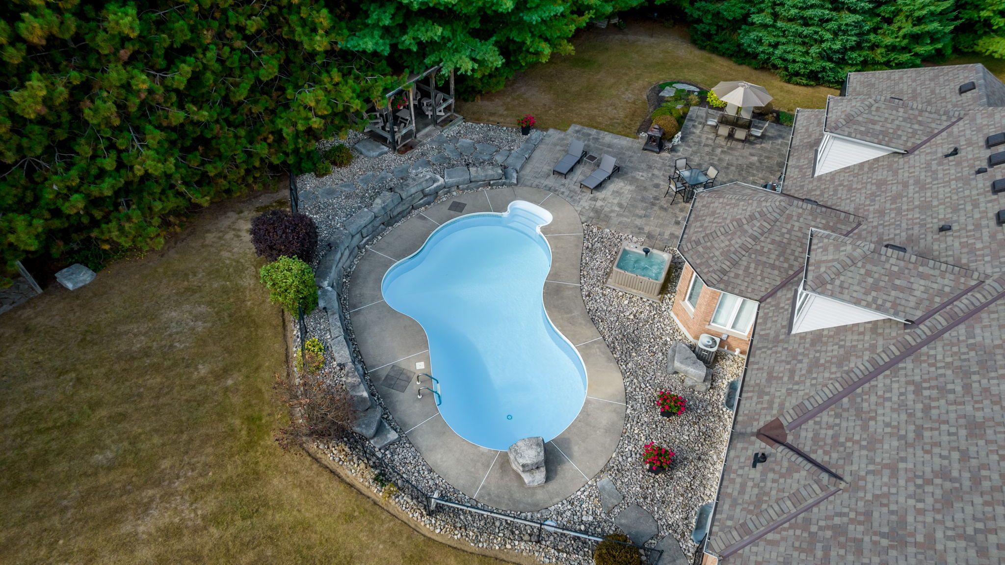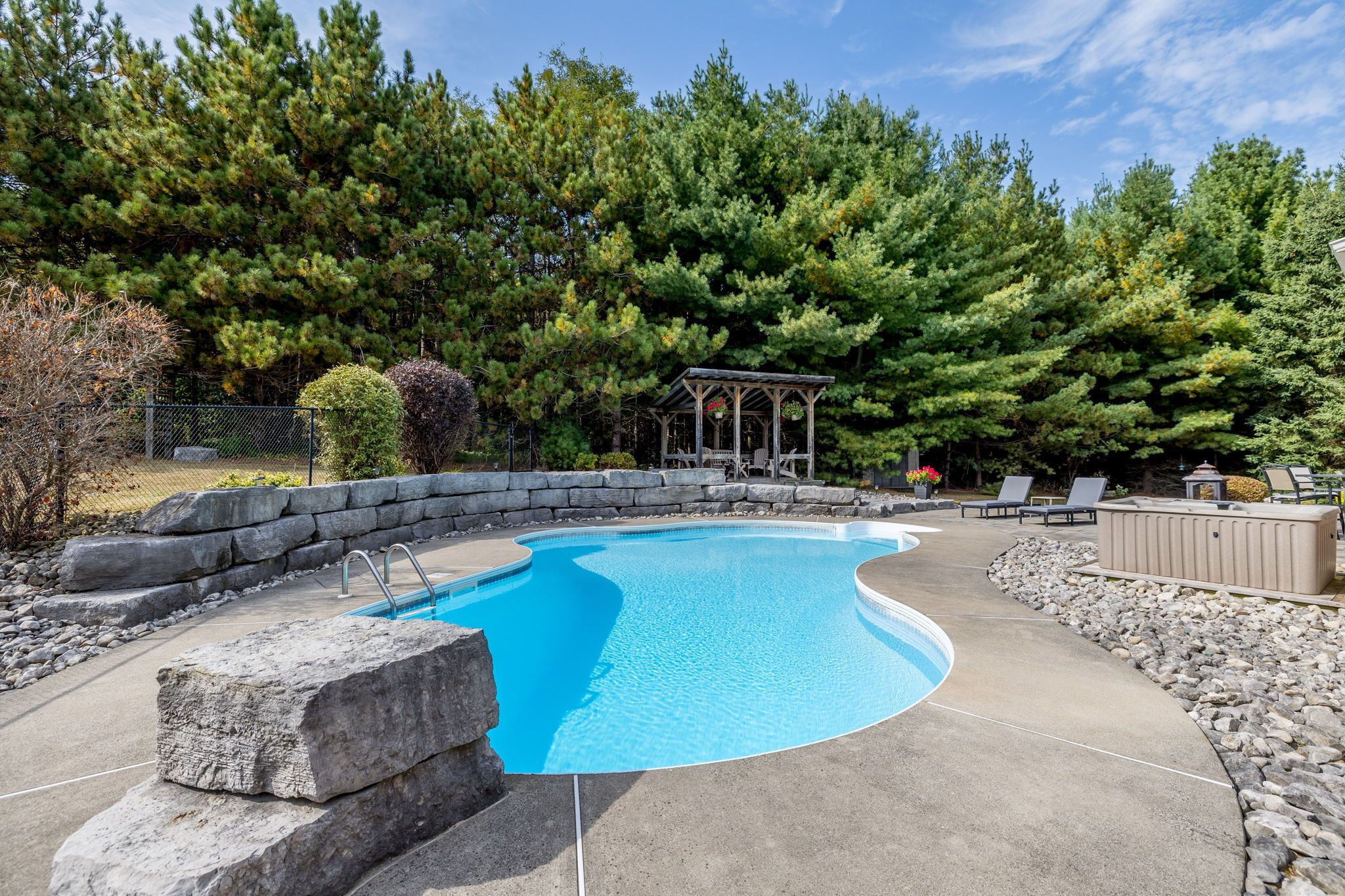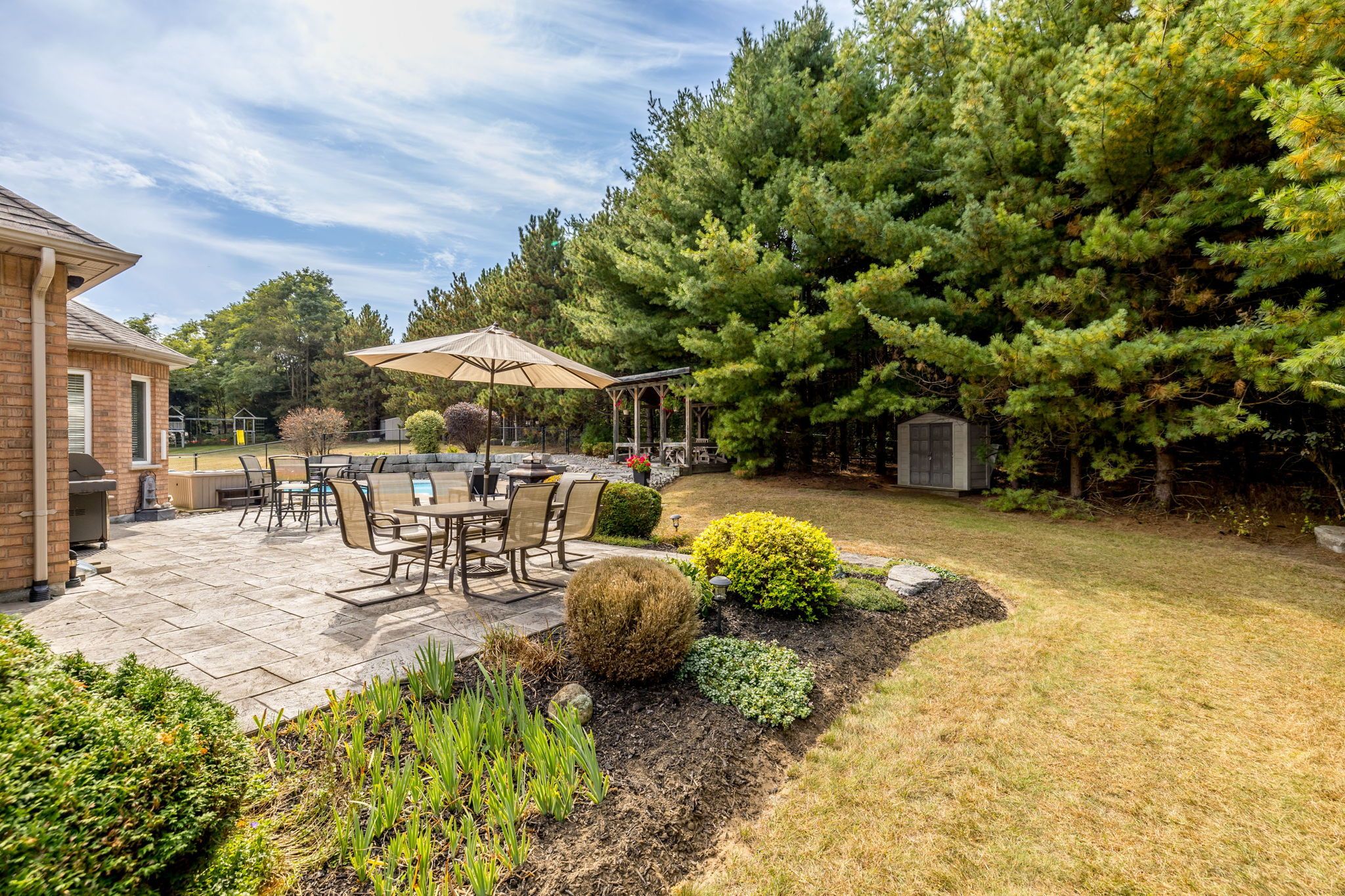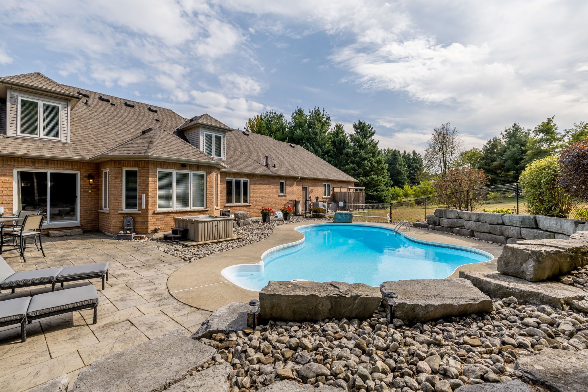 Welcome to this exceptional 2-storey custom built estate home, perfectly nestled on a private and mature treed 4. 83 acre lot. The kitchen is surrounded by windows, and fills the space with natural light. The family room, featuring a gas fireplace and a walkout to the patio, provides a cozy gathering space, while the formal dining room is ideal for hosting. An elegant office with french doors adds charm and functionality for remote work or study. This home offers 5 bedrooms, including a main-floor primary suite with a walk-in closet, private ensuite, and walkout access to the back patio. Upstairs, you'll find four spacious bedrooms, including one with a private 2-piece ensuite, ensuring comfort for family and guests. Outdoors, enjoy time with family or entertaining guests with a spectacular inground pool, 65 yard golf hole and a versatile outdoor rink, perfect for skating in the winter and other activities in the warmer months. The expansive backyard provides ample space, sheds for storage, surrounded by lush greenery, and a private trail to access the caledon trailway. Additional highlights include an oversized 3-car garage, mudroom/laundry room with garage access and walk-up from the basement. Partly finished basement/rec room/man cave/play zone, and large amounts of additional storage. Don't miss your opportunity to own this incredible home - schedule your showing today!